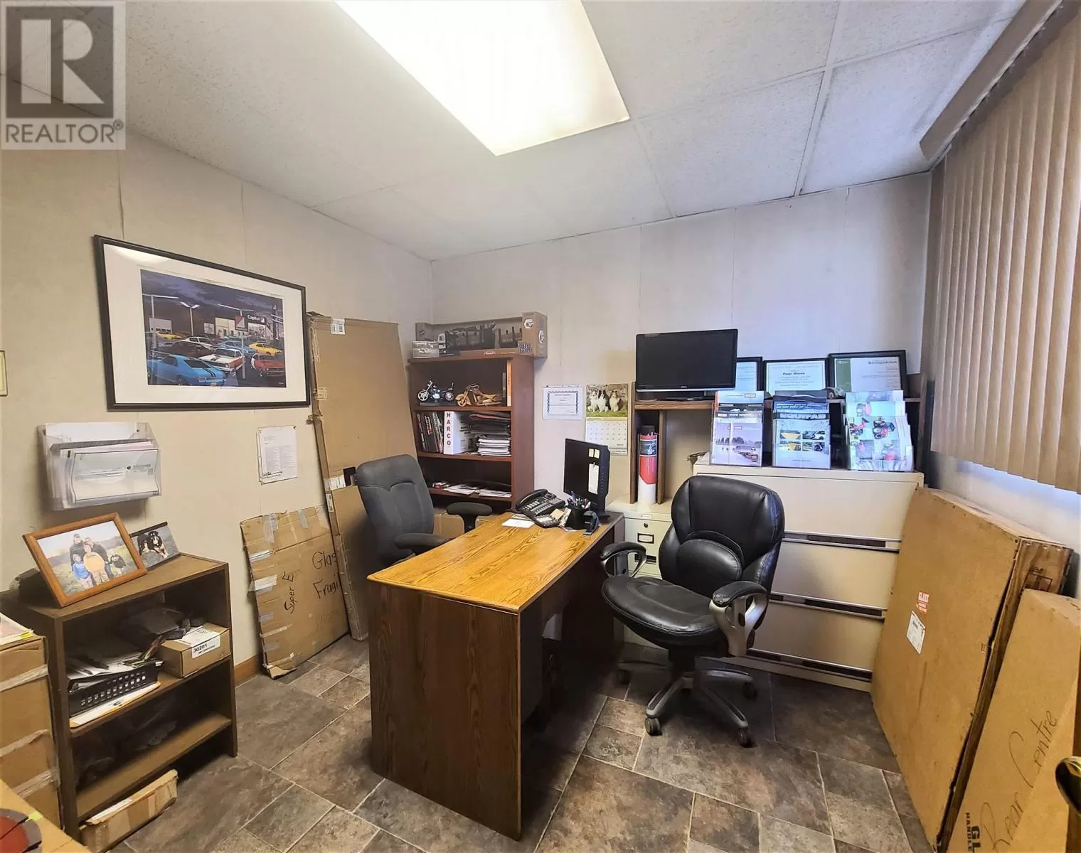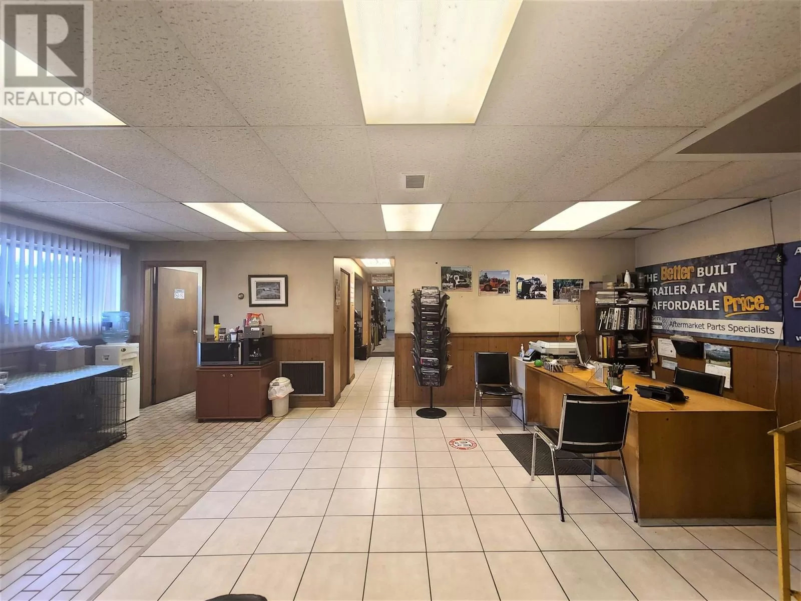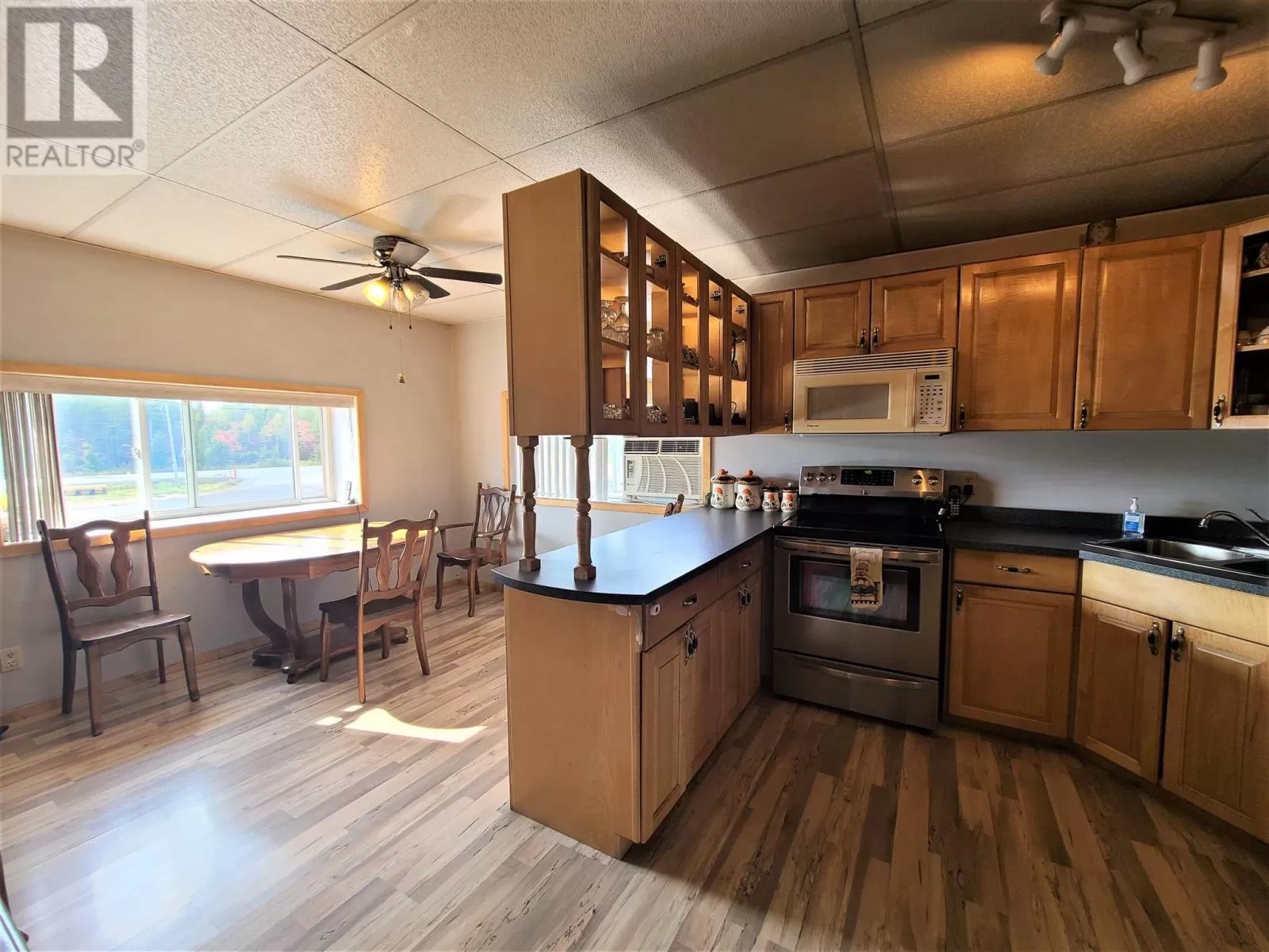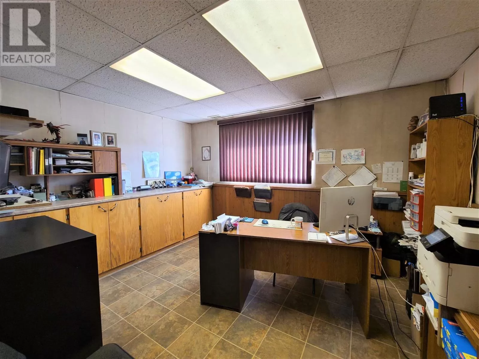Great business opportunity! Fantastic exposure along the Trans-Canada Highway in Iron Bridge, Ontario with over 580' of frontage. This 7,589 square foot, steel Butler building is ideal for investment or owner-occupied use. The main level features a large open vaulted workshop with two overhead doors, separate parts counter and storage area, 2 private offices and reception area. The second level features cozy 1+1 bedroom apartment, open mezzanine area and an elevator lift down to the main level. This building is situated on a level 16 acres with ample parking for large vehicles and trucks. With M2 zoning this building is ideal for automotive, mining equipment and shipping/receiving use. Call for more information today! (id:27476)