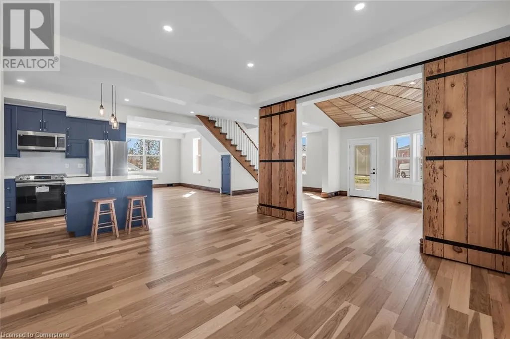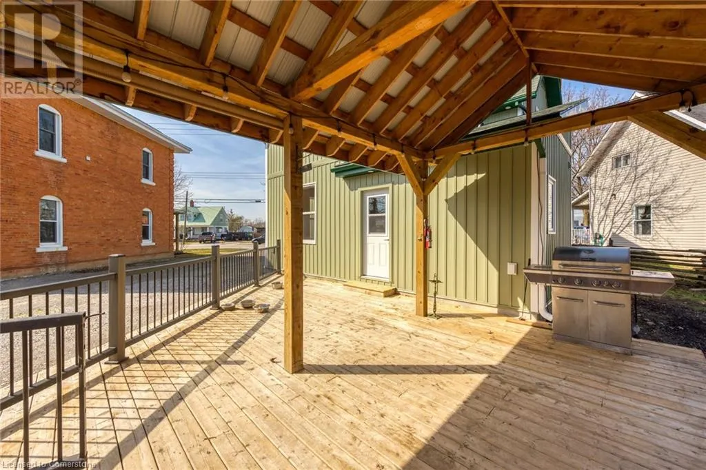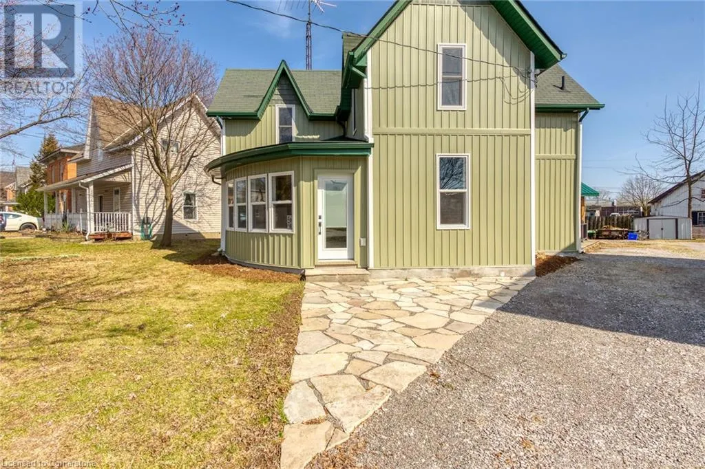 From Hamilton take Hwy 6 South through Jarvis, property is on the left side. Main Street aka Highway 6, close to the intersection of Highway 6 and Highway 3. A flagstone walkway welcomes you to this beautiful 1-1/2 storey century style home extensively renovated and updated with exquisite attention to detail. Features 1800 sqft of stylishly decorated above grade living space with 3 bedrooms, 2 bathrooms and upper-level laundry. The wow-factor begins as soon as you enter the front door. Expansive windows provide tons of natural light showcasing the open concept main floor layout featuring engineered Hickory hardwood flooring, living room with vaulted cedar ceiling, roomy family room and dining areas with custom sliding doors adjacent to the breathtaking kitchen with custom cabinetry, hand crafted tile backsplash, valence lighting, quartz countertops, island/breakfast bar and brand new hi-end stainless steel appliances. The mudroom with side door entry leads to a sprawling deck with a pavilion overlooking the rear yard. A gravel drive provides parking for 4 vehicles, or a boat/RV. Extras include new siding, safe & sound insulation, windows, exterior doors, 9 ft ceilings on main floor, luxury vinyl plank floors, solid int doors, trim & hardware, new bathroom fixtures and vanities, 100-amp hydro, electrical wiring, LED lighting, plumbing, hi-efficiency furnace, c/air-conditioning and main floor joists replaced. Located close to Lake Erie in the quaint town of Jarvis, about a 45 min commute south of Hamilton and Hwy 403. Quality craftsmanship throughout. A must-see property. (id:27476)