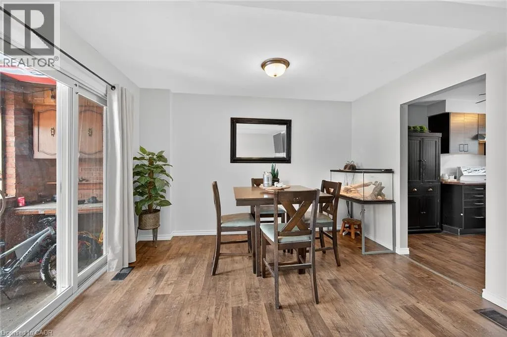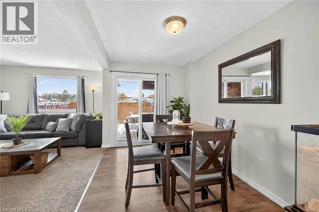 HIGHWAY 3 TO CRADDOCK BLVD TO PEEL ST E Tastefully updated & Attractively priced 3 bedroom, 2 bathroom Jarvis townhome backing onto open space. Great curb appeal with brick & board & batten exterior, welcoming front porch, & fenced back yard with patio. The flowing interior layout includes an open concept main floor highlighted by updated kitchen cabinetry & flooring, dining area leading to patio door walk out to backyard, large living, 2 pc bathroom, & inviting foyer. The upper level provides 3 spacious bedrooms & refreshed 4 pc bathroom. The finished basement provides additional living space with large rec room, laundry area, storage, & utility area. Conveniently located close to parks, schools, shopping, restaurants, downtown amenities, & close to Port Dover, Simcoe, & Brantford. Relaxing commute to Hamilton, 403, QEW. Ideal for the first time Buyer, young family, or those looking for maintenance free living. A instant equity builder! Enjoy all that Jarvis Offers! (id:27476)
