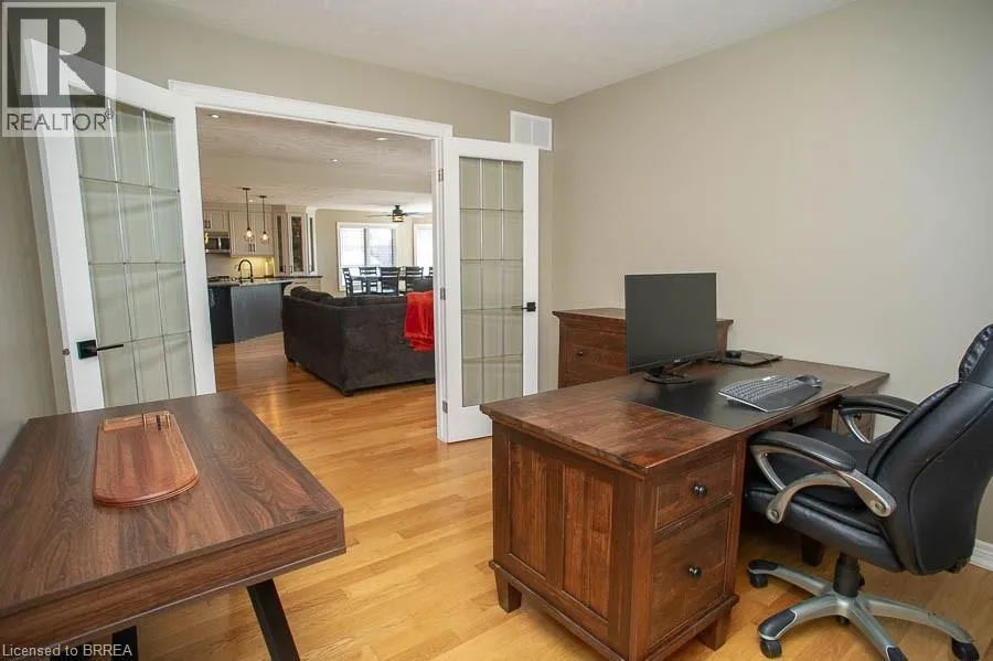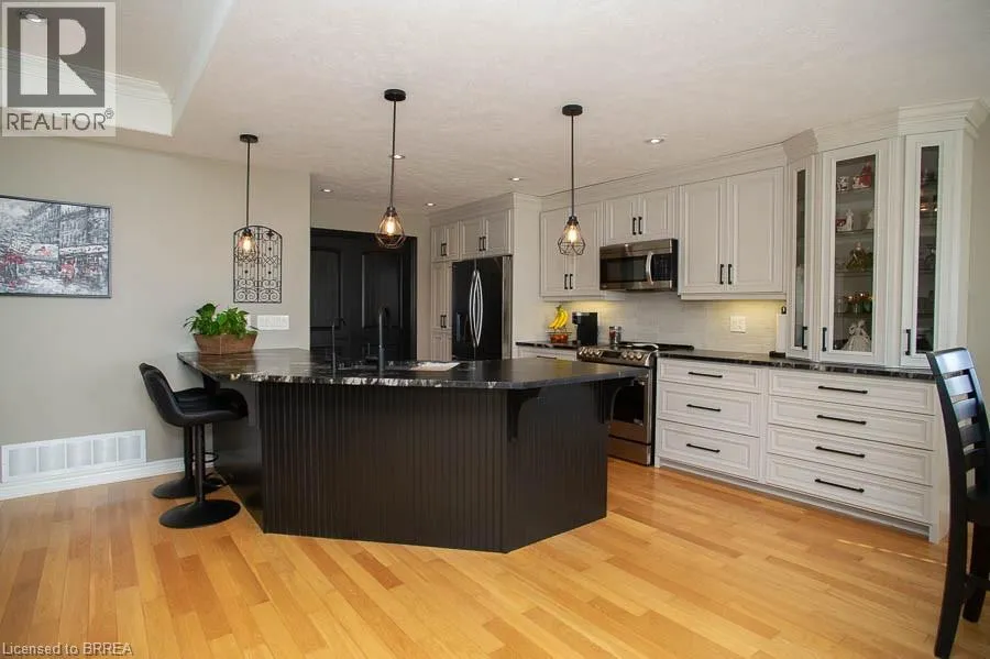Highway 3 (Talbot Street E) to North on Saunders Drive to LT on Lafeyette Street E to LT on Davey Court Welcome to this beautifully updated 3+1 bedroom, 3-bathroom bungalow, where timeless design meets modern luxury. Every detail of this custom built home has been carefully curated to create an inviting space that blends comfort, sophistication, and effortless living. Inside, discover heated floors in many areas, freshly painted interiors, and a spacious open-concept layout anchored by a stunning stone gas fireplace. The renovated kitchen features custom cabinetry, leathered granite countertops, and stainless-steel appliances, opening to a bright dining area with access to the composite deck and stone patio â a fully fenced and serene outdoor retreat surrounded by beautifully landscaping and easy to maintain grounds. The main level includes three bedrooms and two full baths, highlighted by a beautiful primary suite with walk-in closet and 4-piece ensuite. The finished lower level adds exceptional living space with a large recreation room, fourth bedroom, modern 4-piece bath, and heated floors throughout. Thoughtful upgrades provide peace of mind and comfort year-round â including a 12 kW natural gas generator, reverse osmosis water system, 4,000-gallon cistern, owned on-demand hot water, central vac, and an oversized double garage (22x24) with hot/cold water and sink. This is a home that truly stands apart â offering luxury, efficiency, and quality craftsmanship in a quiet, upscale court location just minutes from Hagersville, Simcoe, Port Dover, and Lake Erie. Executive living with small-town charm â welcome home to 9 Davey Court. (id:27476)