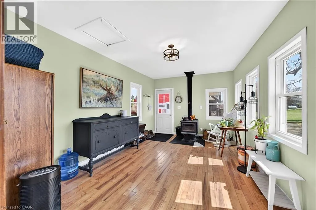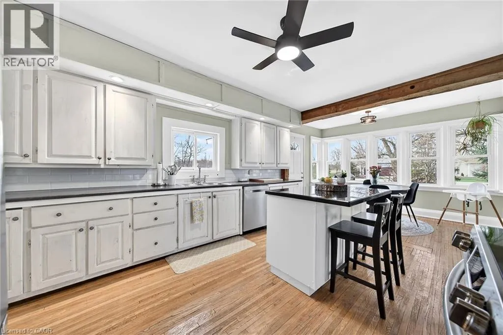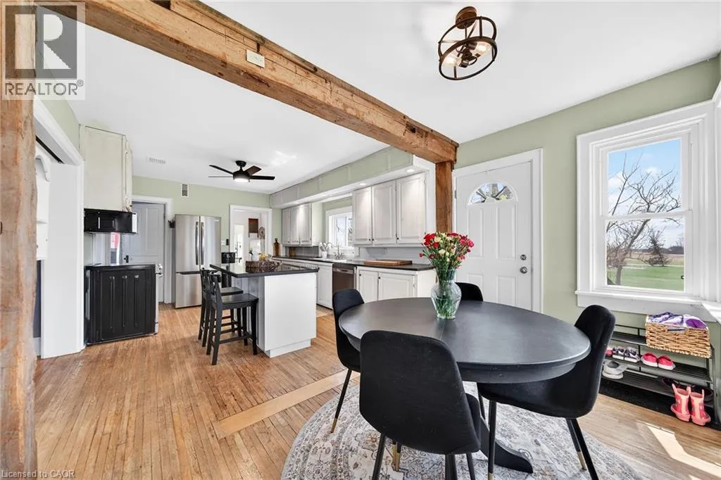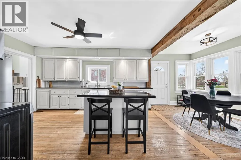HIGHWAY 3 TO CHEAPSIDE ROAD Beautifully presented, Exquisitely updated 3 bedroom home set on picturesque 90â x 214â lot on desired Cheapside Road with sought after 32â x 60â detached garage with 32â x 40â heated area with concrete floor, hydro, woodstove, & hoist providing a dream shop / space for the hobbyist, mechanic, or business owner. Great curb appeal set amongst mature treed lot, steel roof, partially fenced back yard, ample parking, & back covered porch area with hot tub. The flowing interior has been tastefully updated throughout highlighted by updated eat in kitchen with white cabinetry, subway tile backsplash, s/s appliances, & island with granite countertop, multiple rustic wood beamed accents throughout, large living room, back family room with woodstove, desired MF laundry, updated 4 pc bathroom, main floor bedroom, & 2 spacious upper level bedrooms. The partial basement houses the mechanicals and provides storage. Recent updates throughout include 2022 - high efficiency stage 2 furnace / heat pump combination for economical heating & A/C, modern decor, fixtures, & lighting, flooring, UV light & water filters, & more. Conveniently located minutes to Hagersville, Jarvis, Simcoe, & easy commute to Hamilton & 403. Ideal home for the first time Buyer, young family, or those looking for the dream garage! Perfect location, home, & setting! The complete Country package at a realistic price! (id:27476)