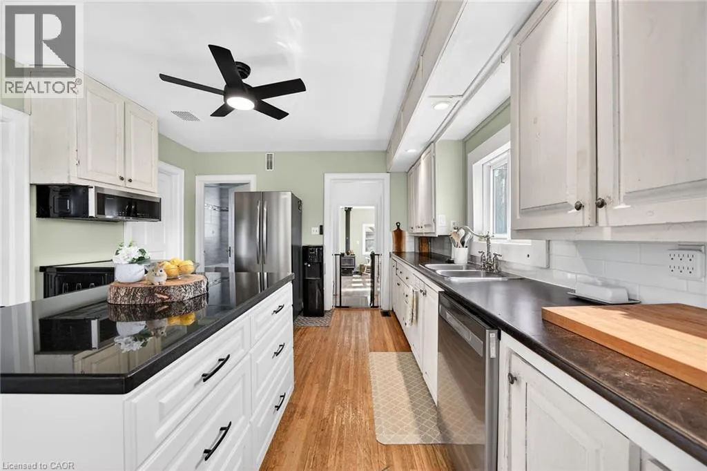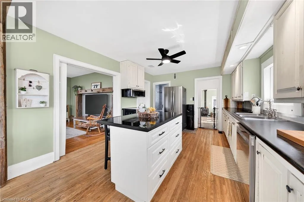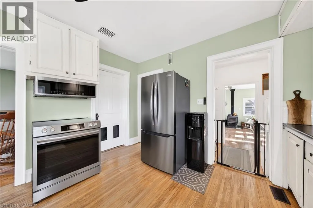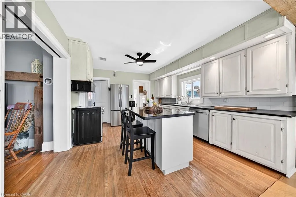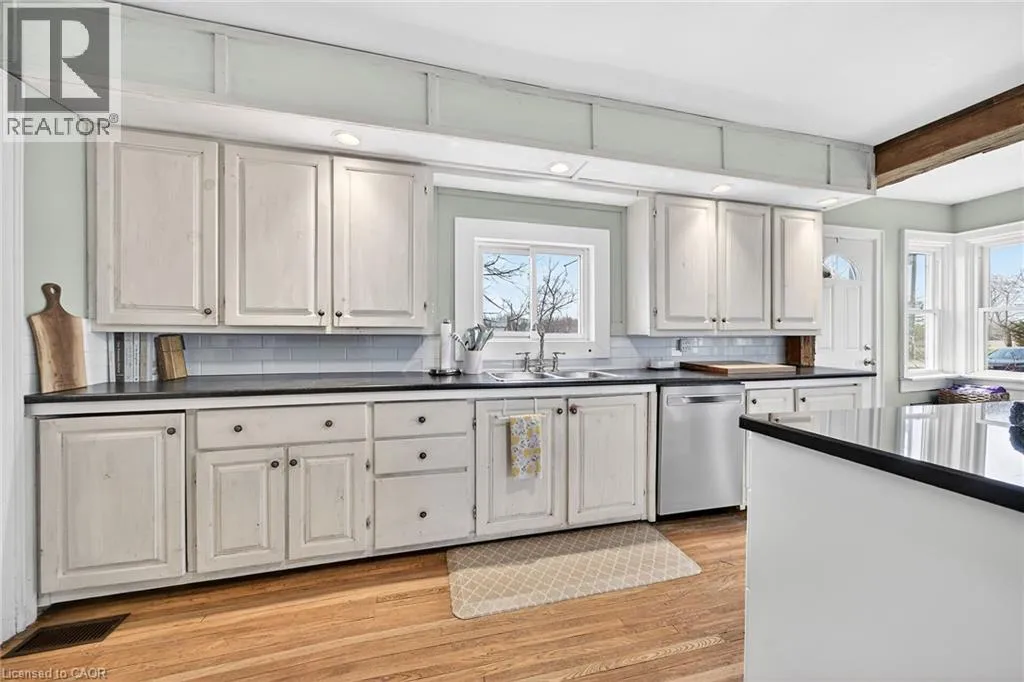 HIGHWAY 3 TO CHEAPSIDE ROAD Beautifully presented, Exquisitely updated 3 bedroom home set on picturesque 90â x 214â lot on desired Cheapside Road with sought after 32â x 60â detached garage with 32â x 40â heated area with concrete floor, hydro, woodstove, & hoist providing a dream shop / space for the hobbyist, mechanic, or business owner. Great curb appeal set amongst mature treed lot, steel roof, partially fenced back yard, ample parking, & back covered porch area with hot tub. The flowing interior has been tastefully updated throughout highlighted by updated eat in kitchen with white cabinetry, subway tile backsplash, s/s appliances, & island with granite countertop, multiple rustic wood beamed accents throughout, large living room, back family room with woodstove, desired MF laundry, updated 4 pc bathroom, main floor bedroom, & 2 spacious upper level bedrooms. The partial basement houses the mechanicals and provides storage. Recent updates throughout include 2022 - high efficiency stage 2 furnace / heat pump combination for economical heating & A/C, modern decor, fixtures, & lighting, flooring, UV light & water filters, & more. Conveniently located minutes to Hagersville, Jarvis, Simcoe, & easy commute to Hamilton & 403. Ideal home for the first time Buyer, young family, or those looking for the dream garage! Perfect location, home, & setting! The complete Country package at a realistic price! (id:27476)