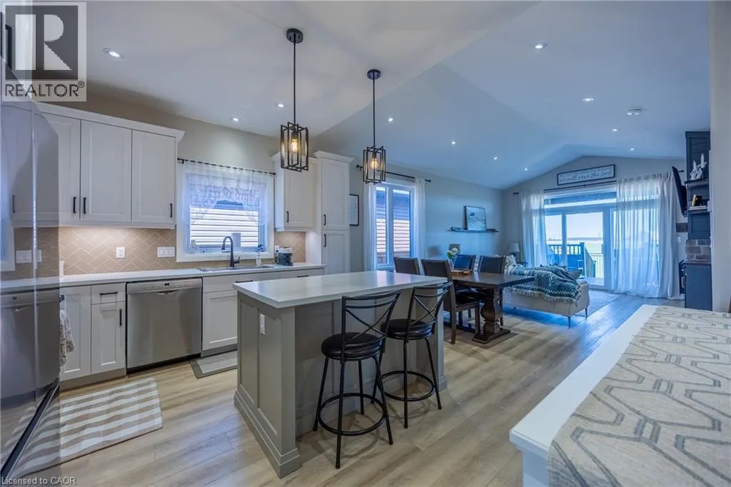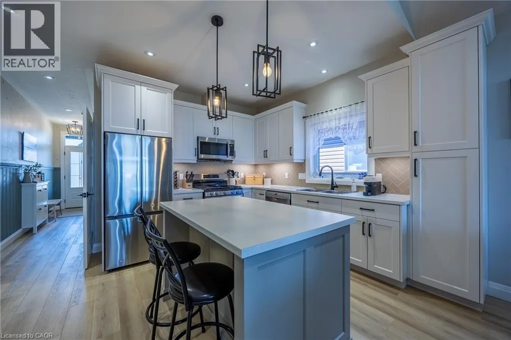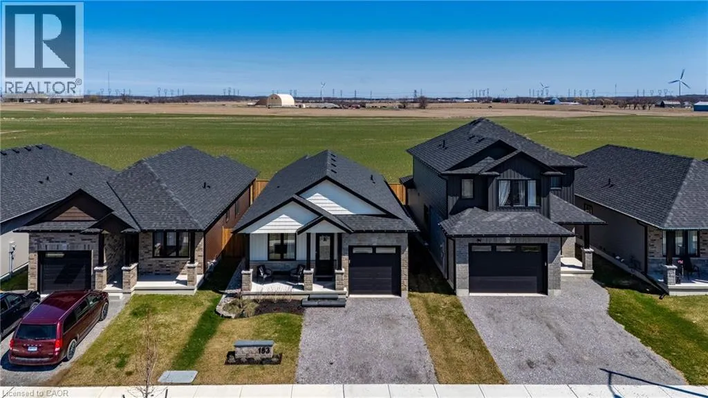 #3 Hwy turn left onto Saunders then right onto Lafayette. Custom-built home offers a perfect blend of modern luxury and small-town charm. Spanning 1,127 square feet, this thoughtfully designed home features an open-concept layout where the kitchen, dinette, and great room flow seamlessly together, creating an inviting space for daily living and easy entertaining. The primary bedroom serves as a true retreat, features a spacious walk-in closet and a private four-piece ensuite complete with a custom tiled shower. A second well-appointed bedroom and a full main bathroom ensure there is plenty of room for guests or a home office. The exterior of the home is just as impressive as the interior, featuring a private drive leading to a functional one-car garage. You can enjoy your morning coffee on the welcoming covered front porch or host evening gatherings on the large, covered composite deck in the backyard, providing beautiful outdoor spaces for relaxation regardless of the weather. Living in Jarvis means embracing a peaceful, community-focused lifestyle known for its friendly atmosphere. It is the perfect location for those who want quiet surroundings without sacrificing accessibility to modern amenities. You are just a short 15-minute drive from the lakeside charm and dining of Port Dover, and less than 20 minutes from the essential services and shopping in Simcoe and Hagersville. For those needing to reach larger urban centers, Hamilton and Brantford are both within a comfortable 40-to-45-minute drive, making 183 Lafayette St E the ideal home base for anyone seeking the perfect balance of rural relaxation and city connectivity. Check out the virtual tour and call today to book your showing. (id:27476)