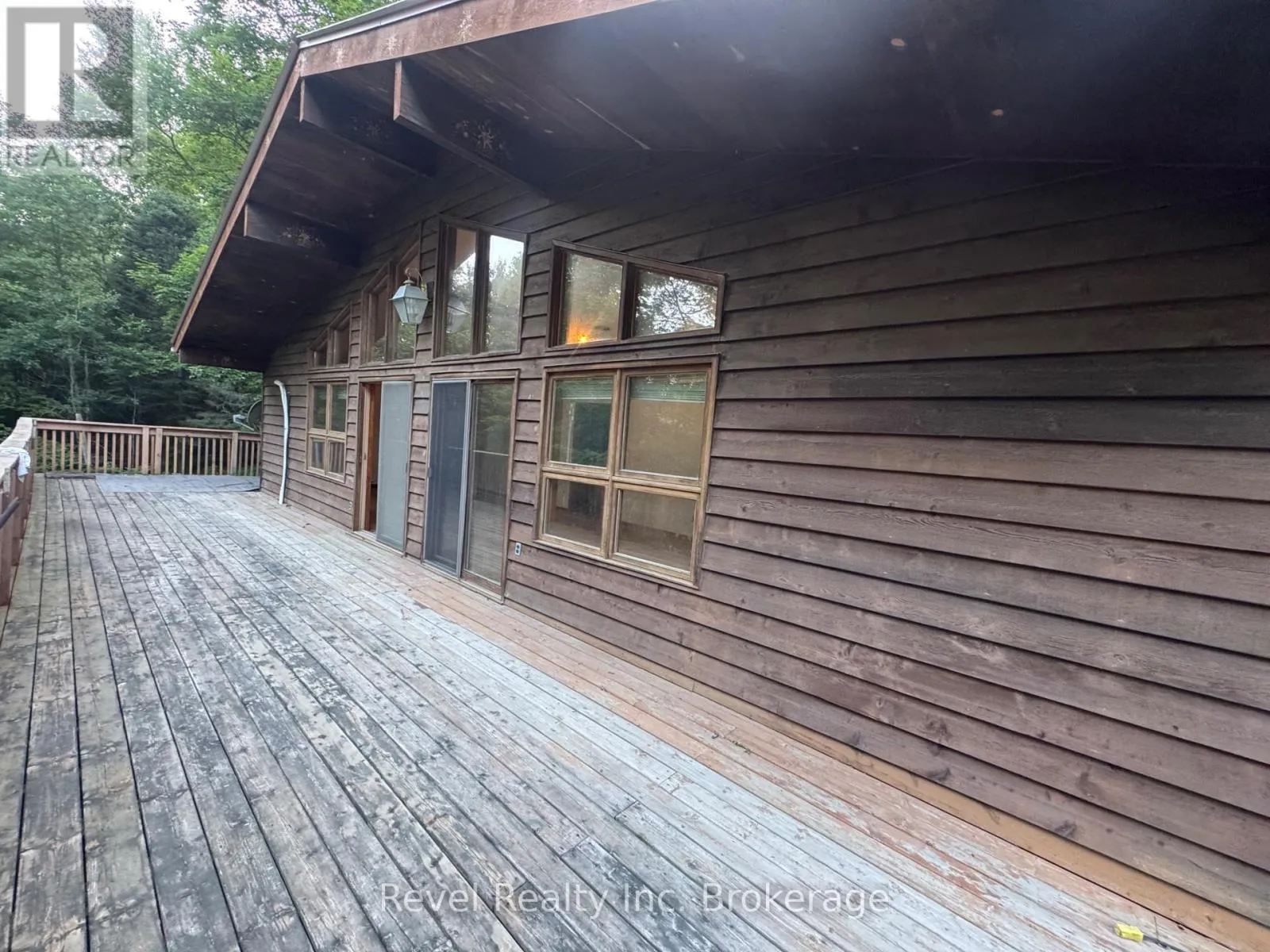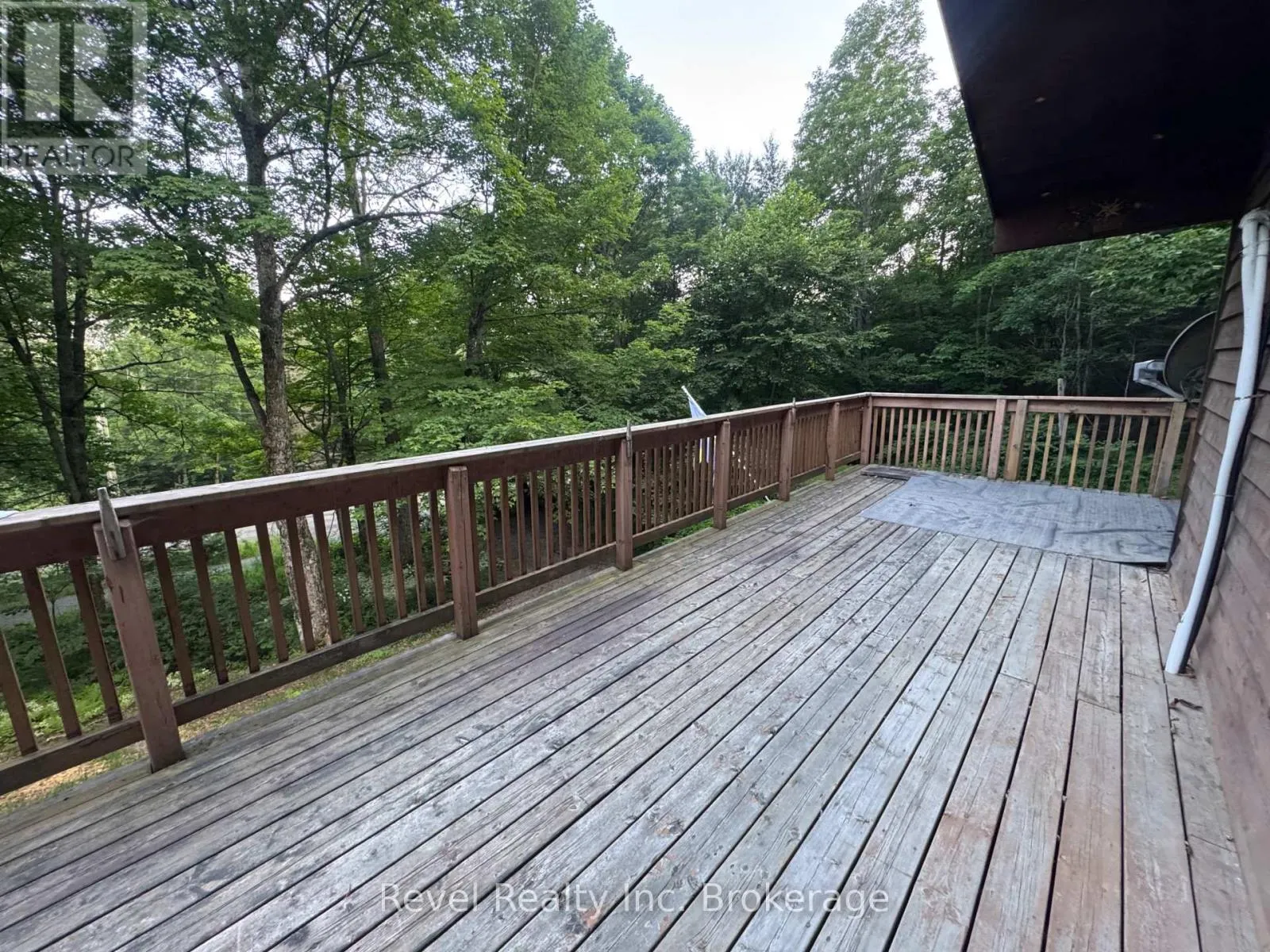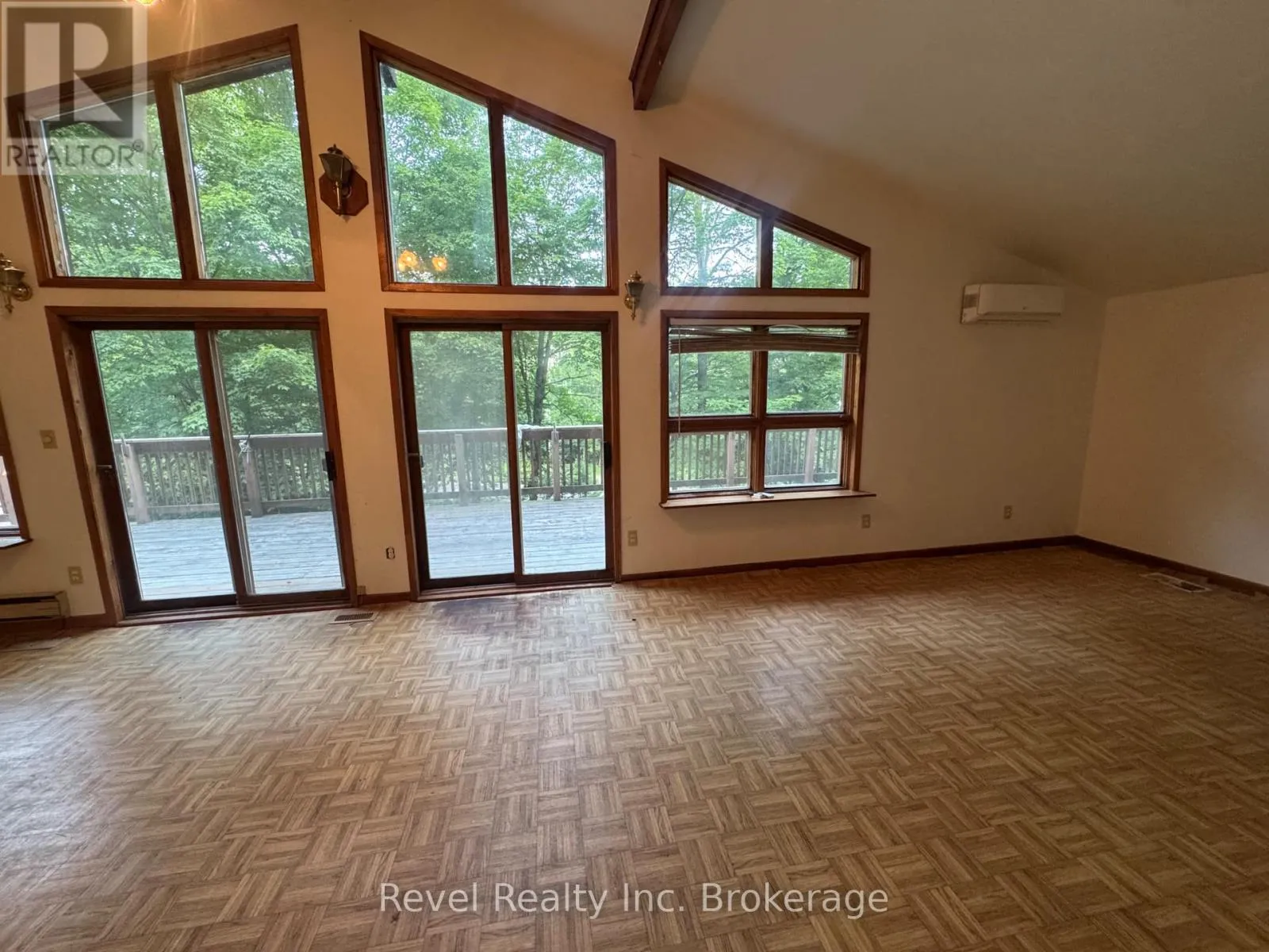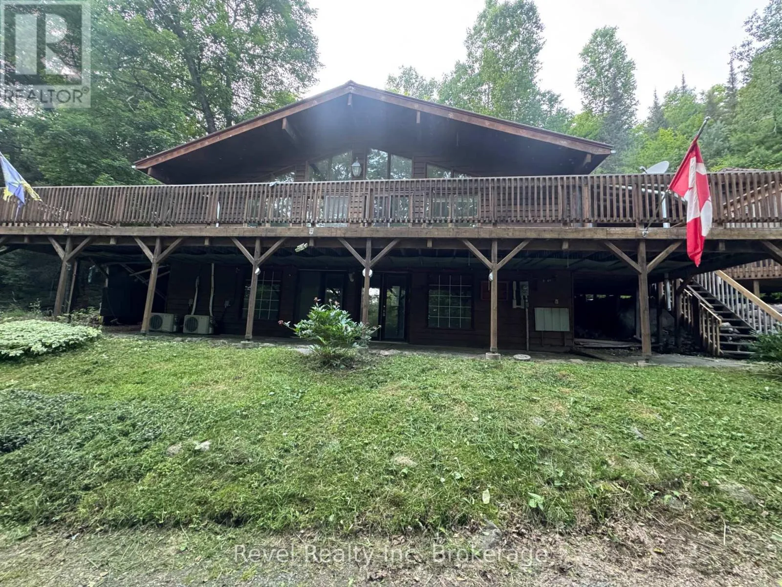 Cross Streets: Main St. ** Directions: From the village of Sundridge; Main Street east to Forest Lake Road to #1670. Nestled on 50 acres of picturesque mixed forest, this well-maintained chalet-style home offers a private hillside setting directly across from crown land and the tranquil waters of Joly Lake. Beautifully landscaped with perennial gardens and stone walkways, the property blends natural beauty with thoughtful design. Inside, the main level features maple hardwood and ceramic flooring, charming wood accents, and a gourmet-style kitchen complete with a center island, oak cabinetry, built-in appliances, and a ceramic backsplash. The open-concept layout is perfect for entertaining or relaxing by the air-tight wood stove. A convenient main floor laundry adds to the home's practicality. Upstairs, youll find a spacious living room with cathedral ceilings, a walkout to a wraparound balcony with gazebo, two bedrooms, and a four-piece bath featuring a Jacuzzi-style tub. Additional highlights include an oversized detached garage, central vacuum, drilled well, circular driveway, and hard-wired generator backup. Located just 10 minutes from the village of Sundridge, this property is ideal as a year-round residence or a recreational retreat. (id:27476)
