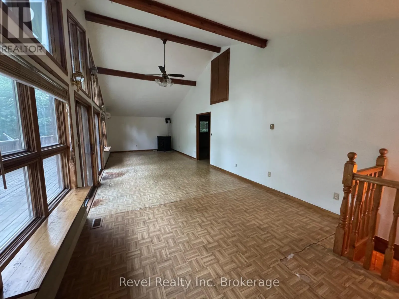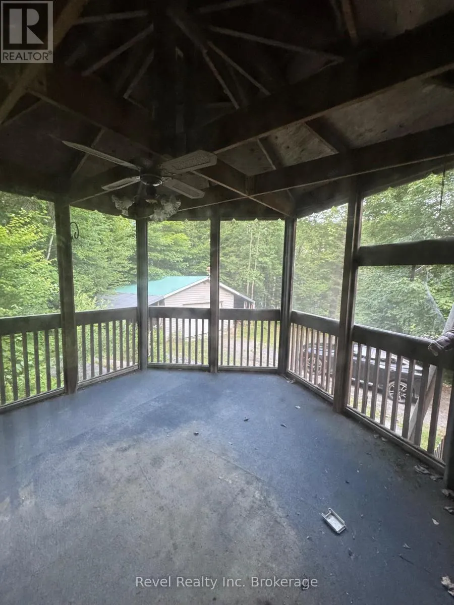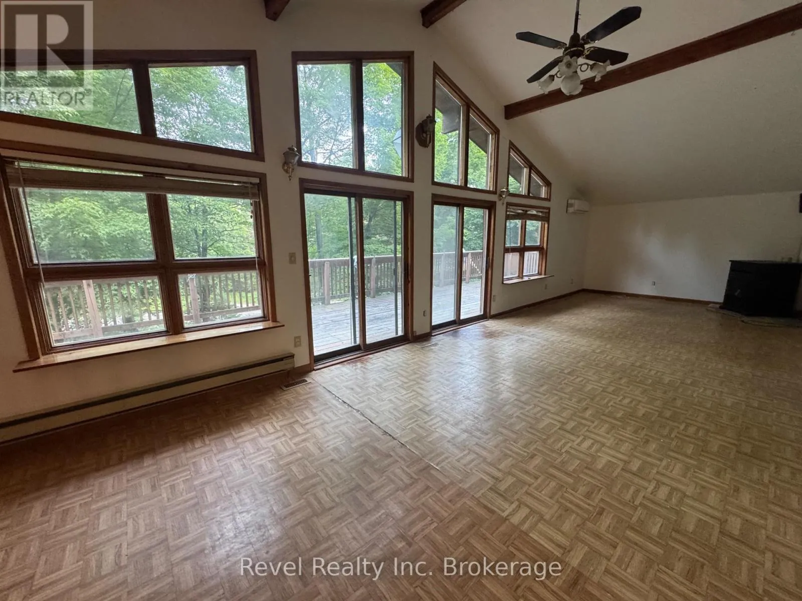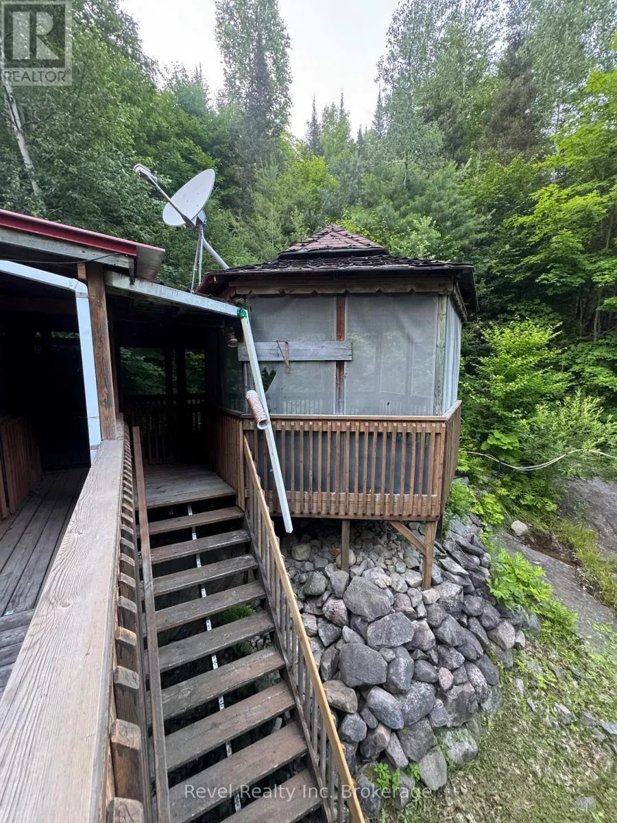 Cross Streets: Main St. ** Directions: From the village of Sundridge; Main Street east to Forest Lake Road to #1670. Nestled on 50 acres of picturesque mixed forest, this well-maintained chalet-style home offers a private hillside setting directly across from crown land and the tranquil waters of Joly Lake. Beautifully landscaped with perennial gardens and stone walkways, the property blends natural beauty with thoughtful design. Inside, the main level features maple hardwood and ceramic flooring, charming wood accents, and a gourmet-style kitchen complete with a center island, oak cabinetry, built-in appliances, and a ceramic backsplash. The open-concept layout is perfect for entertaining or relaxing by the air-tight wood stove. A convenient main floor laundry adds to the home's practicality. Upstairs, youll find a spacious living room with cathedral ceilings, a walkout to a wraparound balcony with gazebo, two bedrooms, and a four-piece bath featuring a Jacuzzi-style tub. Additional highlights include an oversized detached garage, central vacuum, drilled well, circular driveway, and hard-wired generator backup. Located just 10 minutes from the village of Sundridge, this property is ideal as a year-round residence or a recreational retreat. (id:27476)