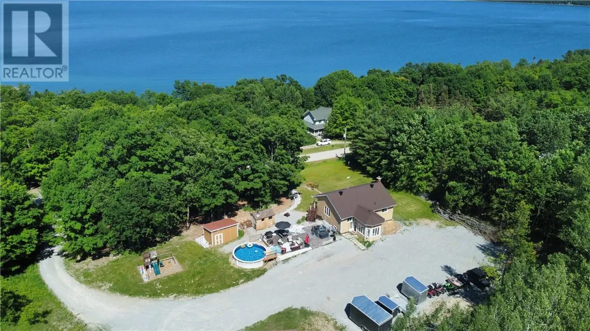 Welcome to this beautifully maintained bungalow in the sought-after Maple Ridge area of Kagawong, offering stunning views over Mudge Bay. Set on a private, landscaped 1.1-acre lot with a peaceful forest backdrop, this 2,136 sq ft home (1,138 sq ft above grade) blends comfort, functionality, and nature just a short walk from the sandy beach and nearby trails. The home features 2+1 bedrooms, 2 full bathrooms and den, with a bright open-concept layout that includes the kitchen, dining, and living areas. A cozy family room and a sun-filled sunroom add to the generous living space. From both levels, step outside to enjoy the views from the upper balcony or relax on the lower walkout porch. Thoughtfully updated and well-equipped, this home includes a whirlpool tub, a pellet stove, a mini-split heat and air conditioning system. Five appliances are included for added convenience. The fully finished walkout basement offers flexibility for guests or extra living space. Outside, you'll find everything you need for outdoor enjoyment: a double garage, storage and garden shed and an above-ground pool. Whether youâre looking for a full-time residence or a peaceful retreat, this home offers year-round comfort in a stunning natural setting. (id:27476)