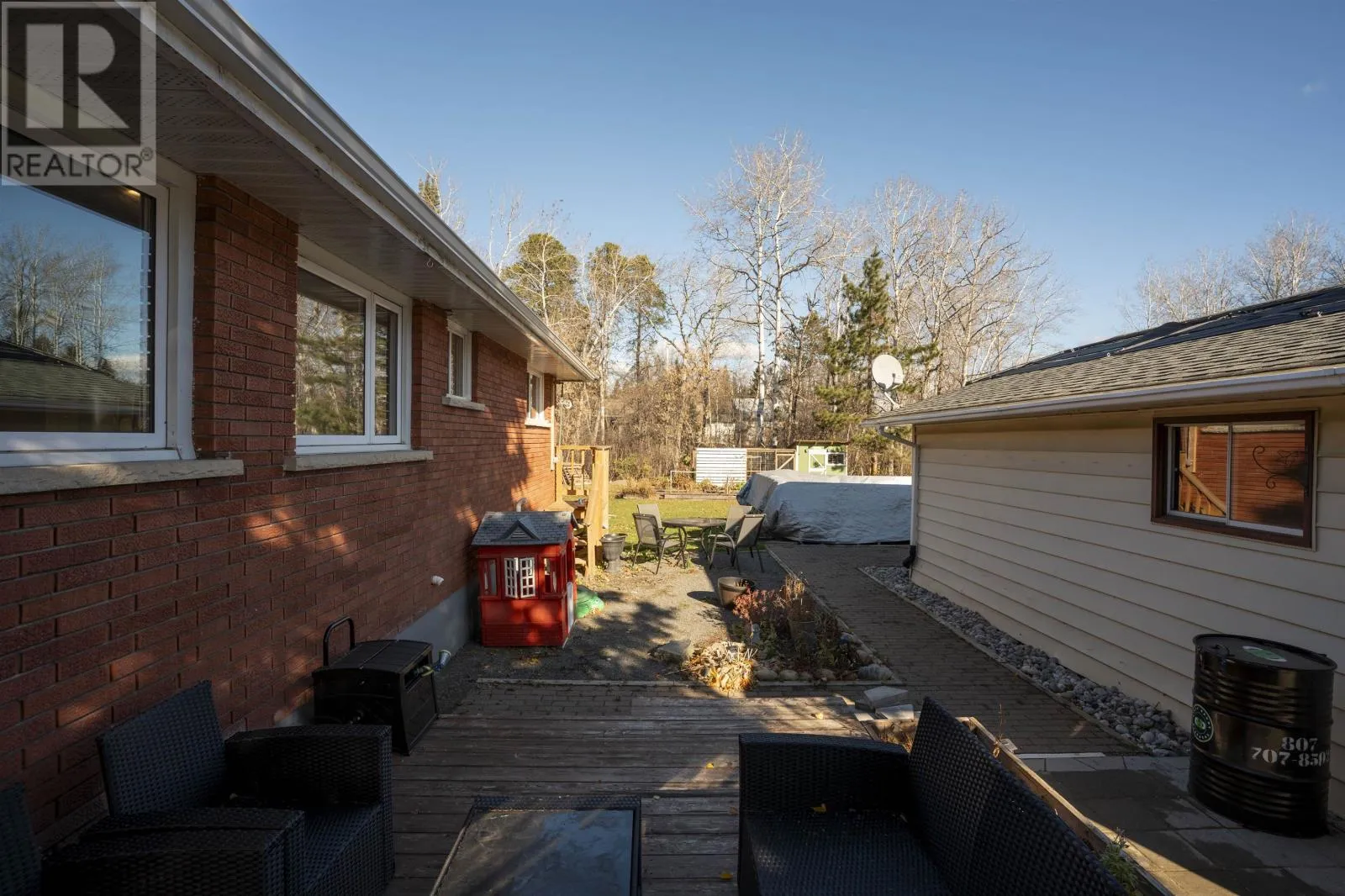 From HWY 11/17 just past Odena Foods on the Left, Turn onto Marian St. and Keep Driving until Dorothy (House on Right Hand Side) New Listing. Welcome to this gorgeous brick bungalow, perfectly situated in the charming community of Kakabeka. This beautifully cared-for home with over 2200 square feet of liveable space, combines timeless character with modern upgrades, offering the ideal retreat for families or anyone seeking peace, space, and comfort. As you arrive, youâll be impressed by the expansive yard featuring a well-tended garden and a practical shed. The property also includes an above-ground pool for those warm summer days and a detached two-car garage offering plenty of parking and storage. Over the past year, this home has seen several updates, including some new paint, some new appliances, a new garage door, new eavestroughs, and a new well pumpâadding value and peace of mind. Step inside to discover a bright, inviting living space. The main level features a beautifully refreshed kitchen with modern finishes and appliances that make cooking a pleasure. The spacious open-concept living and dining area provides the perfect setting for relaxing or entertaining guests. Youâll also find three cozy bedrooms and a luxurious five-piece bathroom on this floor, along with a thoughtfully designed entryway and mudroom that add both practicality and charm. The finished basement greatly enhances the living area, offering a large rec or family room, a generous bedroom, and a stylish three-piece bathroom. This versatile lower level easily adapts to your lifestyle, whether you need a guest suite, home office, or additional living space. Outdoor living shines here, with a welcoming deck ideal for entertaining and a cozy firepit area for enjoying evenings under the stars. This exceptional home is move-in ready and truly a must-see. Schedule your private tour today to experience everything this remarkable property has to offer! Call now or visit www.jamescameronrealestate.com for more details. (id:27476)