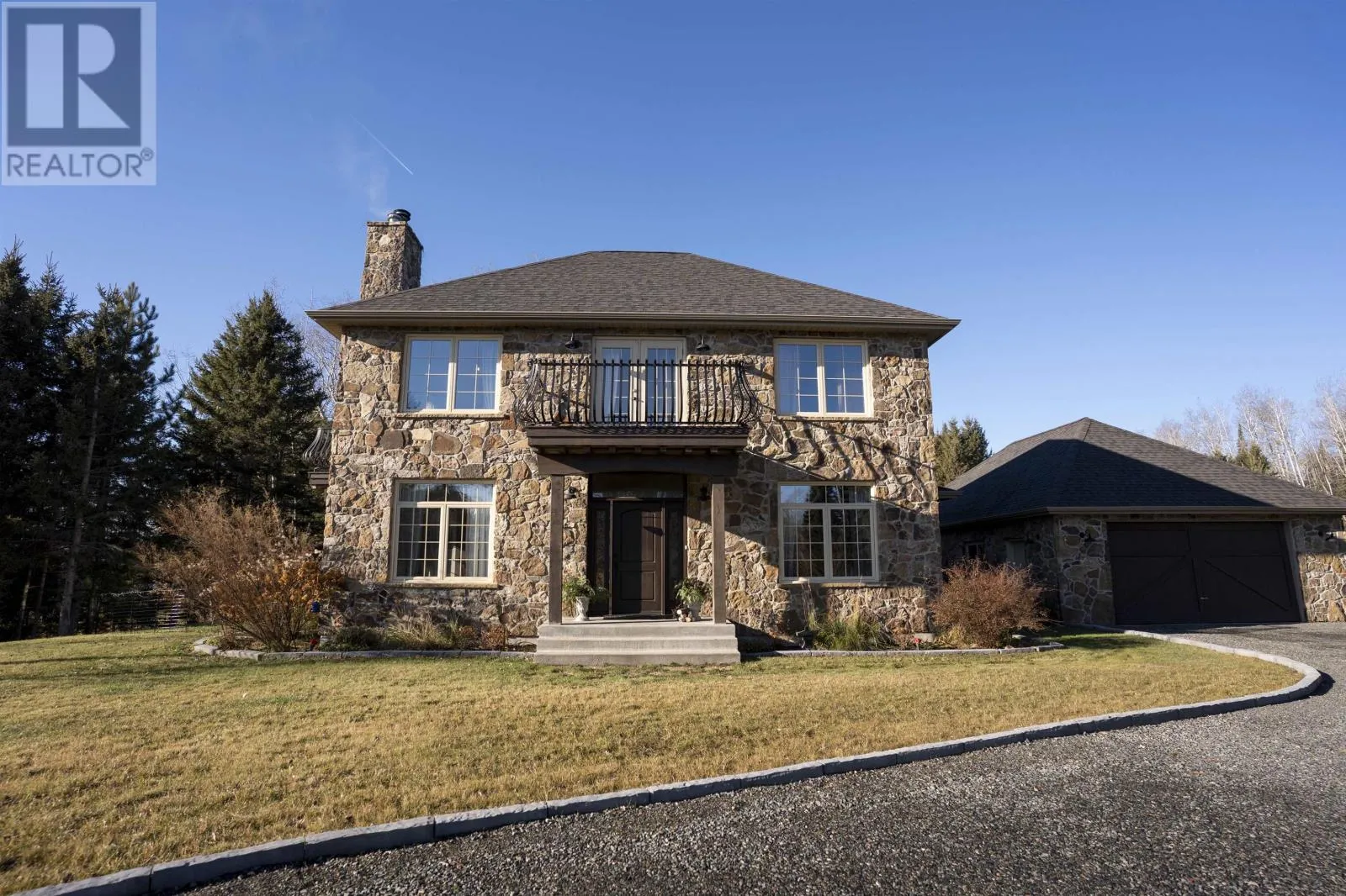 Head North on Clergue St UPSCALE CUSTOM LUXURY! Skip the build time! This custom built home is finished to perfection. Architecturally distinctive with a stone exterior and interior featuring reclaimed wood beams and wrought iron details. Main floor offers a traditional layout with a stunning kitchen which flows nicely to the living room, dining room and Den. Two main living fireplaces (stone in the dining room, stone in the finished basement). Master retreat includes a wrap around second floor verandah, 5-pc bath, and WIC. Ultimate relaxation space in the basement with a sauna, recreation room, 3 PC bathroom and bedroom or workout room. A unique, quality-built home close to the convenience and beauty of Kakabeka Falls amenities and parkland. Property offers privacy with no neighbours behind, beautiful landscaping and a large detached Garage (37 x32) (id:27476)