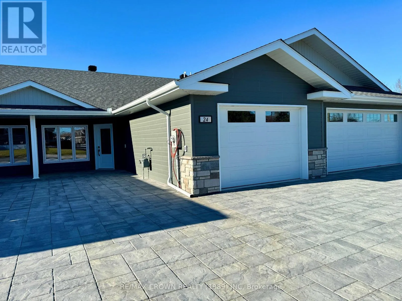 From Highway 11 turn on Golf Street. Discover Your Dream Home on the Kapuskasing Golf Course! Welcome to your new home, nestled beside the serene 8th hole of the Kapuskasing Golf Course. These newly built residences, backed by a warranty, are perfect for those who wish to enjoy their summers right on the greens. Choose from our elegant 2-bedroom units, available in two layouts: - End Units: Approximately 1200 sq ft with a spacious attached heated 2-car garage. - Middle Units: Approximately 1100 sq ft with an attached heated 1-car garage. As you arrive, you'll be greeted by a beautifully paved stone driveway leading to the entrance. Step inside to an open concept living space adorned with pot lights, creating a bright and airy ambiance. Both bedrooms are located at the back of the home, offering tranquil views of the golf course. The master bedroom features air conditioning and a walk-in closet, while the second bedroom includes a convenient closet with access to the laundry area and the homes air exchanger. Some units are move-in ready, while others allow buyers to personalize their kitchen cabinets and bathroom vanities. The living room is equipped with air conditioning and ready hookups for internet, cable, and telephone. From the main entrance, you have direct access to your attached garage, which houses a 100-amp electrical breaker panel, a 2-in-1 boiler providing in-floor heating for both the home and garage, and a mud sink. The exterior of the homes is finished with CanExel siding and stone, complemented by pot lights in all soffits for excellent nighttime illumination. Each home boasts a private backyard with an 8x12 shed. The back of the home also features a natural gas hookup for your BBQ. These single-level homes are wheelchair accessible and designed for low maintenance, ensuring that this is the last move youll ever need to make. Embrace a lifestyle of comfort and convenience at Kapuskasing Golf Course. (id:27476)