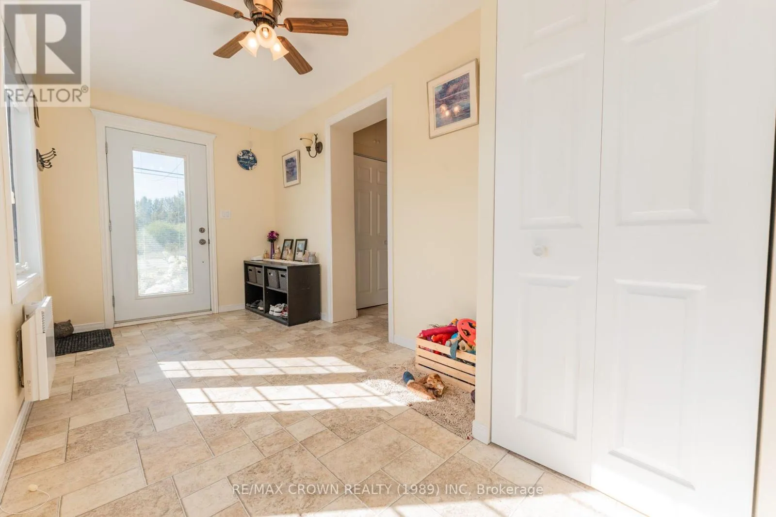 North side of Highway 11 in Fauquier This charming brick bungalow has everything youve been looking for! Offering 1,178 sq. ft. of comfortable living space, this home is designed for both convenience and relaxation. Step inside through the spacious side entrance, perfect for all your coats, shoes, and everyday essentials.On the main level, youll find a bright and inviting living room at the front, flowing into the kitchen and dining areacomplete with a patio door leading to the front deck, ideal for morning coffee or greeting the day. Toward the back, a spacious 4-piece bathroom and a large primary bedroom await, while the second bedroom features its own patio door to the back deckperfect for summer BBQs and enjoying the outdoors.The finished basement expands your living space with two additional bedrooms, another 4-piece bathroom, a convenient laundry room with mud sink and extra cabinetry, plus a utility room and plenty of storageincluding under the stairs.Outside, youll appreciate the 18x28 insulated, gas-heated garage and two storage sheds (14x20 and 6x7) for all your toys and equipment. With a 39x4 front deck and a 14x10 back deck, theres no shortage of spots to relax and unwind. With trees and greenery, this property blends comfort with natural charm.The home is powered by a 200-amp electrical service, heated with a forced air gas furnace (2011), and cooled with central air (1996). Everything is here for easy livingcome see it for yourself and imagine calling it home! (id:27476)