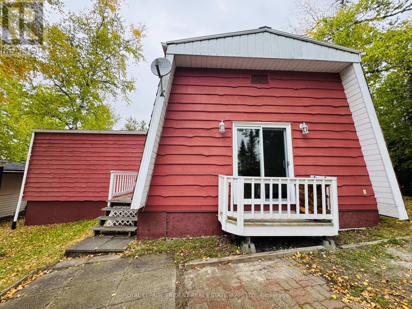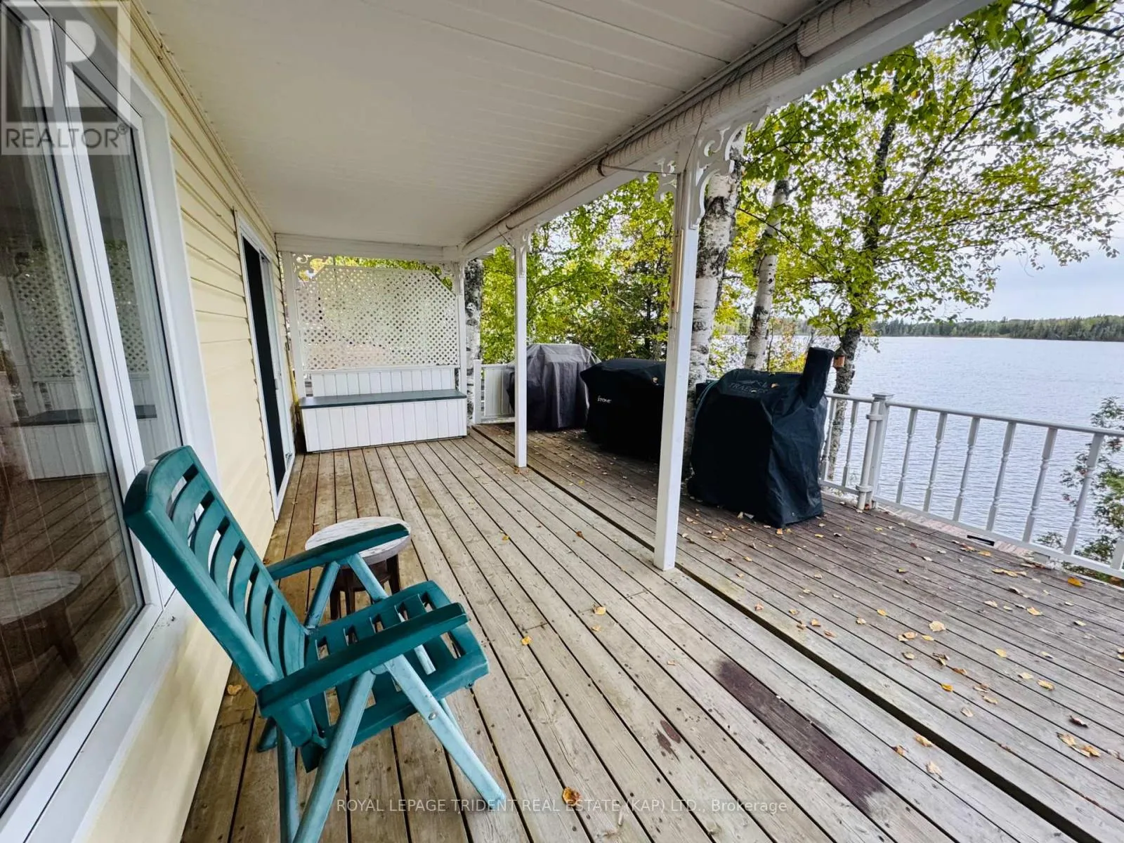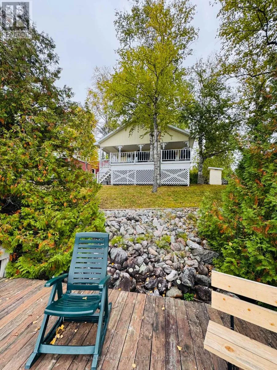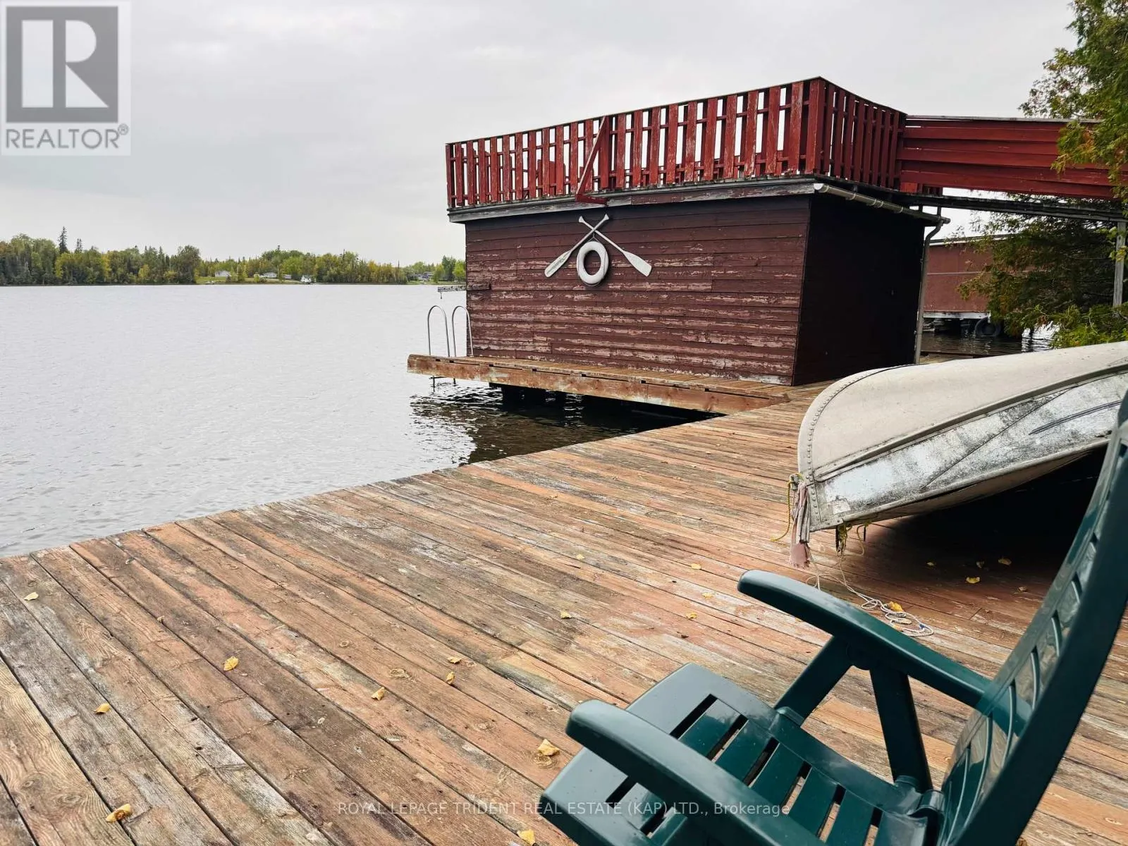 Cross Streets: Ouellette Bay Road & Lefebvre Peninsula Road. ** Directions: From Ouellette Bay Road, turn onto Lefebvre Peninsula. A true Northern Ontario waterfront gem on beautiful Remi Lake! This exceptional property offers a breathtaking panoramic view of the lake and boasts the best seat in the house for unforgettable sunsets. The main residence, built in 1979, is a cozy, fully insulated, year-round home featuring approximately 760 sq ft of living space with two bedrooms, one bathroom, and a bright open-concept kitchen and living area. The kitchen showcases oak cabinetry and a patio door leading to a large covered wrap-around deck overlooking the lake - perfect for morning coffee, BBQs, or watching the sunset. A wood fireplace adds warmth and charm, while abundant natural light enhances the inviting atmosphere. A secondary three-season guest dwelling offers flexible options for extended family, guests, or short-term rentals and includes a large bedroom, bathroom, cozy open-concept living area, woodstove, and electric heat. It is partly insulated and could easily be converted to four-season use. The propertys laundry facilities are located within this dwelling. Outdoor living here is truly special, featuring a 16 ft x 16 ft screened-in gazebo with electricity, custom winter panels, and a new roof (2024), a boathouse with an upper deck and power hookup accommodating up to a 16-foot boat, a dedicated firepit area, interlock driveway, and a spacious detached heated and insulated garage (24 ft x 36 ft) across the road with 12-foot ceilings and infrared heating. Additional highlights include a lake water system with three-stage filtration, separate hot water tanks for each dwelling, vinyl windows (2001), convect-air backup heaters, and an A/C wall unit in the main home. Whether youre seeking a peaceful year-round residence, a multi-generational family retreat, or an investment with rental potential, this property offers endless possibilities in a serene, private setting on one of Northern Ontario's most desirable lakes. ** This is a linked property.** (id:27476)