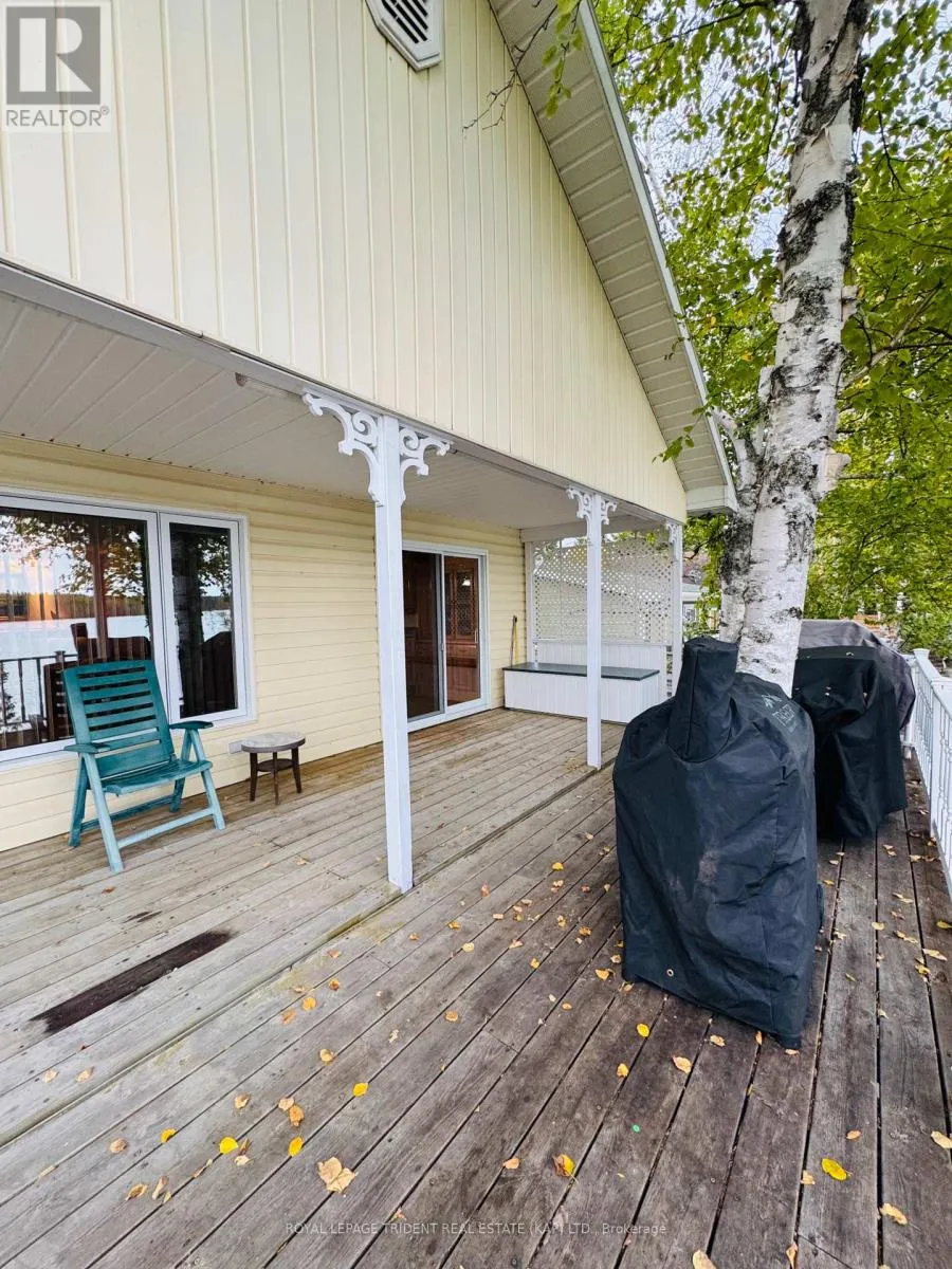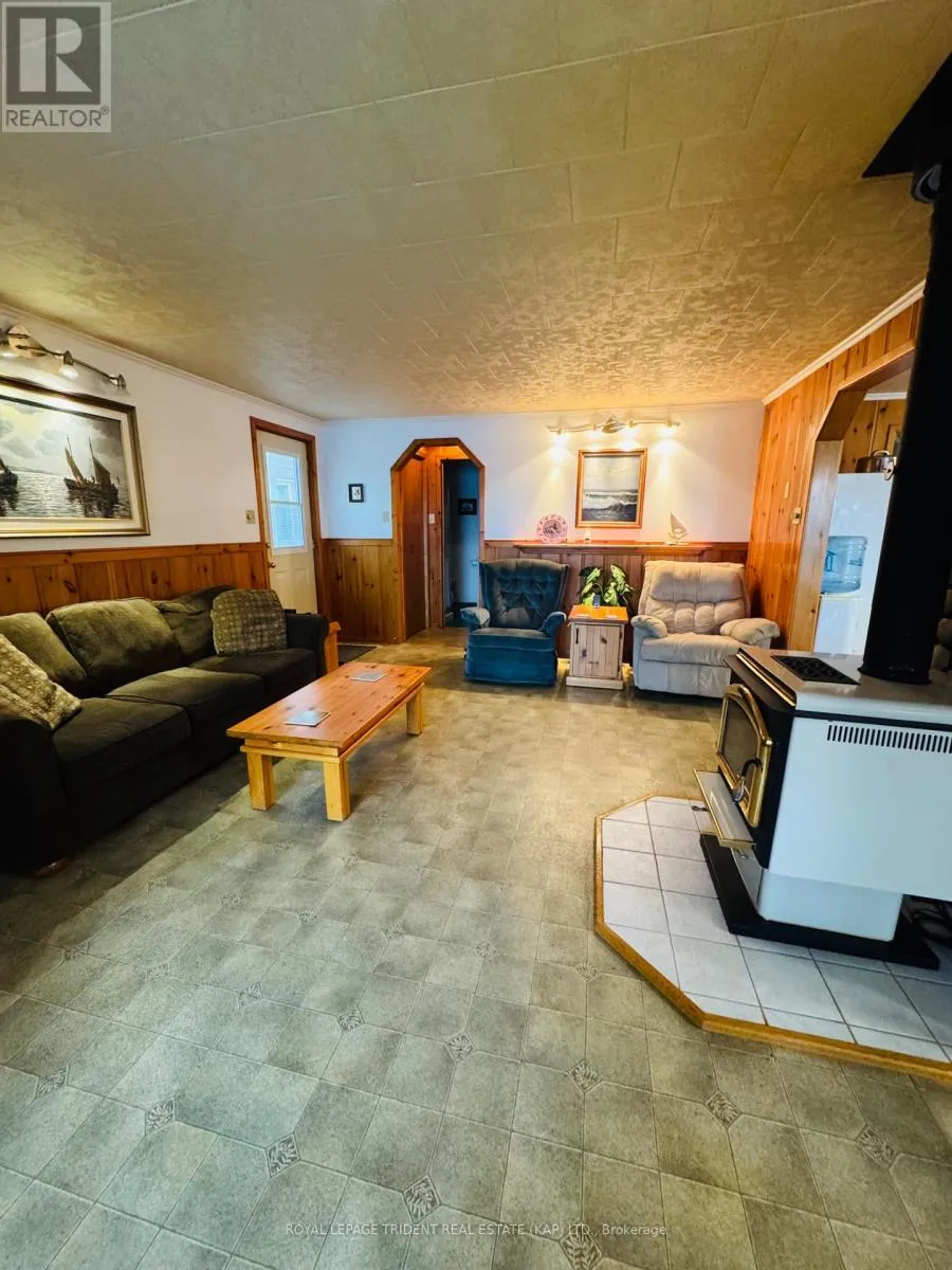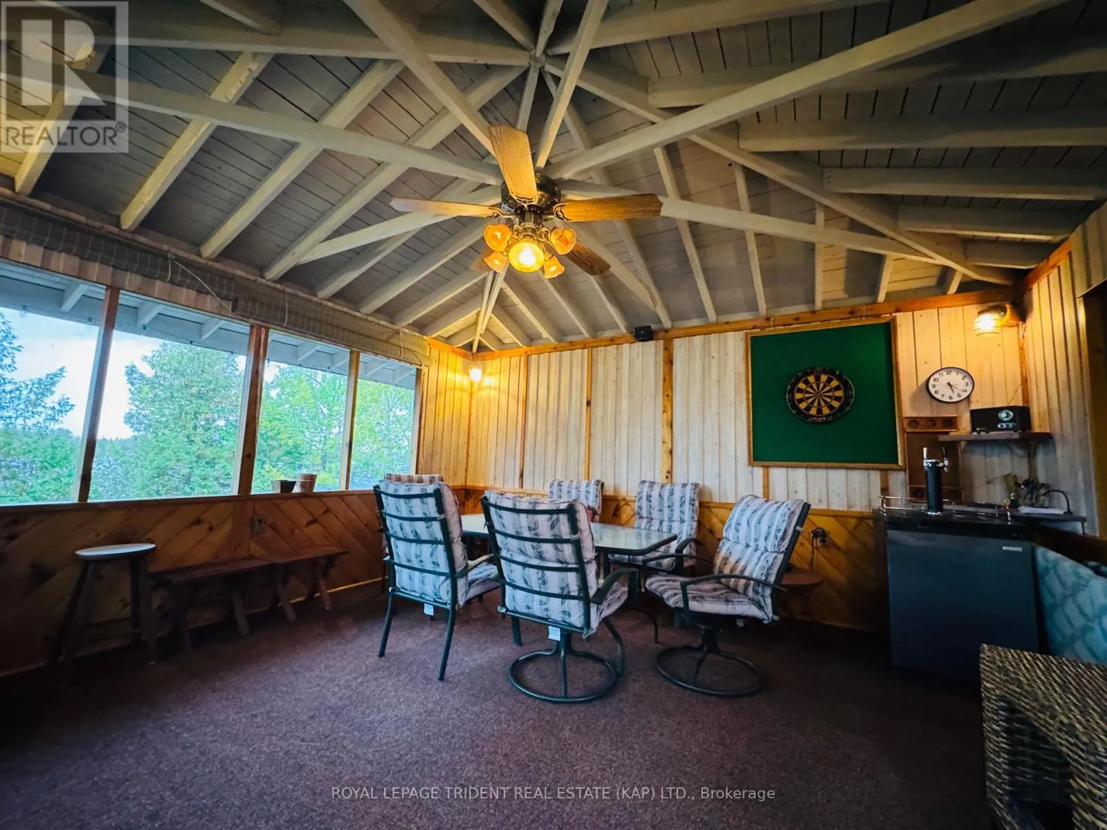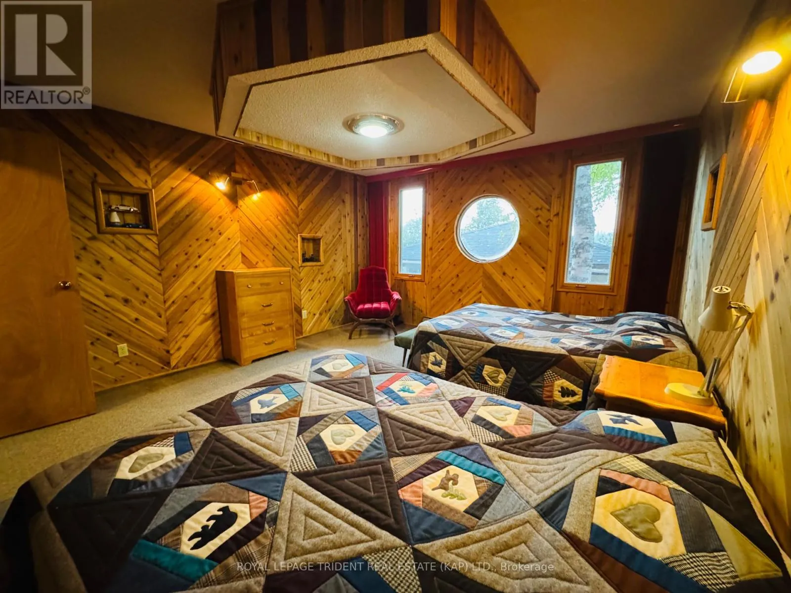 Cross Streets: Ouellette Bay Road & Lefebvre Peninsula Road. ** Directions: From Ouellette Bay Road, turn onto Lefebvre Peninsula. A true Northern Ontario waterfront gem on beautiful Remi Lake! This exceptional property offers a breathtaking panoramic view of the lake and boasts the best seat in the house for unforgettable sunsets. The main residence, built in 1979, is a cozy, fully insulated, year-round home featuring approximately 760 sq ft of living space with two bedrooms, one bathroom, and a bright open-concept kitchen and living area. The kitchen showcases oak cabinetry and a patio door leading to a large covered wrap-around deck overlooking the lake - perfect for morning coffee, BBQs, or watching the sunset. A wood fireplace adds warmth and charm, while abundant natural light enhances the inviting atmosphere. A secondary three-season guest dwelling offers flexible options for extended family, guests, or short-term rentals and includes a large bedroom, bathroom, cozy open-concept living area, woodstove, and electric heat. It is partly insulated and could easily be converted to four-season use. The propertys laundry facilities are located within this dwelling. Outdoor living here is truly special, featuring a 16 ft x 16 ft screened-in gazebo with electricity, custom winter panels, and a new roof (2024), a boathouse with an upper deck and power hookup accommodating up to a 16-foot boat, a dedicated firepit area, interlock driveway, and a spacious detached heated and insulated garage (24 ft x 36 ft) across the road with 12-foot ceilings and infrared heating. Additional highlights include a lake water system with three-stage filtration, separate hot water tanks for each dwelling, vinyl windows (2001), convect-air backup heaters, and an A/C wall unit in the main home. Whether youre seeking a peaceful year-round residence, a multi-generational family retreat, or an investment with rental potential, this property offers endless possibilities in a serene, private setting on one of Northern Ontario's most desirable lakes. ** This is a linked property.** (id:27476)