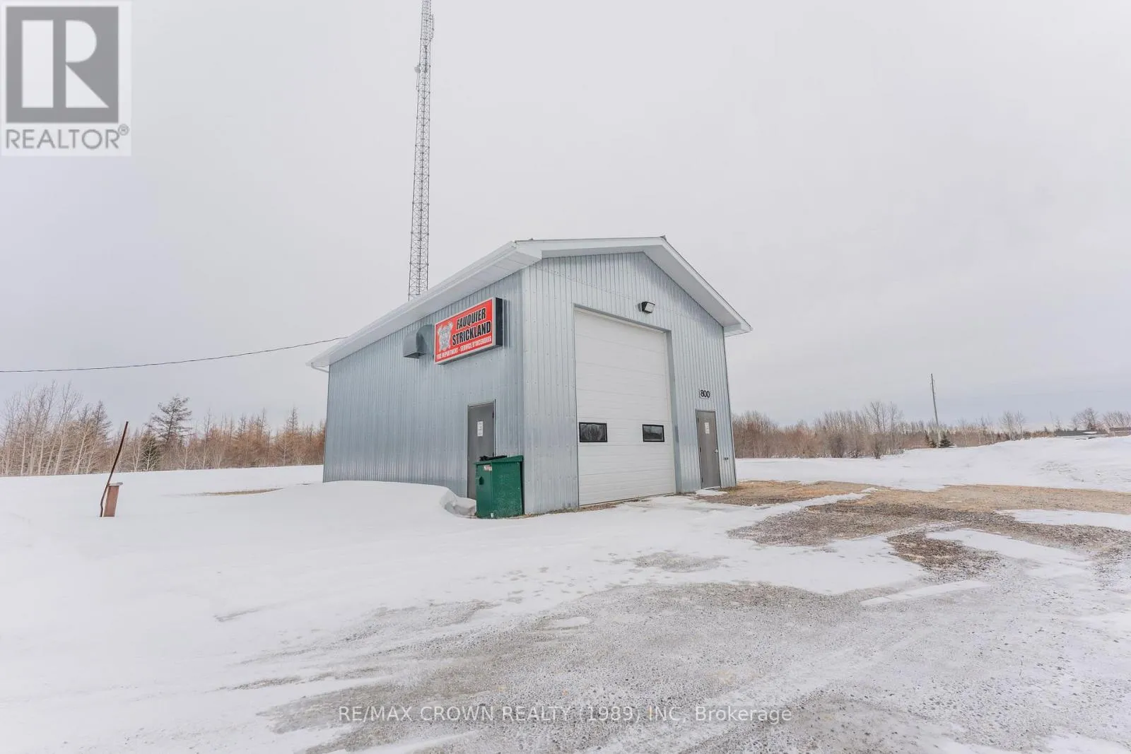 corner of Highway 11 and Cloutier in Strickland What an opportunity to own a versatile 2.53-acre property located right along the north side of Highway 11, at the corner of Cloutier Road in Strickland! This former fire station is packed with potential and comes with a massive 26' x 40' garage built in 2000 - complete with 16' high ceiling and an automatic garage door measuring 12' wide by 14' high, making it ideal for storing large vehicles or operating a business. The exterior and roof are finished with metal, and the building is heated with electricity and equipped with a 200-amp breaker panel.Inside, you'll find a functional layout that includes an office space, a bathroom with two showers, and a utility room. A drilled well system (installed in 2001) and a septic system exist on the property, but both are currently non-operational. Buyers will be responsible for conducting their own due diligence regarding these systems.The property also features a gazebo and an internet tower under lease - the new buyer will assume the role of landlord for that lease.Don't miss out on this exciting opportunity with so much room for potential - right off the highway and ready for your next big idea! (id:27476)
