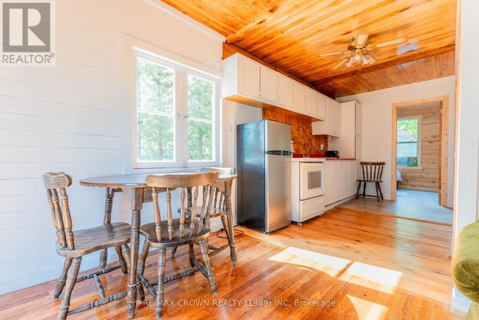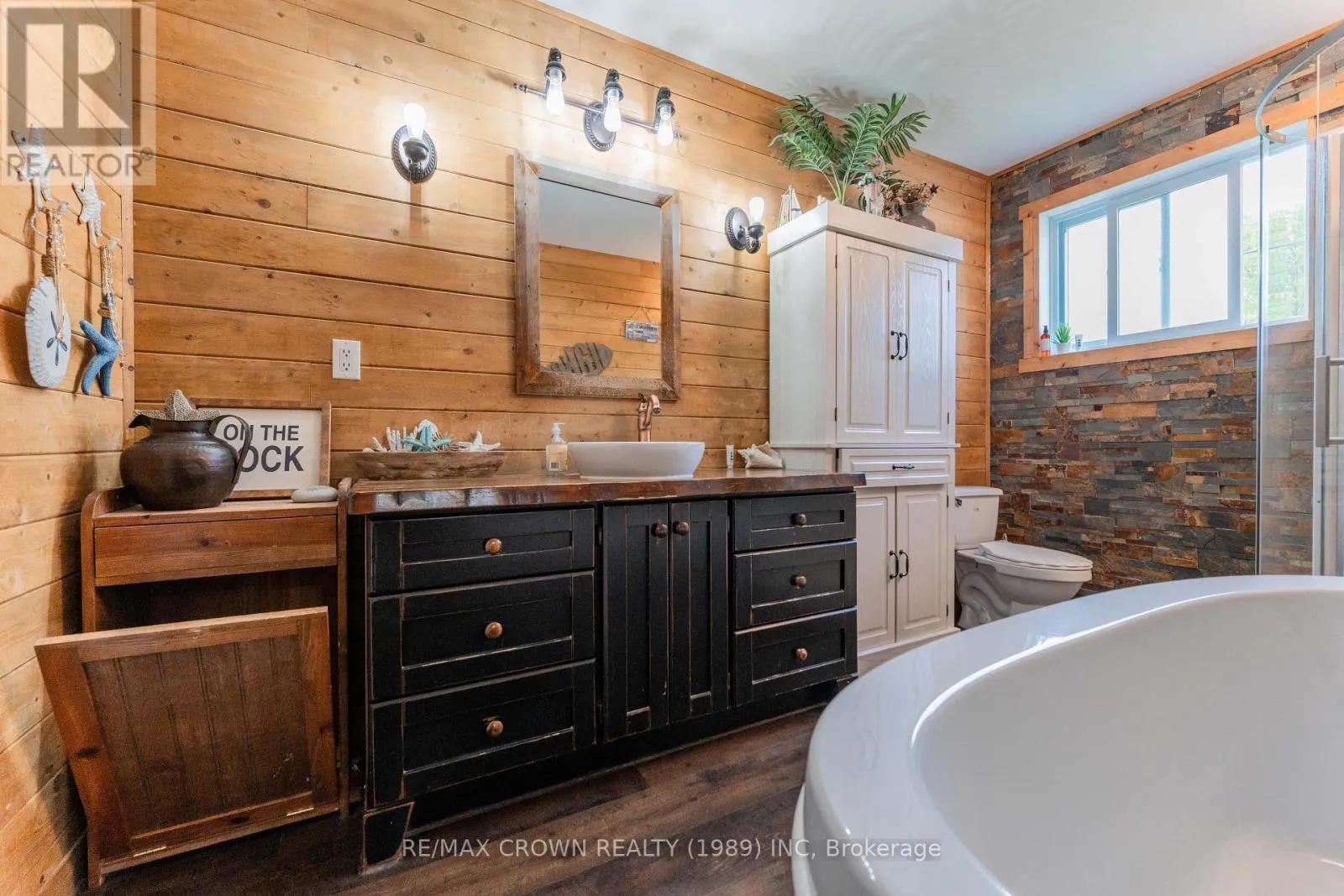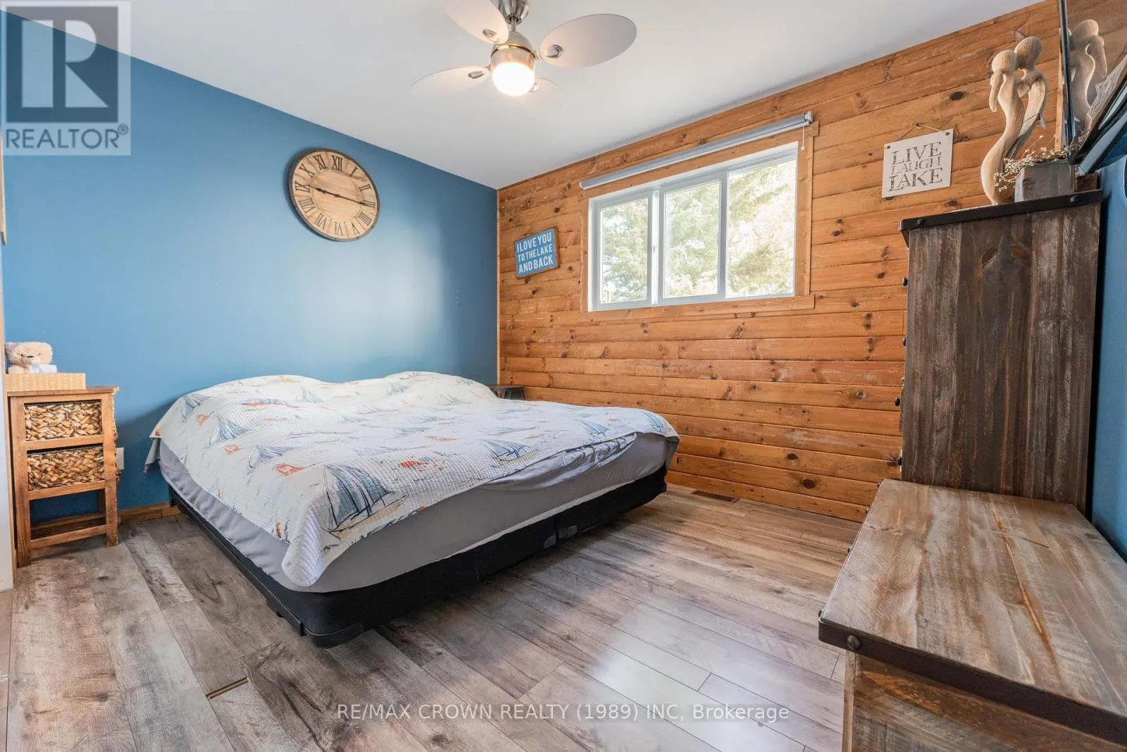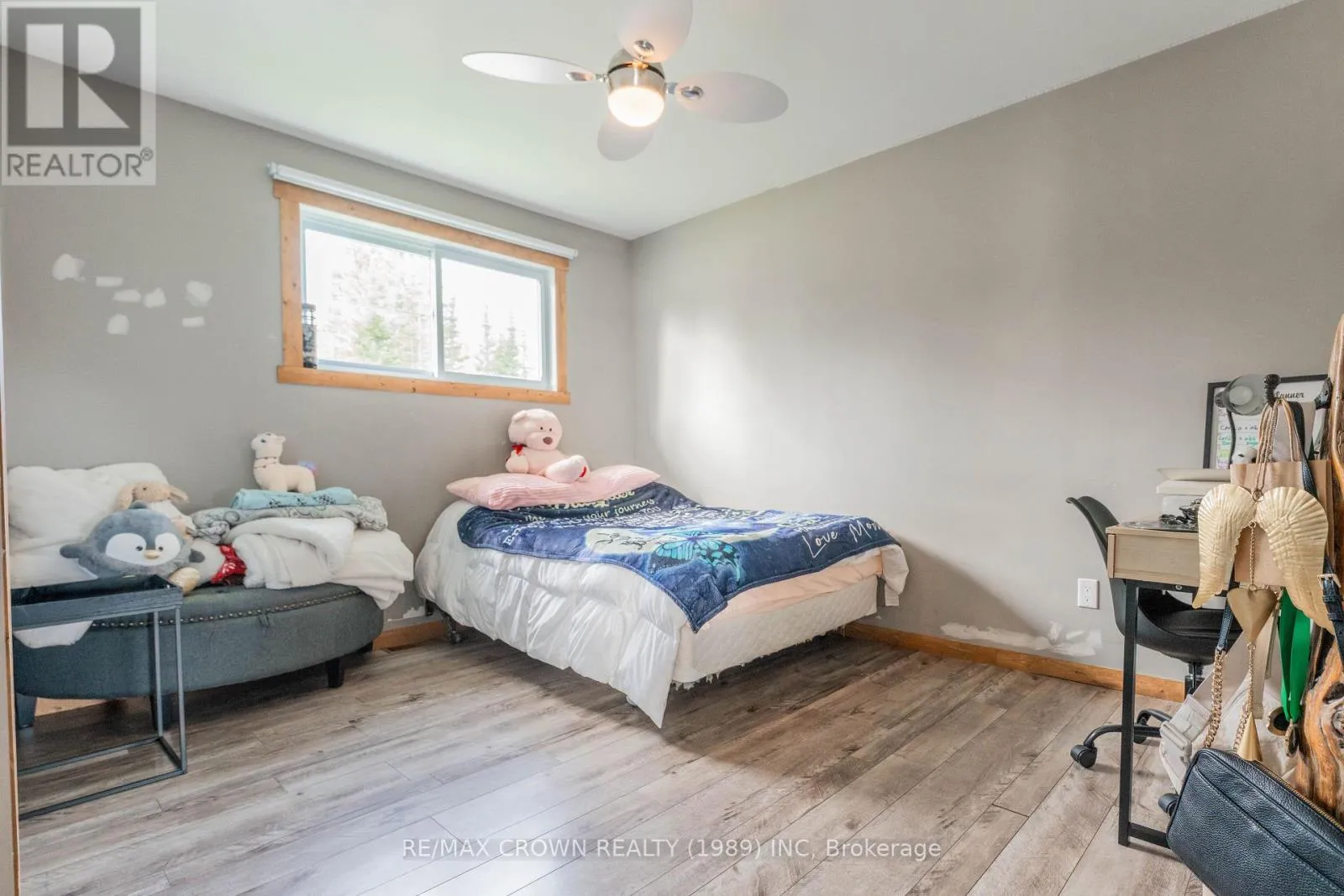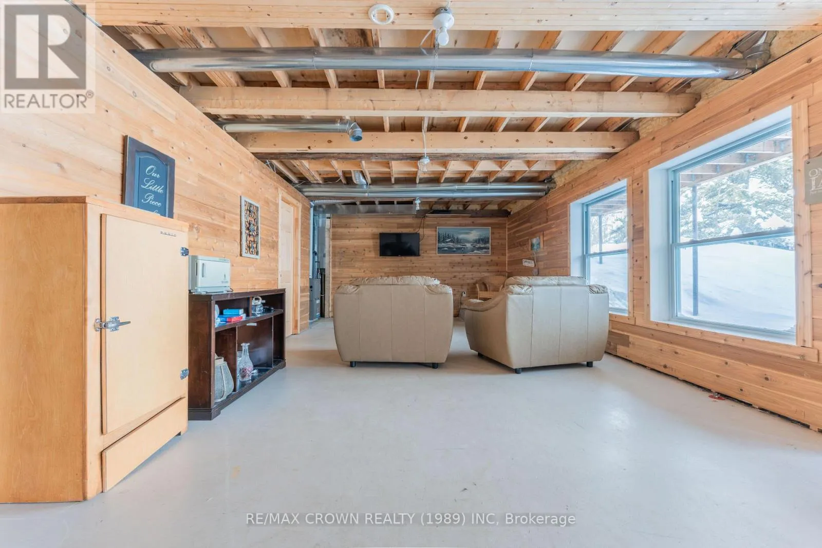 From Ouellette Bay Rd and Lefebvre Peninsula Rd Enjoy year-round waterfront living on Remi Lake with this renovated home on a rare double waterfront lot, offering views and direct lake access. A bonus lot across the road includes a guest summer cottage and a garage, creating a multi-functional property for every season.The 1,254 sq. ft. main floor offers a bright, open-concept layout with natural light and finishes. The kitchen features granite countertops, stone backsplash and an island flowing into the living and dining areas, ideal for entertaining with lake views. The living room highlights a vaulted ceiling with spruce wood finishes. Two bedrooms are located on this level, including a primary bedroom with pine wood finishes and balcony access overlooking Remi Lake, plus a second bedroom. A spacious 4-piece bathroom with cedar finishes, soaker tub and shower completes the main floor.The walk-out basement adds living space with waterfront-facing windows and direct outdoor access. It includes an open recreation room with cedar finishes and patio doors leading to a wood pathway straight to the lake. A third bedroom is roughed in, with the option to add a basement bathroom.Designed for outdoor enjoyment, this double-lot property features a gazebo and firepit area. The home was fully renovated between 2014 and 2019 and includes a newly approved septic holding tank installed in 2025.Across the road, the 24' x 32' garage provides ample storage. The 536 sq. ft. cottage offers an open-concept kitchen, dining and living area with a propane fireplace (ready to be hooked up), two bedrooms and a 3-piece bathroom. Both buildings feature metal roofs. The property includes lake water intake and a 500-gallon plastic sewage holding tank.Located in the heart of Moonbeam, this property is minutes from Bay Ouellette beach, boat launches, campgrounds, Twin Lakes Waterpark, snowmobile and ATV trails, nature trails, ski hill, 9-hole golf course, sports fields, school, grocery store, hardware store, restaurants and church. (id:27476)