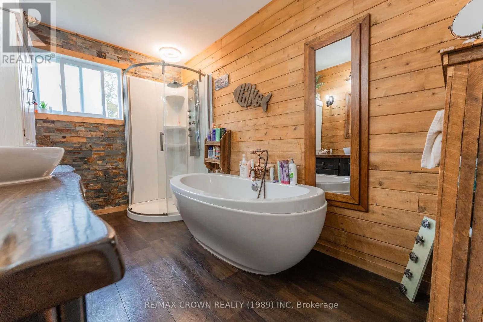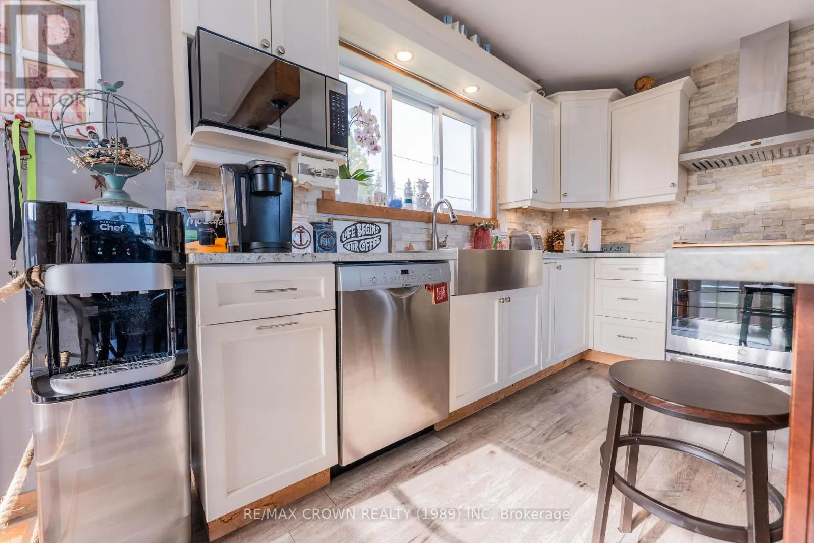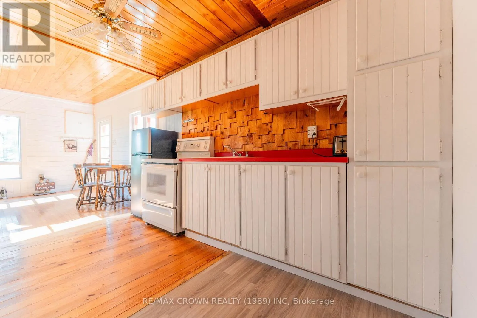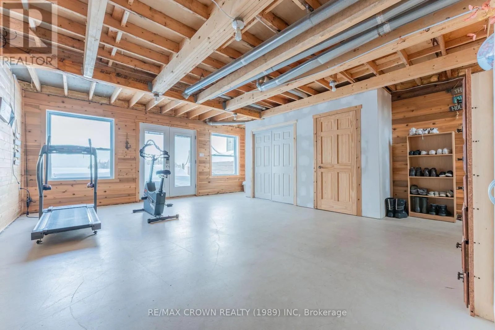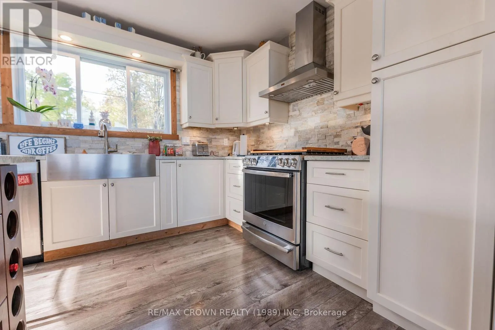 From Ouellette Bay Rd and Lefebvre Peninsula Rd Enjoy year-round waterfront living on Remi Lake with this renovated home on a rare double waterfront lot, offering views and direct lake access. A bonus lot across the road includes a guest summer cottage and a garage, creating a multi-functional property for every season.The 1,254 sq. ft. main floor offers a bright, open-concept layout with natural light and finishes. The kitchen features granite countertops, stone backsplash and an island flowing into the living and dining areas, ideal for entertaining with lake views. The living room highlights a vaulted ceiling with spruce wood finishes. Two bedrooms are located on this level, including a primary bedroom with pine wood finishes and balcony access overlooking Remi Lake, plus a second bedroom. A spacious 4-piece bathroom with cedar finishes, soaker tub and shower completes the main floor.The walk-out basement adds living space with waterfront-facing windows and direct outdoor access. It includes an open recreation room with cedar finishes and patio doors leading to a wood pathway straight to the lake. A third bedroom is roughed in, with the option to add a basement bathroom.Designed for outdoor enjoyment, this double-lot property features a gazebo and firepit area. The home was fully renovated between 2014 and 2019 and includes a newly approved septic holding tank installed in 2025.Across the road, the 24' x 32' garage provides ample storage. The 536 sq. ft. cottage offers an open-concept kitchen, dining and living area with a propane fireplace (ready to be hooked up), two bedrooms and a 3-piece bathroom. Both buildings feature metal roofs. The property includes lake water intake and a 500-gallon plastic sewage holding tank.Located in the heart of Moonbeam, this property is minutes from Bay Ouellette beach, boat launches, campgrounds, Twin Lakes Waterpark, snowmobile and ATV trails, nature trails, ski hill, 9-hole golf course, sports fields, school, grocery store, hardware store, restaurants and church. (id:27476)