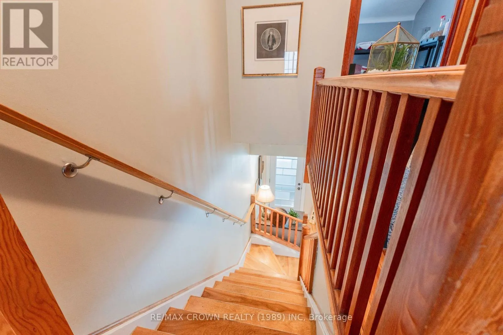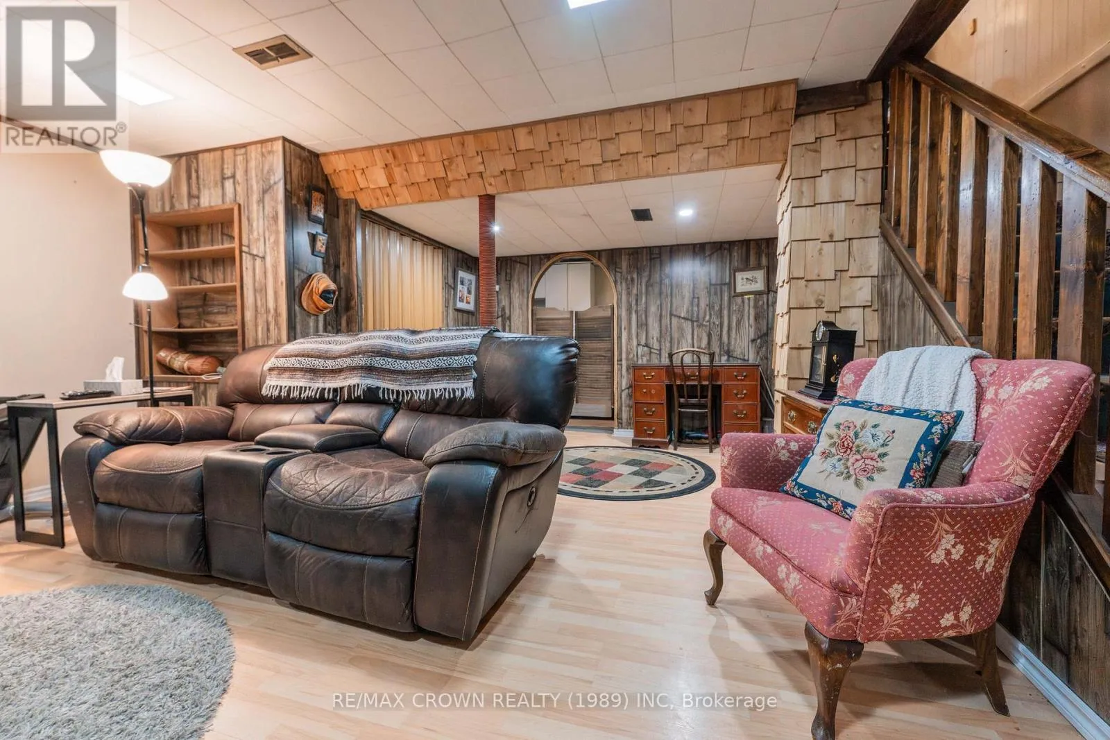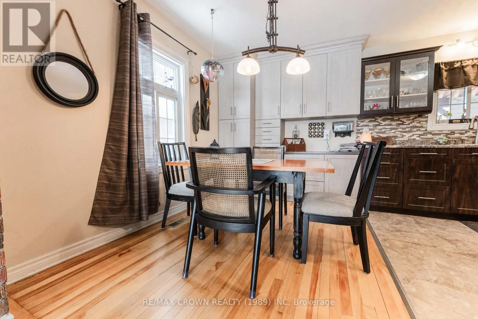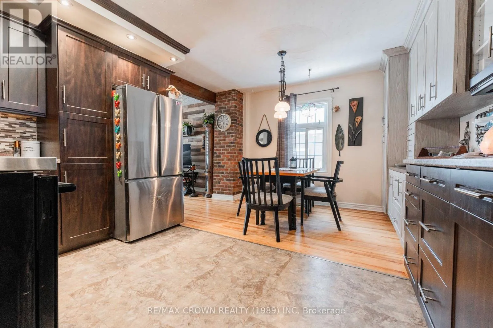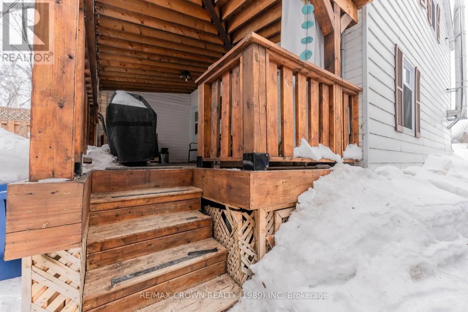 Cross Streets: Devonshire St and Hall Ave. ** Directions: From Circle St, down Queen St, left on Devonshire St. Welcome to this inviting 1,080 sq. ft. semi-detached home offering warmth, character, and thoughtful updates throughout. With 3 bedrooms and 1 full bathroom, it blends timeless charm with practical living - perfect for families, first-time buyers, or anyone seeking a move-in-ready home with personality. The bright main floor features a kitchen and dining area ideal for everyday living and entertaining. The kitchen offers soft-close cabinets and drawers, while the dining space flows into a cozy living room highlighted by a Blaze King fireplace (manufactured in 2018). An original brick chimney between the dining and living areas adds vintage charm. A small front porch with closet space provides convenient storage, and a wood accent wall adds warmth to the living room. Original cherry wood interior doors enhance the home's character. Hardwood floors run through the dining and living rooms and continue throughout the second floor for a cohesive feel. Upstairs offers three comfortable bedrooms, a 4-piece bathroom, and two hallway closets for additional storage. The finished basement expands your living space with a rec room - perfect for movie nights, a play area, or a home office - plus a combined utility and laundry room with a mud sink. Outside, the 48' x 142' lot provides plenty of room to enjoy. A 10' x 19' veranda/deck (built in 2020) is ideal for summer gatherings. The 30' x 16' insulated garage (built in 2016) offers excellent storage and workspace, along with an additional shed. The backyard also features a screened-in gazebo, a fire pit area, and a rear laneway. Major updates include new windows and exterior doors (2013), roof shingles (2015), furnace (2016), hot water tank (2016), and a 100-amp breaker panel (2016), offering peace of mind for years to come. A home that combines character, comfort, and outdoor enjoyment - ready for its next chapter. (id:27476)