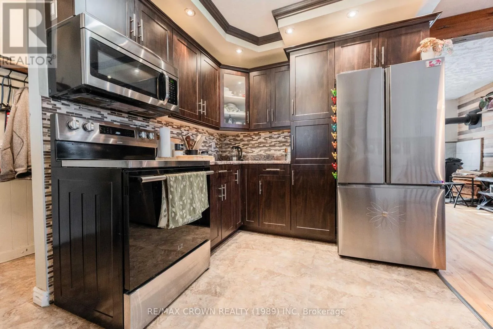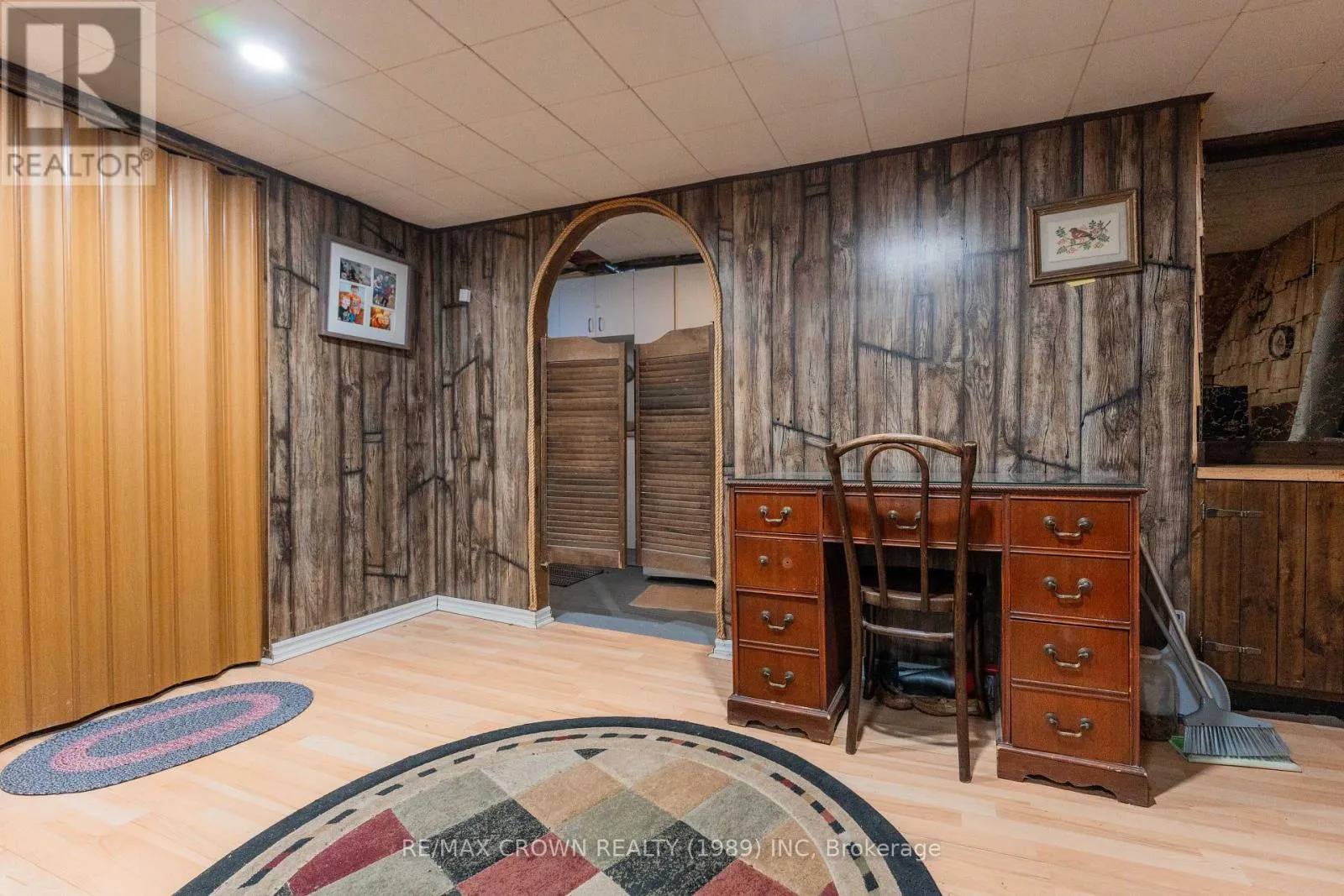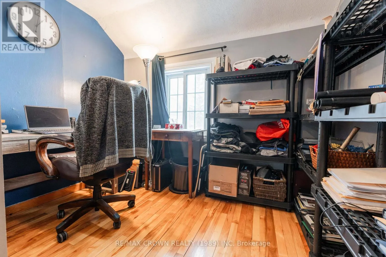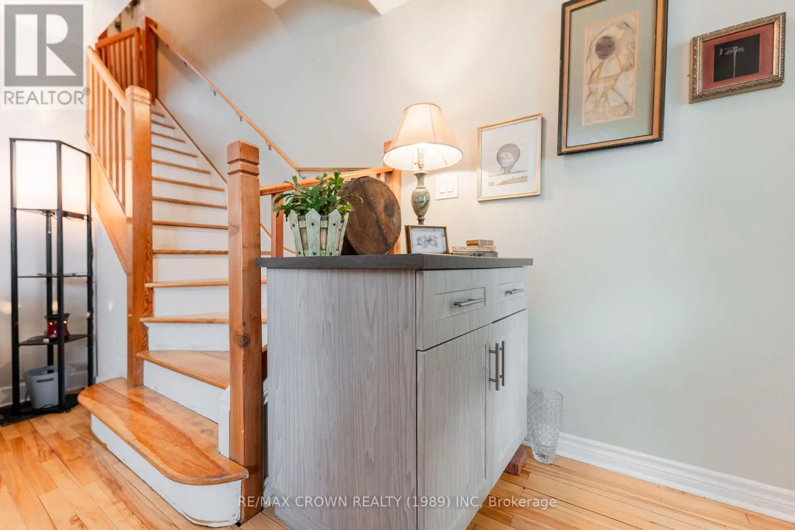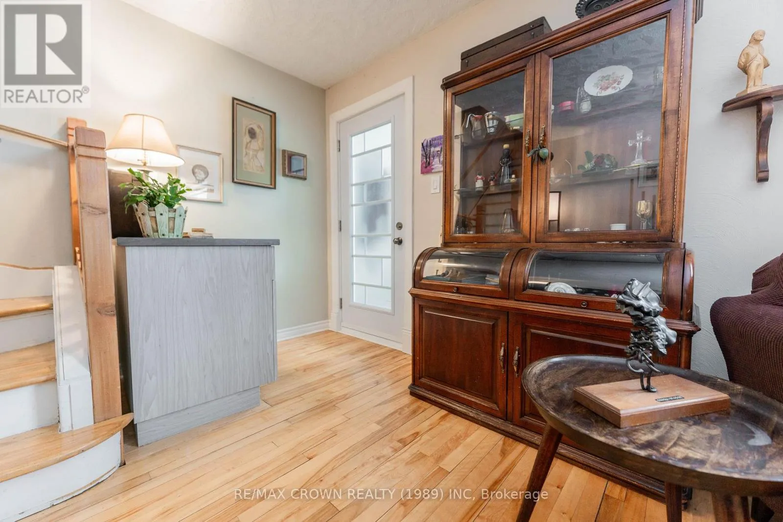 Cross Streets: Devonshire St and Hall Ave. ** Directions: From Circle St, down Queen St, left on Devonshire St. Welcome to this inviting 1,080 sq. ft. semi-detached home offering warmth, character, and thoughtful updates throughout. With 3 bedrooms and 1 full bathroom, it blends timeless charm with practical living - perfect for families, first-time buyers, or anyone seeking a move-in-ready home with personality. The bright main floor features a kitchen and dining area ideal for everyday living and entertaining. The kitchen offers soft-close cabinets and drawers, while the dining space flows into a cozy living room highlighted by a Blaze King fireplace (manufactured in 2018). An original brick chimney between the dining and living areas adds vintage charm. A small front porch with closet space provides convenient storage, and a wood accent wall adds warmth to the living room. Original cherry wood interior doors enhance the home's character. Hardwood floors run through the dining and living rooms and continue throughout the second floor for a cohesive feel. Upstairs offers three comfortable bedrooms, a 4-piece bathroom, and two hallway closets for additional storage. The finished basement expands your living space with a rec room - perfect for movie nights, a play area, or a home office - plus a combined utility and laundry room with a mud sink. Outside, the 48' x 142' lot provides plenty of room to enjoy. A 10' x 19' veranda/deck (built in 2020) is ideal for summer gatherings. The 30' x 16' insulated garage (built in 2016) offers excellent storage and workspace, along with an additional shed. The backyard also features a screened-in gazebo, a fire pit area, and a rear laneway. Major updates include new windows and exterior doors (2013), roof shingles (2015), furnace (2016), hot water tank (2016), and a 100-amp breaker panel (2016), offering peace of mind for years to come. A home that combines character, comfort, and outdoor enjoyment - ready for its next chapter. (id:27476)