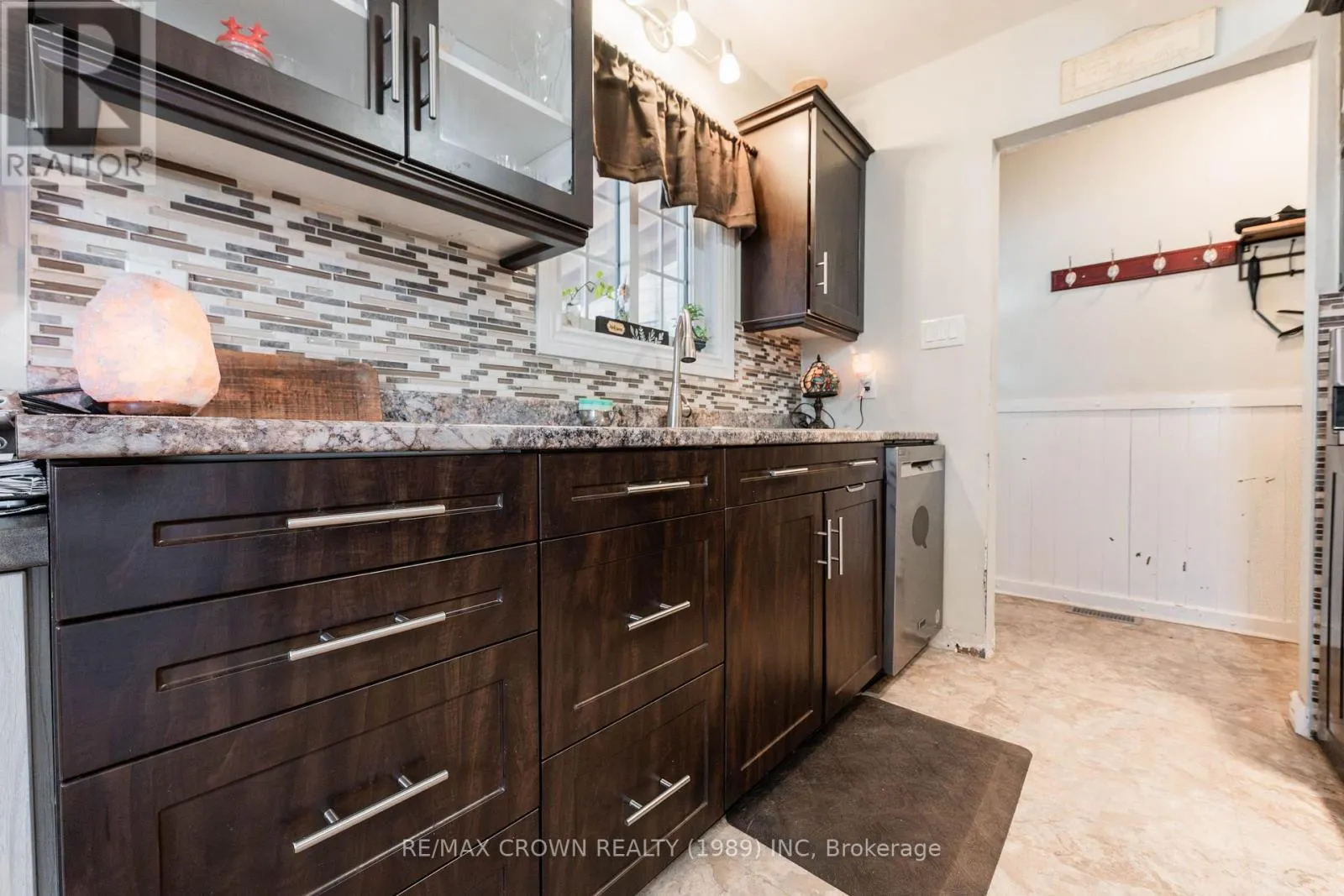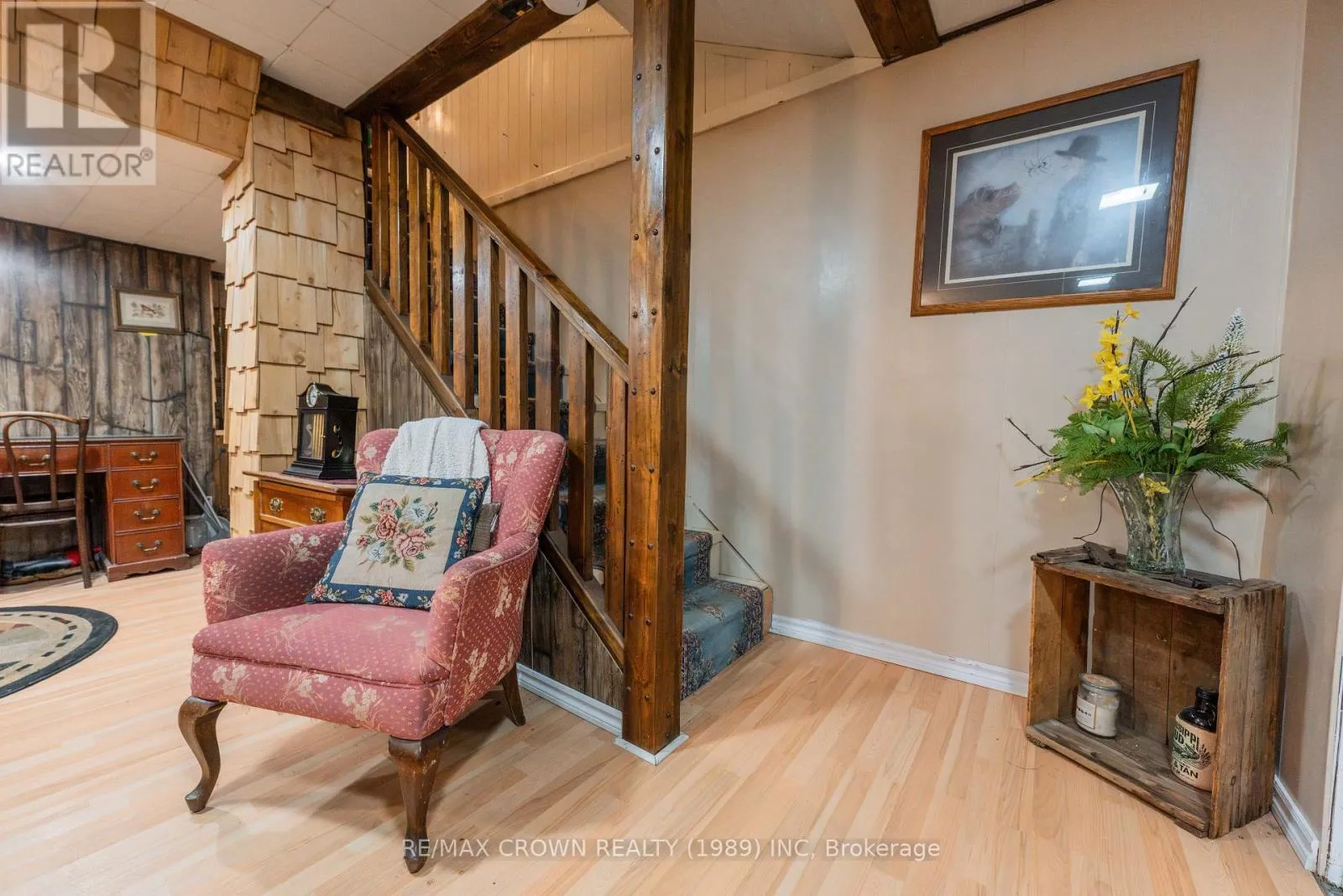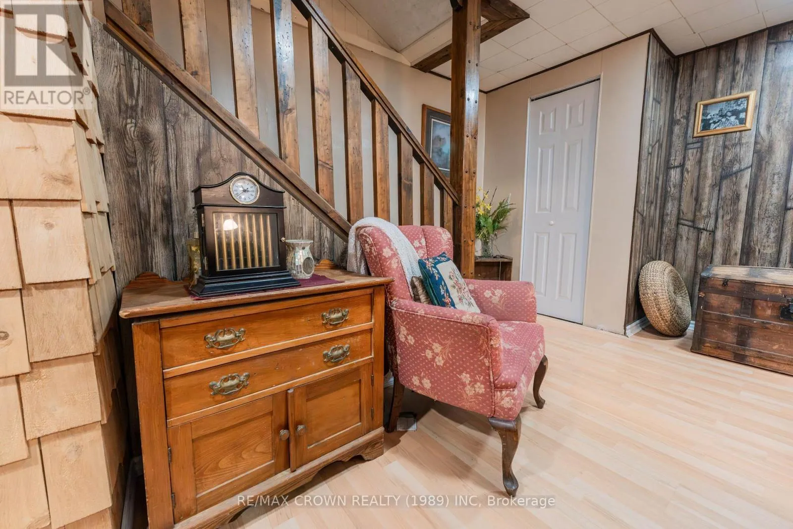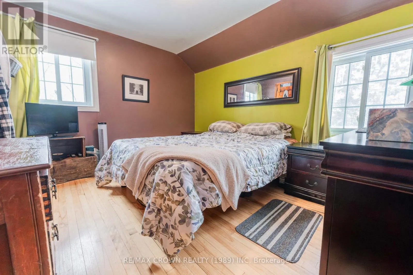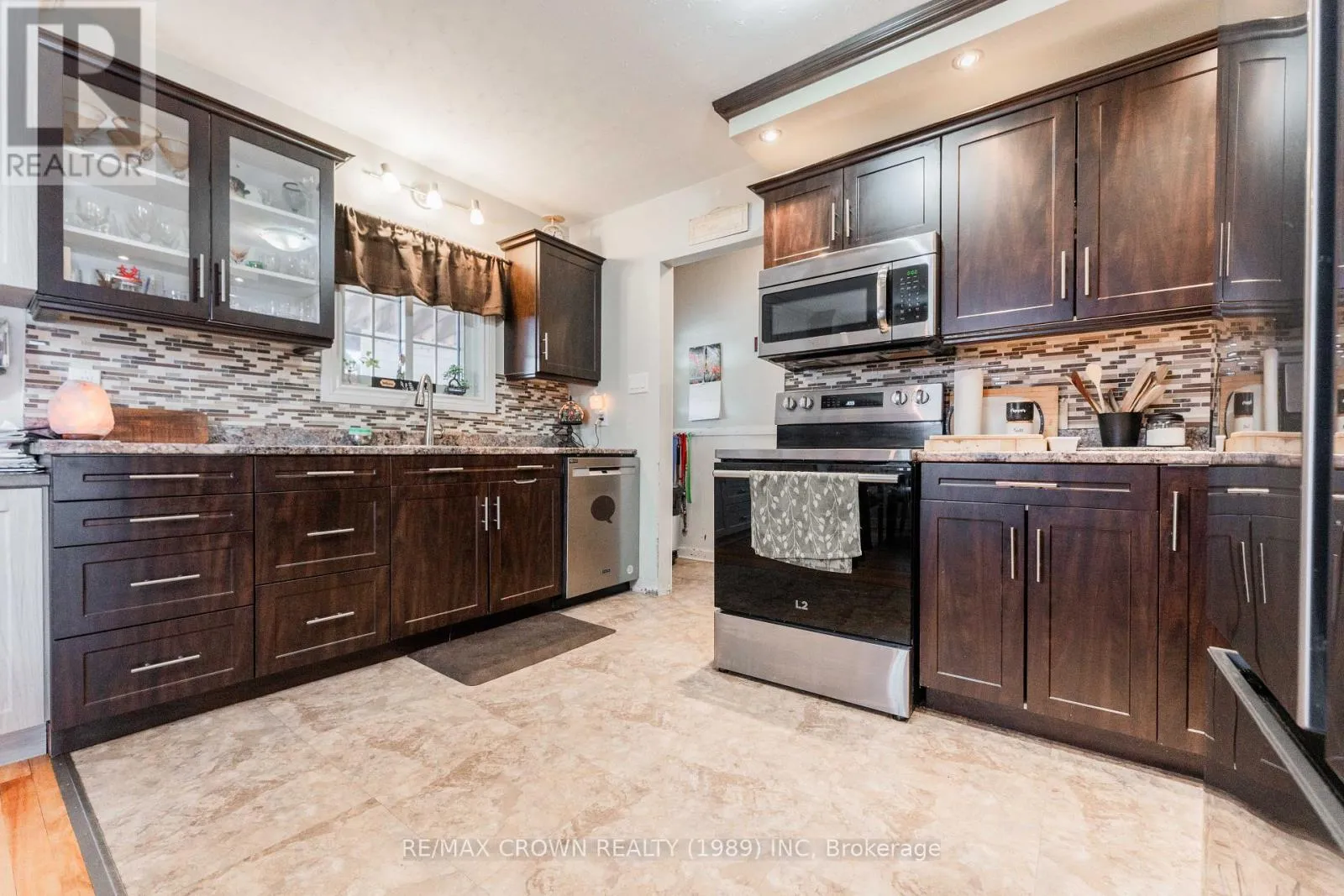 Cross Streets: Devonshire St and Hall Ave. ** Directions: From Circle St, down Queen St, left on Devonshire St. Welcome to this inviting 1,080 sq. ft. semi-detached home offering warmth, character, and thoughtful updates throughout. With 3 bedrooms and 1 full bathroom, it blends timeless charm with practical living - perfect for families, first-time buyers, or anyone seeking a move-in-ready home with personality. The bright main floor features a kitchen and dining area ideal for everyday living and entertaining. The kitchen offers soft-close cabinets and drawers, while the dining space flows into a cozy living room highlighted by a Blaze King fireplace (manufactured in 2018). An original brick chimney between the dining and living areas adds vintage charm. A small front porch with closet space provides convenient storage, and a wood accent wall adds warmth to the living room. Original cherry wood interior doors enhance the home's character. Hardwood floors run through the dining and living rooms and continue throughout the second floor for a cohesive feel. Upstairs offers three comfortable bedrooms, a 4-piece bathroom, and two hallway closets for additional storage. The finished basement expands your living space with a rec room - perfect for movie nights, a play area, or a home office - plus a combined utility and laundry room with a mud sink. Outside, the 48' x 142' lot provides plenty of room to enjoy. A 10' x 19' veranda/deck (built in 2020) is ideal for summer gatherings. The 30' x 16' insulated garage (built in 2016) offers excellent storage and workspace, along with an additional shed. The backyard also features a screened-in gazebo, a fire pit area, and a rear laneway. Major updates include new windows and exterior doors (2013), roof shingles (2015), furnace (2016), hot water tank (2016), and a 100-amp breaker panel (2016), offering peace of mind for years to come. A home that combines character, comfort, and outdoor enjoyment - ready for its next chapter. (id:27476)