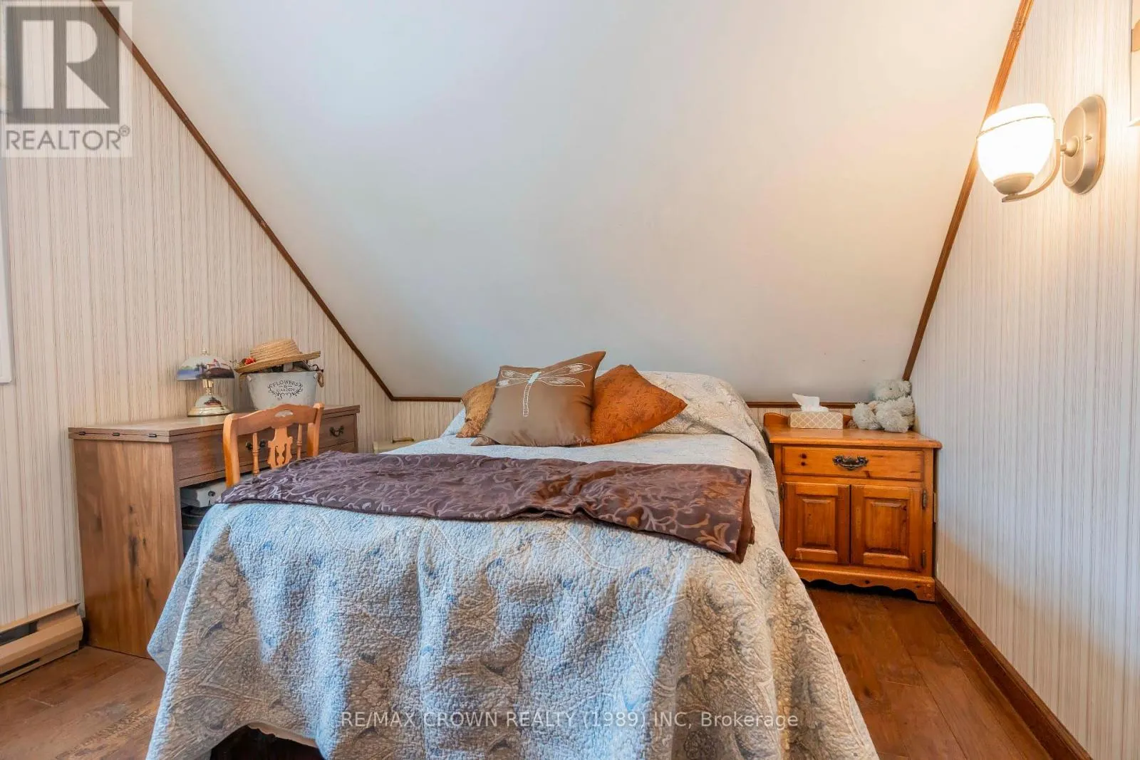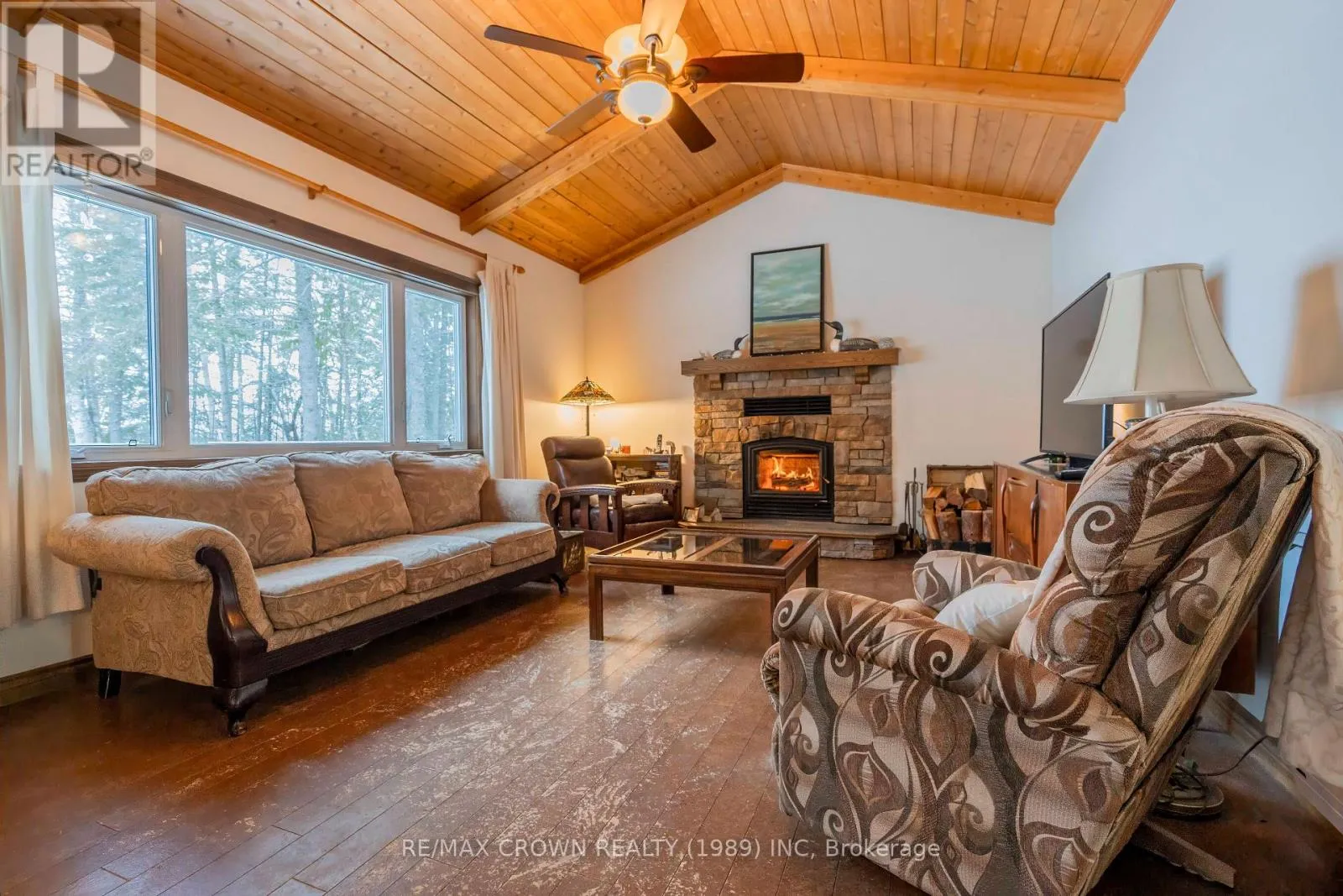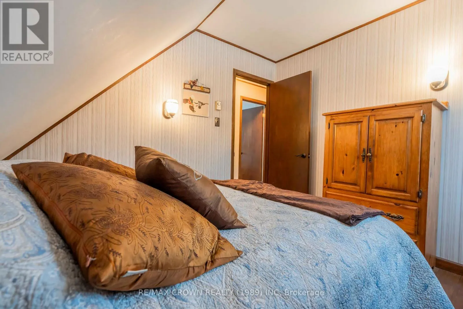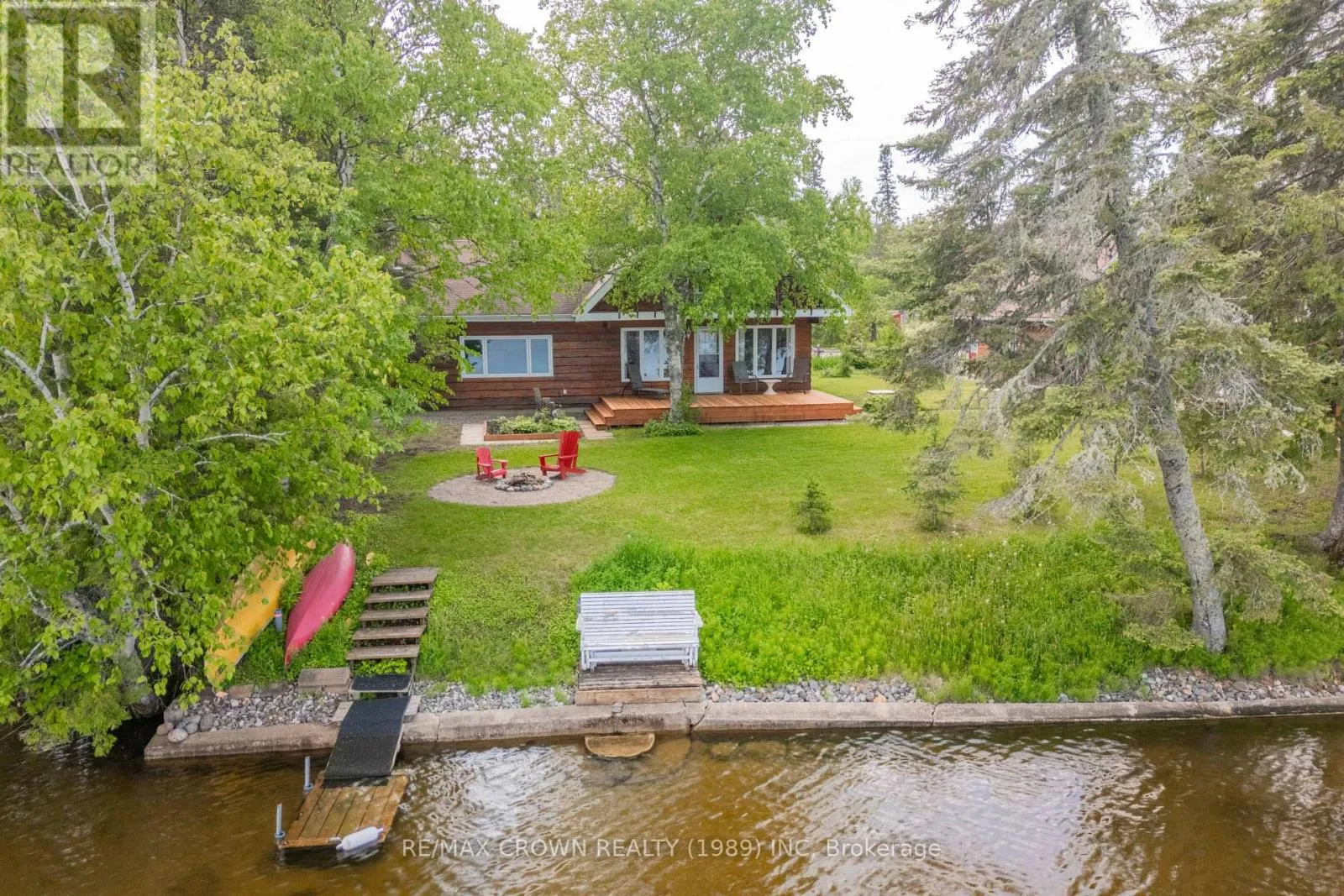Cross Streets: Ouellette Bay Road and Lefebvre Peninsula Road. ** Directions: From Ouellette Bay Road turn on Lefebvre Peninsula Road. Escape to the ultimate waterfront retreat! This stunning property combines serene lake views, ample space, and cottage life comforts to create the perfect year-round getaway. With approximately one acre split between the main waterfront lot and a second nature lovers' paradise across the road, this property is a dream come true. Start your mornings with a coffee on the patio deck or balcony while soaking in the breathtaking lake views. Step into the welcoming foyer and into the showstopping great room, where a cathedral ceiling and a stone-finish wood-burning fireplace create a cozy ambiance for winter evenings. Have a good night's sleep in the adjacent bedroom with crown moulding. French pocket doors lead to the kitchen, which features oak cabinets and plenty of space to prepare your favourite meals. The main floor also boasts a 4-piece bathroom with a jetted tub and a laundry/utility room. The second level includes three additional bedrooms, with the north bedroom having a private balcony and a stunning view of the lake. This exterior is just as impressive, with all buildings having cedar wood siding, complemented by interlocking brick for the double-wide driveway. The insulated 16x20 garage has electric heat and an overhead door at the front and back of the garage. For guests, there's a bunkie cottage, insulated with electric heat, but it has only been utilized seasonally. Retreat to the lakeside sauna for a tranquil experience. Across the road, the second lot is a nature enthusiast's haven. Surrounded by lush mature trees, it features trails, a gazebo, and a tempo tarp shed. Whether you're into gardening, exploring, or simply enjoying the tranquillity of the outdoors, this lot offers endless possibilities. Enjoy swimming and boating during the summer, or ice fishing and snowmobiling in the winter. Don't miss your chance to own this waterfront sanctuary, where every element has been designed for relaxation, convenience, and unparalleled enjoyment! (id:27476)