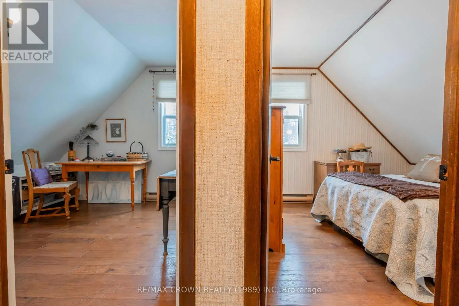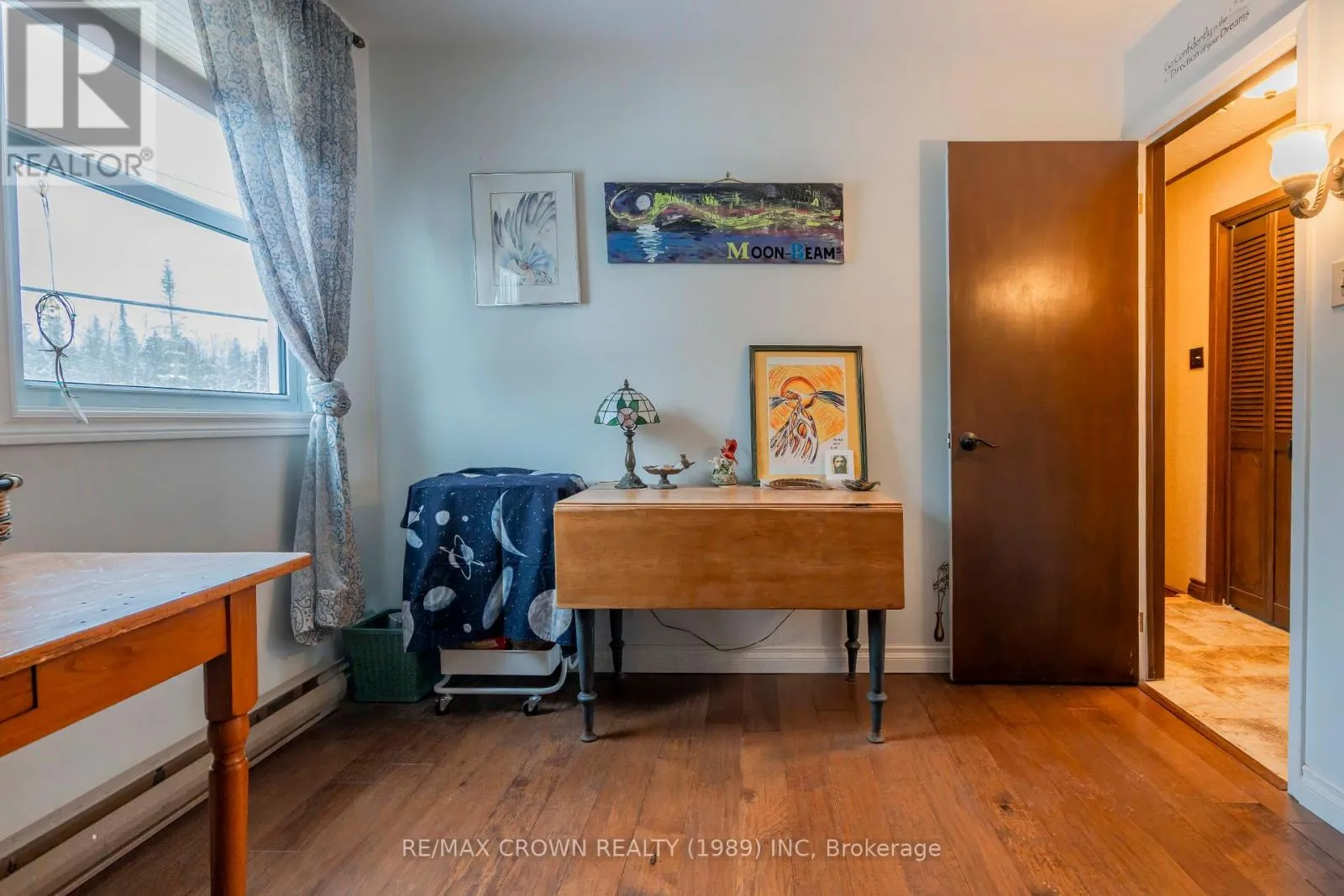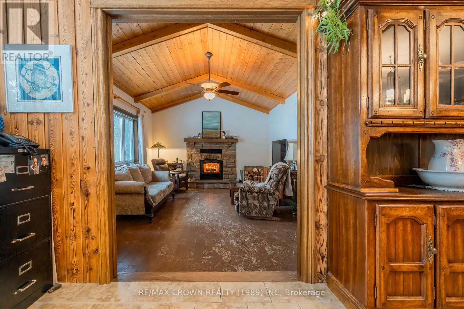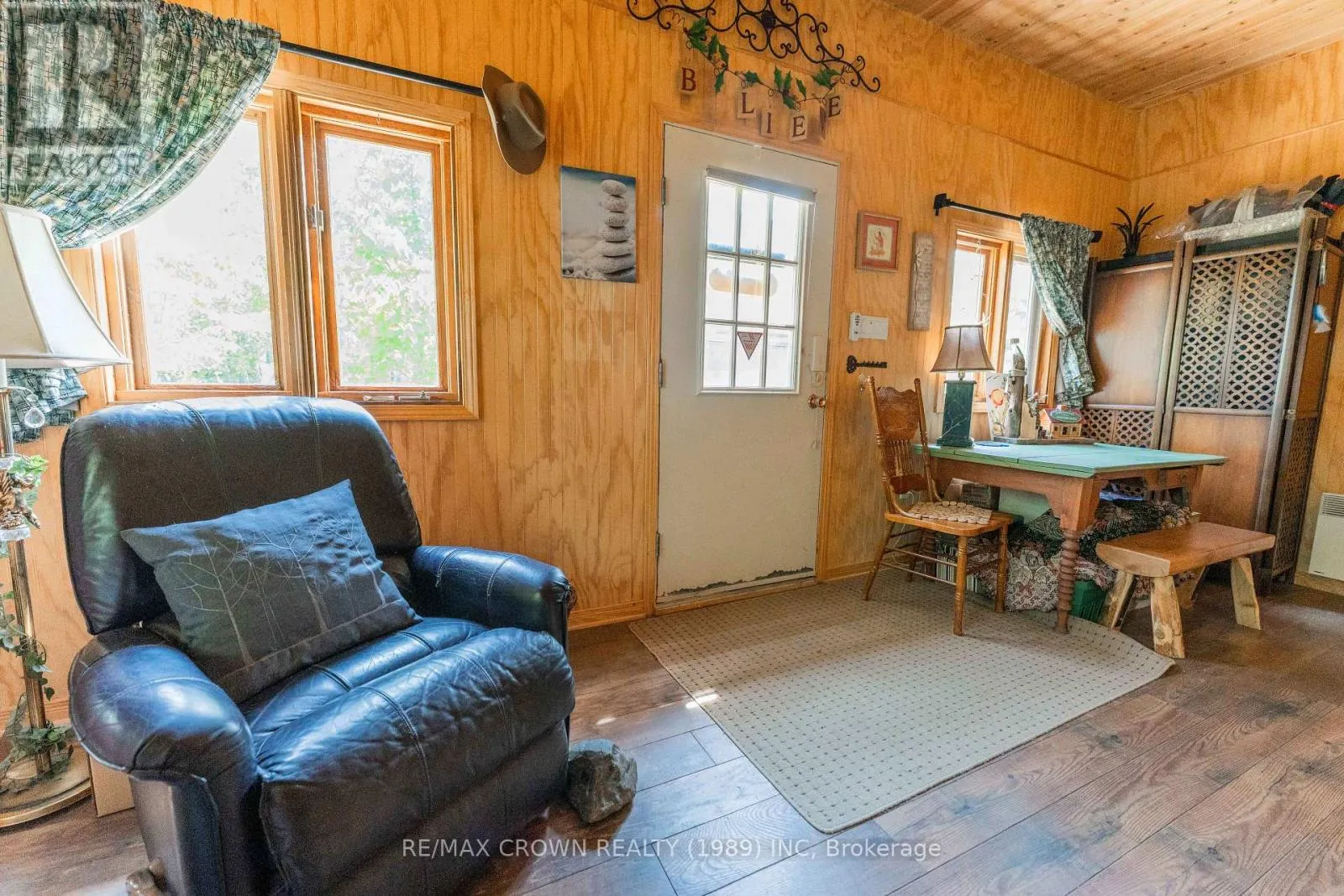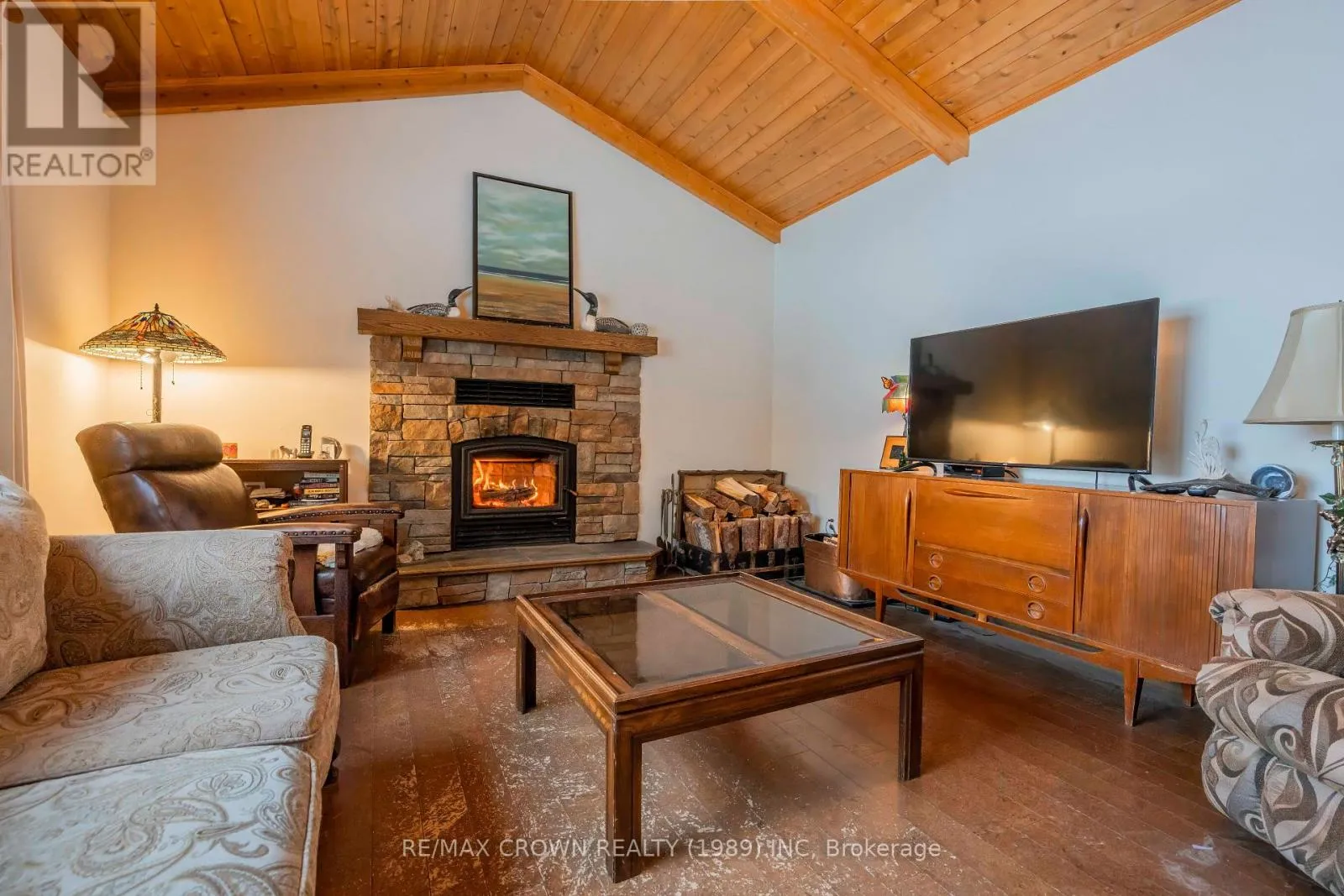 Cross Streets: Ouellette Bay Road and Lefebvre Peninsula Road. ** Directions: From Ouellette Bay Road turn on Lefebvre Peninsula Road. Escape to the ultimate waterfront retreat! This stunning property combines serene lake views, ample space, and cottage life comforts to create the perfect year-round getaway. With approximately one acre split between the main waterfront lot and a second nature lovers' paradise across the road, this property is a dream come true. Start your mornings with a coffee on the patio deck or balcony while soaking in the breathtaking lake views. Step into the welcoming foyer and into the showstopping great room, where a cathedral ceiling and a stone-finish wood-burning fireplace create a cozy ambiance for winter evenings. Have a good night's sleep in the adjacent bedroom with crown moulding. French pocket doors lead to the kitchen, which features oak cabinets and plenty of space to prepare your favourite meals. The main floor also boasts a 4-piece bathroom with a jetted tub and a laundry/utility room. The second level includes three additional bedrooms, with the north bedroom having a private balcony and a stunning view of the lake. This exterior is just as impressive, with all buildings having cedar wood siding, complemented by interlocking brick for the double-wide driveway. The insulated 16x20 garage has electric heat and an overhead door at the front and back of the garage. For guests, there's a bunkie cottage, insulated with electric heat, but it has only been utilized seasonally. Retreat to the lakeside sauna for a tranquil experience. Across the road, the second lot is a nature enthusiast's haven. Surrounded by lush mature trees, it features trails, a gazebo, and a tempo tarp shed. Whether you're into gardening, exploring, or simply enjoying the tranquillity of the outdoors, this lot offers endless possibilities. Enjoy swimming and boating during the summer, or ice fishing and snowmobiling in the winter. Don't miss your chance to own this waterfront sanctuary, where every element has been designed for relaxation, convenience, and unparalleled enjoyment! (id:27476)