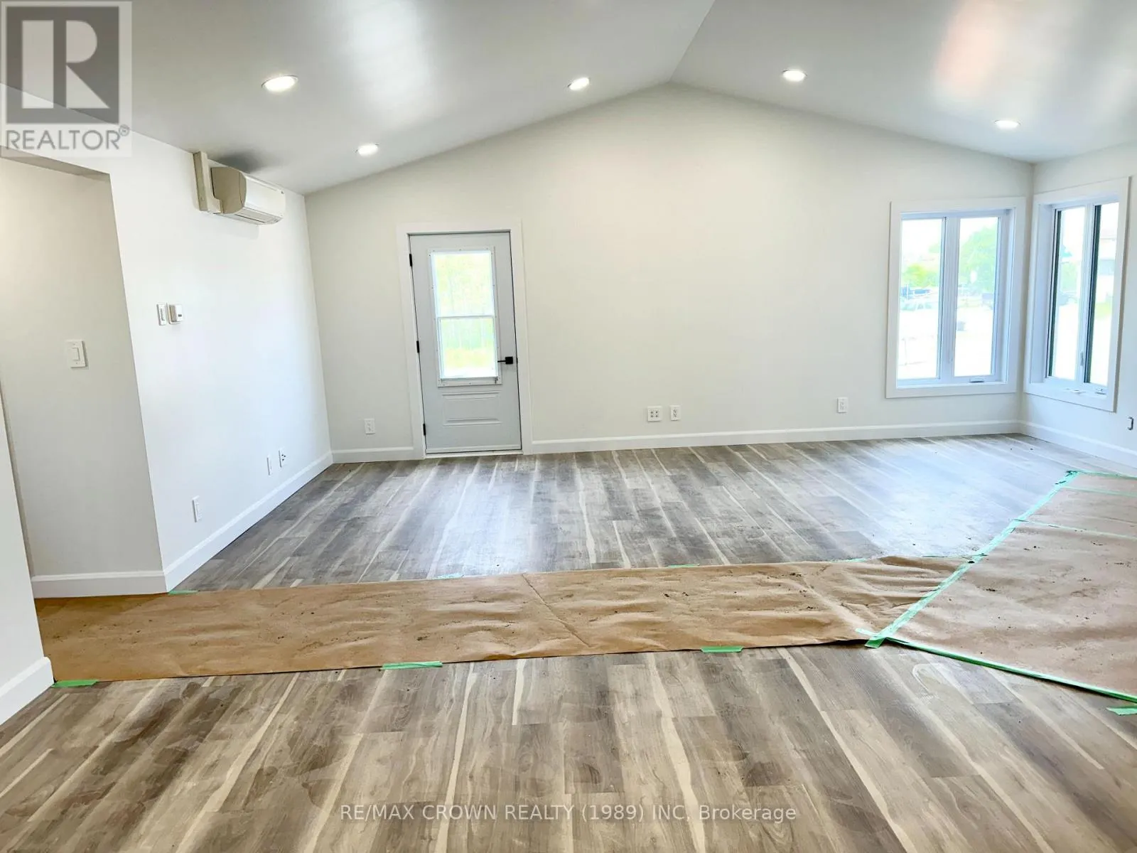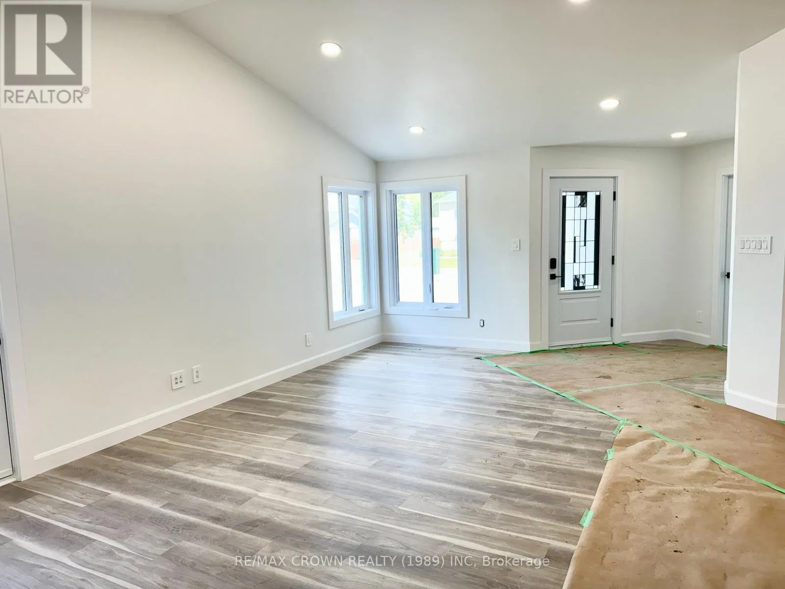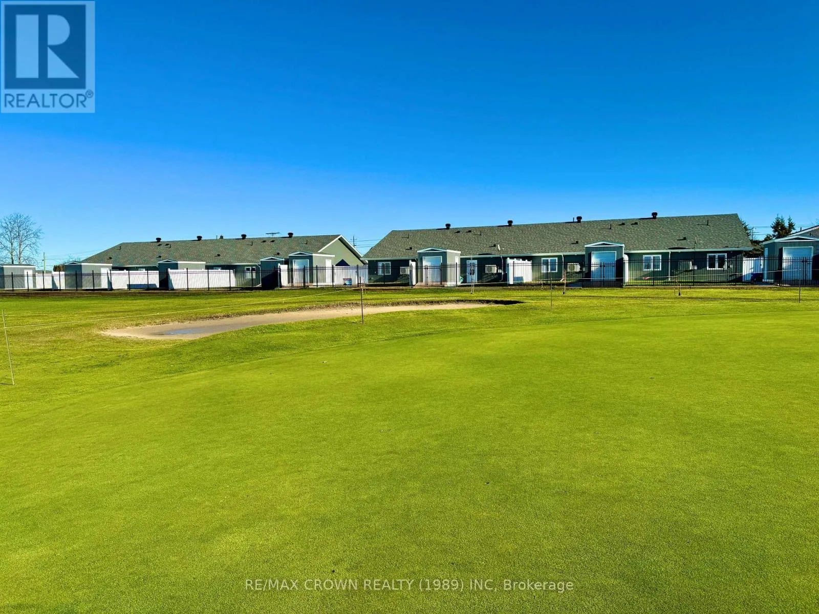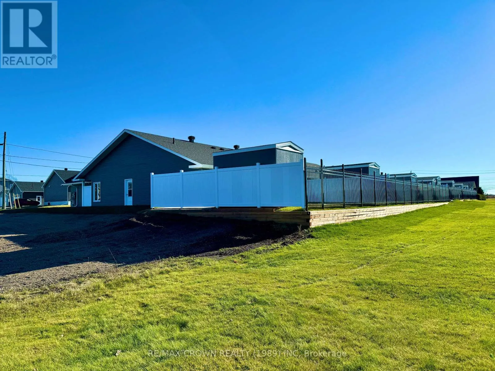 Cross Streets: Highway 11 and Golf Street. ** Directions: From Highway 11 turn on Golf Street. Discover Your Dream Home on the Kapuskasing Golf Course! Welcome to your new home, nestled beside the serene 8th hole of the Kapuskasing Golf Course. This newly built residence, backed by a warranty, is perfect for those who wish to enjoy their summers right on the green. As you arrive, you'll be greeted by a beautifully paved stone driveway leading to the entrance. Step inside to an open concept living space adorned with pot lights, creating a bright and airy ambiance. Both bedrooms are located at the back of the home, offering tranquil views of the golf course. The master bedroom features air conditioning and a walk-in closet, while the second bedroom includes a convenient closet with access to the laundry area and the home's air exchanger. The living room is equipped with air conditioning and ready hookups for internet, cable, and telephone. From the main entrance, you have direct access to your attached garage, which houses a 100-amp electrical breaker panel, a 2-in-1 boiler providing in-floor heating for both the home and garage, and a mud sink. The exterior of the home is finished with CanExel siding and stone, complemented by pot lights in all soffits for excellent nighttime illumination. Home boasts a private backyard with an 8x12 shed, perfect for parking your golf cart, ready to drive directly onto the course. The back of the home also features a natural gas hookup for your BBQ. These single-level homes are wheelchair accessible and designed for low maintenance, ensuring that this is the last move you'll ever need to make. Embrace a lifestyle of comfort and convenience at Kapuskasing Golf Course. (id:27476)