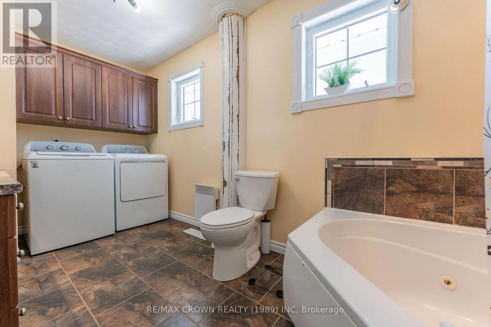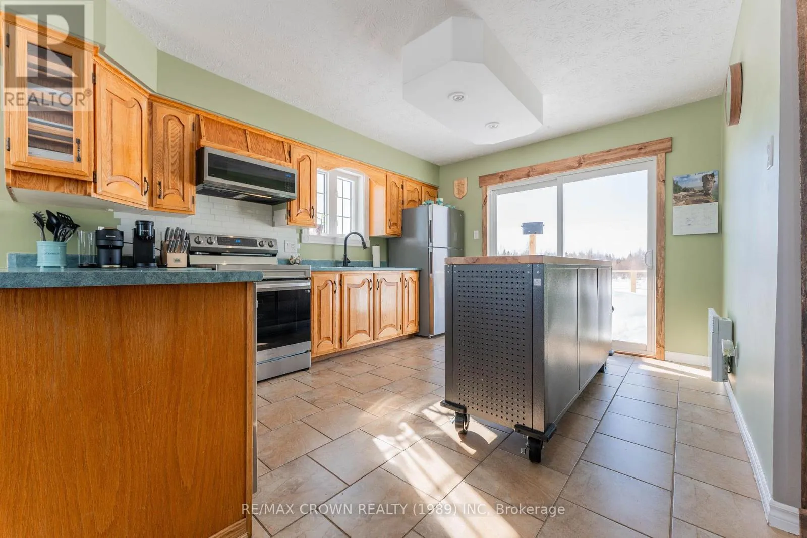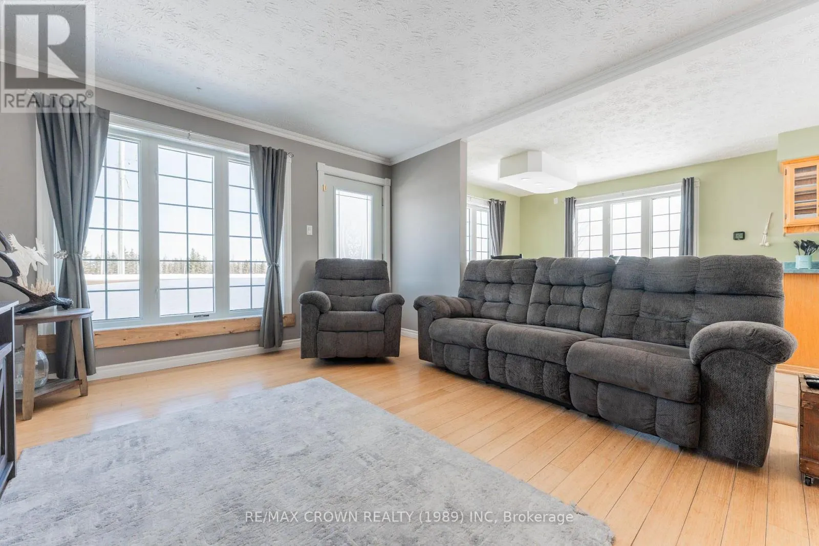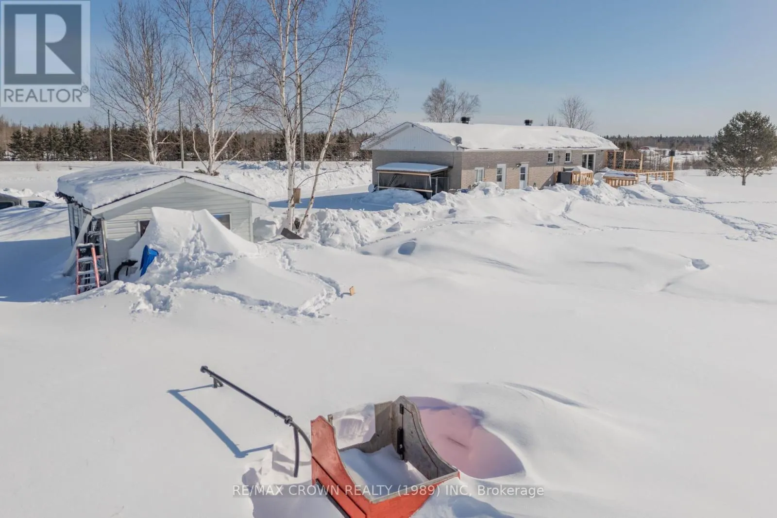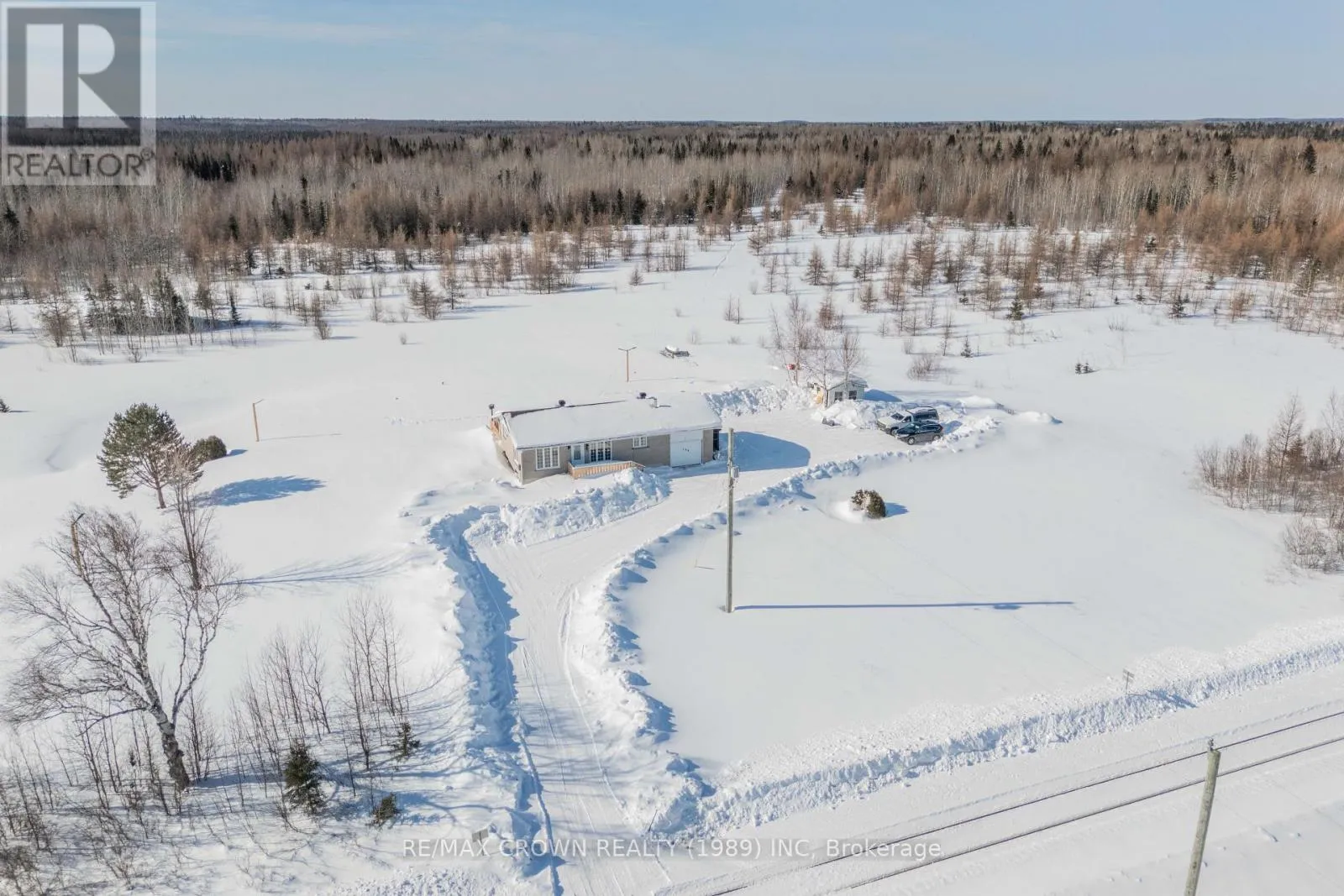 Highway 11 Discover this charming 3-bedroom brick bungalow with an attached insulated garage (13' W x 25'4" L x 10'10" H interior measurements) set on a beautiful 86-acre property along the south side of Highway 11 just East of the village of Fauquier with rural zoning allowing so many different types of projects, offering plenty of space, privacy, and room to enjoy the outdoors. The main floor features a practical and comfortable open layout with a kitchen combined with the dining area and living room, a 4-piece bathroom with laundry and jetted bath with shower, a massive primary bedroom, and a welcoming foyer at the back that connects to your attached garage. Most of the main floor is finished with hardwood flooring, adding warmth and character throughout the space. All major kitchen and laundry appliances are included and have been recently purchased. The finished basement adds valuable additional space with a spacious rec room, 2 bedrooms, and a 3-piece bathroom with a shower, making it ideal for family living, guests, or flexible use depending on your needs. Outside, you'll find front and back decks, a gazebo, and the expansive 86-acre lot, giving you plenty of outdoor space to make your own. Recent 2025 updates include new front and back decks, roof, basement toilet and pump, renovated well system and updated water system, a new garage overhead door, and weeping tiles with membrane installed from the back of the garage to the start of the front deck on the east side. The water heater was manufactured in July 2018. Home is heated with electric convection heaters and has 200-amp electrical breaker panel service. The home has a septic tank system with a septic bed. Home is 999 sq ft. A great opportunity for buyers looking for a well-maintained home with space inside and out. (id:27476)
