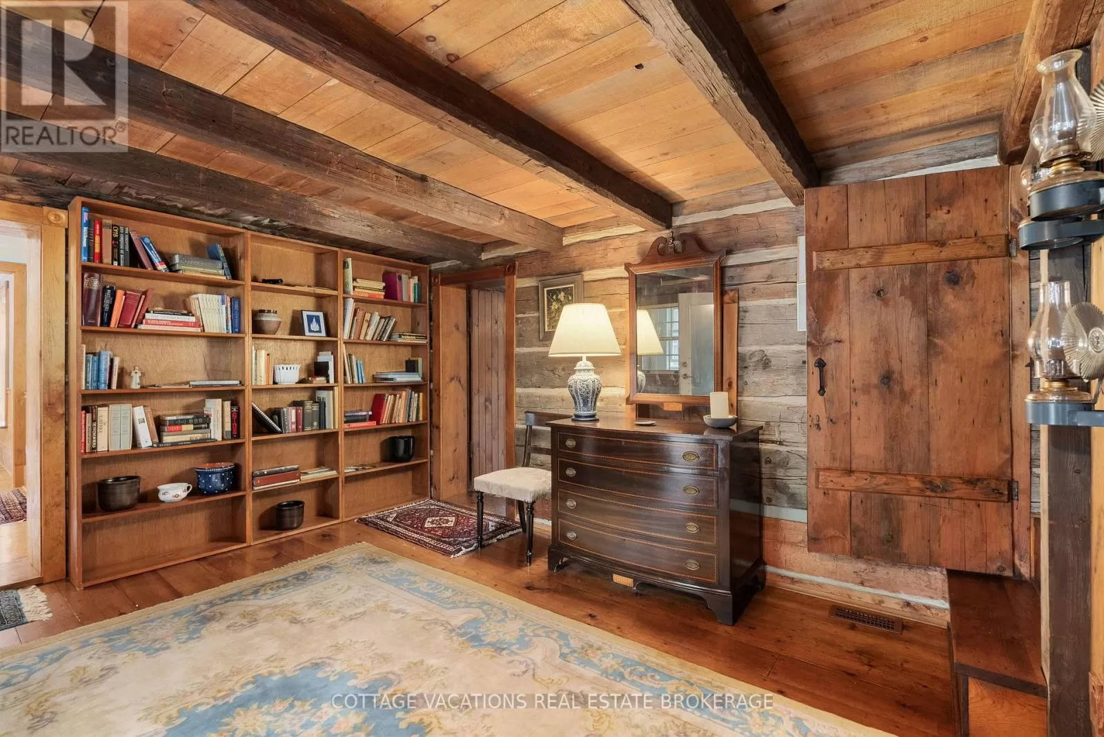 County Road 121/County Road 49 Imagine living on 225+ acres of private country land, nestled among the trees, with a babbling spring fed stream feeding into your very own pond. This unique, special property is all that and so much more. Custom built over the span of 30+ years, this log home is a spacious 3200+/-sq ft, has 4 bedrooms and 3 baths, multiple living rooms and a nicely sized kitchen (21' x15') with large island and all built-in appliances overlooking the beautiful inground pool and pool spa. Natural Pine floors throughout with separate dining room, office and sunroom. The attached double garage also has entrance to crawlspace lower level. On the vast property are hiking trails, a guest cabin, 740+ sq ft workshop and 2100+ sq ft storage barn. Truly a nature lover and handyman's dream! Just a short 10 minute drive to local amenities in Fenlon Falls, this Home In The Country has so much to offer and so much space to grow! (id:27476)