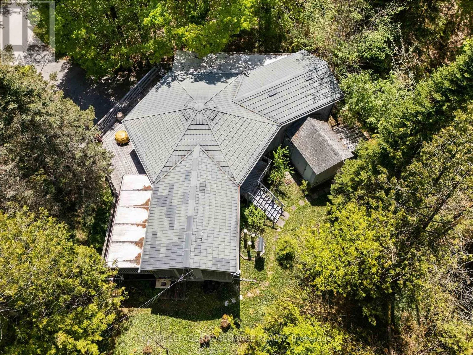 Cross Streets: Shadow Lake Rd #3 & High Point Road. ** Directions: Shadow Lake Rd # 3/Hwy 35. If you're looking for a unique 4-season custom home in a wonderful waterfront community, look no further! This is your opportunity to enjoy the perks of waterfront living without the expense and maintenance that comes with it! Adjacent to Shadow Lake, this 1200 sq/ft raised bungalow is just a 10min walk to the public beach, boat launch, and the quaint Hamlet of Norland. Proudly built and designed by the current owners, this home exudes craftsmanship. From the hardwood parquet flooring to the tongue and groove ceilings, meticulous care went into building their forever home. Purposeful in its design, the living space is an open concept hexagon, with vaulted ceilings, a thoughtful kitchen, and multiple walkouts to the wraparound verandah. The primary suite features a walk-in closet, 3-piece bath and walkout to its own large sunroom. The second bedroom includes a murphy bed, built-in shelving and desk, and is located across the hall from a 3-piece bath. Enjoy the convenience of main floor laundry and an additional newly built oversized sunroom. The lower level walkout is beautifully set up for in-law living or a home based business. Currently used for creative endeavors, this open concept space features built-in shelving, dry bar area, and office. A completely separate workshop completes this level. Outside, the grounds are magical - walking paths, archways, tranquil sitting areas and miniature sculptures hidden amongst the trees. This is more than just a property - it's a sanctuary, where life slows down and memories are made. Welcome home! (id:27476)