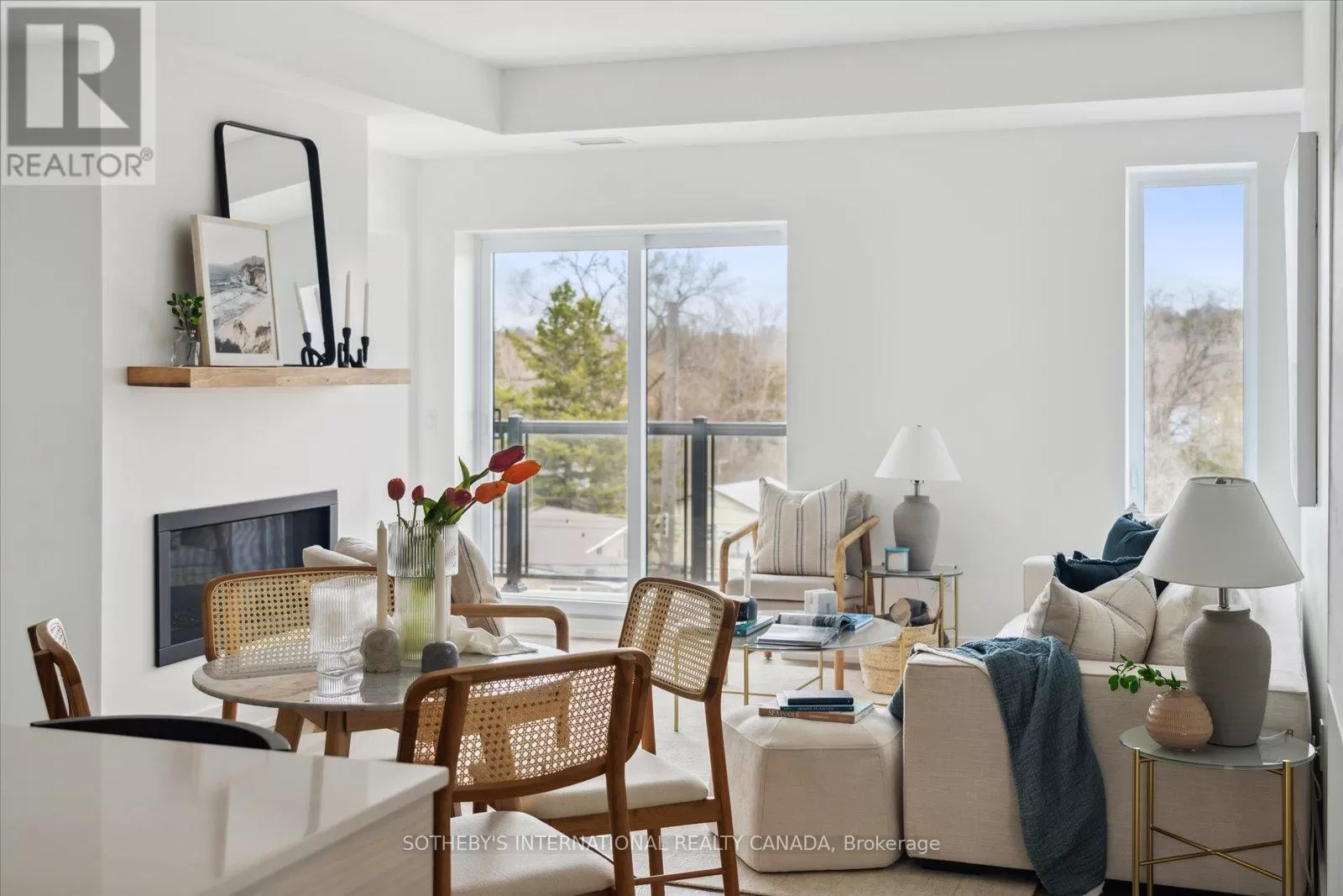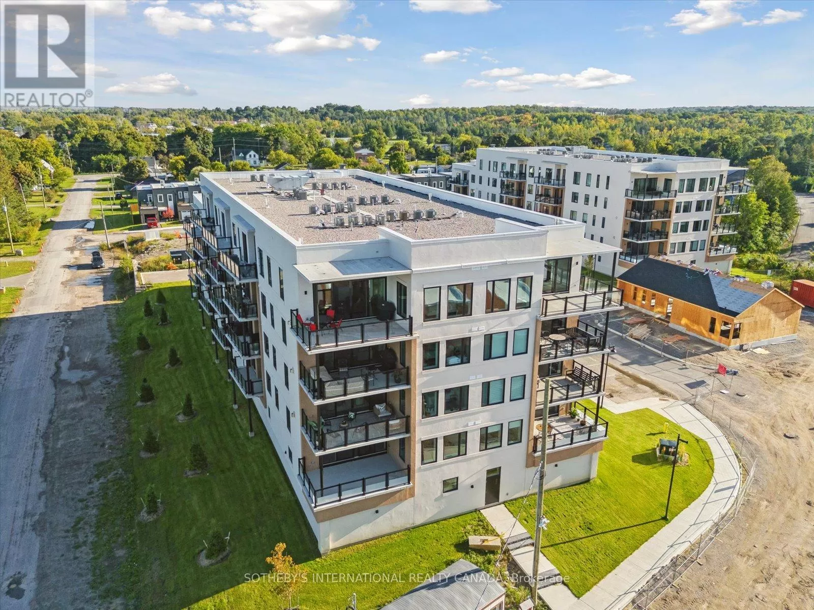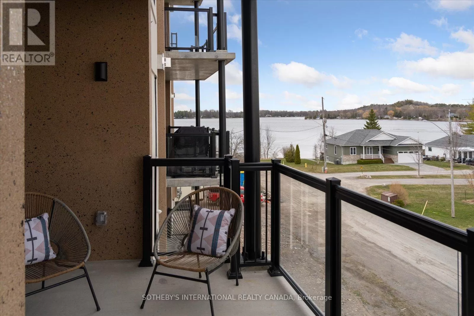 Cross Streets: West St N & Kawartha County Rd 8. ** Directions: Helen Street to West St. North. THIS IS SUITE 404- A fantastic 2 bedroom, 2 bathroom floor plan. Well laid out 1004 square feet. Walk out to your 156 square foot terrace from the living room and primary bedroom. The terrace comfortable fits a table and chairs and chaise. Enjoy BBQing year round on your own terrace complete with gas bbq hook up. This is a rare and amazing feature in condo living. Incredible north east water view of Cameron Lake. Watch the boats float by into the Fenelon Falls Lock 35 Walk to the vibrant town of Fenelon Falls for unique shopping, dining health and wellness experiences. Incredible amenities in summer 2025 include a heated in-ground pool, fire pit, chaise lounges and pergola to get out of the sun. A large club house lounge with fireplace, kitchen & gym . Tennis & pickleball court later '25 & exclusive lakeside dock '26. Swim, take in the sunsets, SUP, kayak or boat the incredible waters of Cameron Lake. Pet friendly development with a dog complete with dog washing station. Suite consists of a beautiful primary walk in closets and spacious ensuite with glass shower and double sinks . A 2nd bedroom mindfully planned on the opposite side has its own full bath. In between the open concept kitchen, dining, living room with cozy natural gas fireplace. This price includes brand new appliances and Tarion warranty. Exclusive Builder Mortgage Rate Available. 1.99% for a 2 year mortgage with RBC *Must apply and qualify. Beautiful finishes throughout the units and common spaces. Wonderful services/amenities at your door, 20 minutes to Lindsay amenities and hospital and less than 20 minutes to Bobcaygeon.The ideal location for TURN KEY recreational use as a cottage or to live and thrive full time. Less than 90 minutes to the GTA . Act now before it is too late to take advantage of the last few remaining builder suites. Snow removal, window cleaning, landscaping and maintenance of common spaces makes this an amazing maintenance free lifestyle. (id:27476)