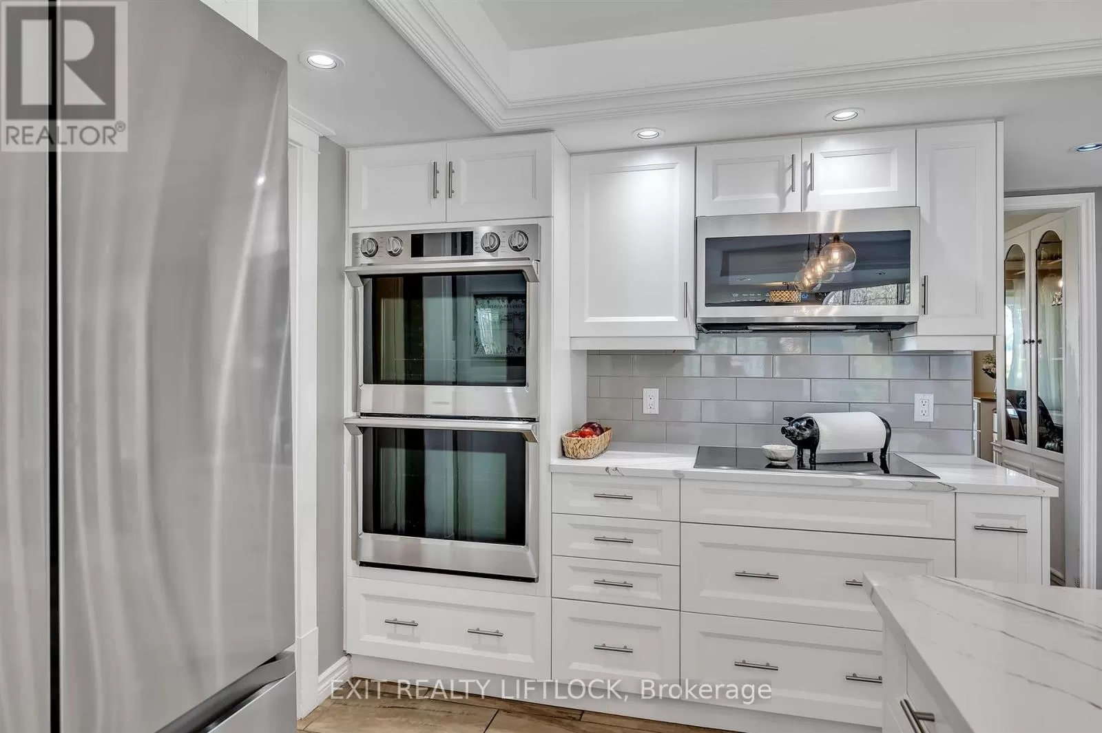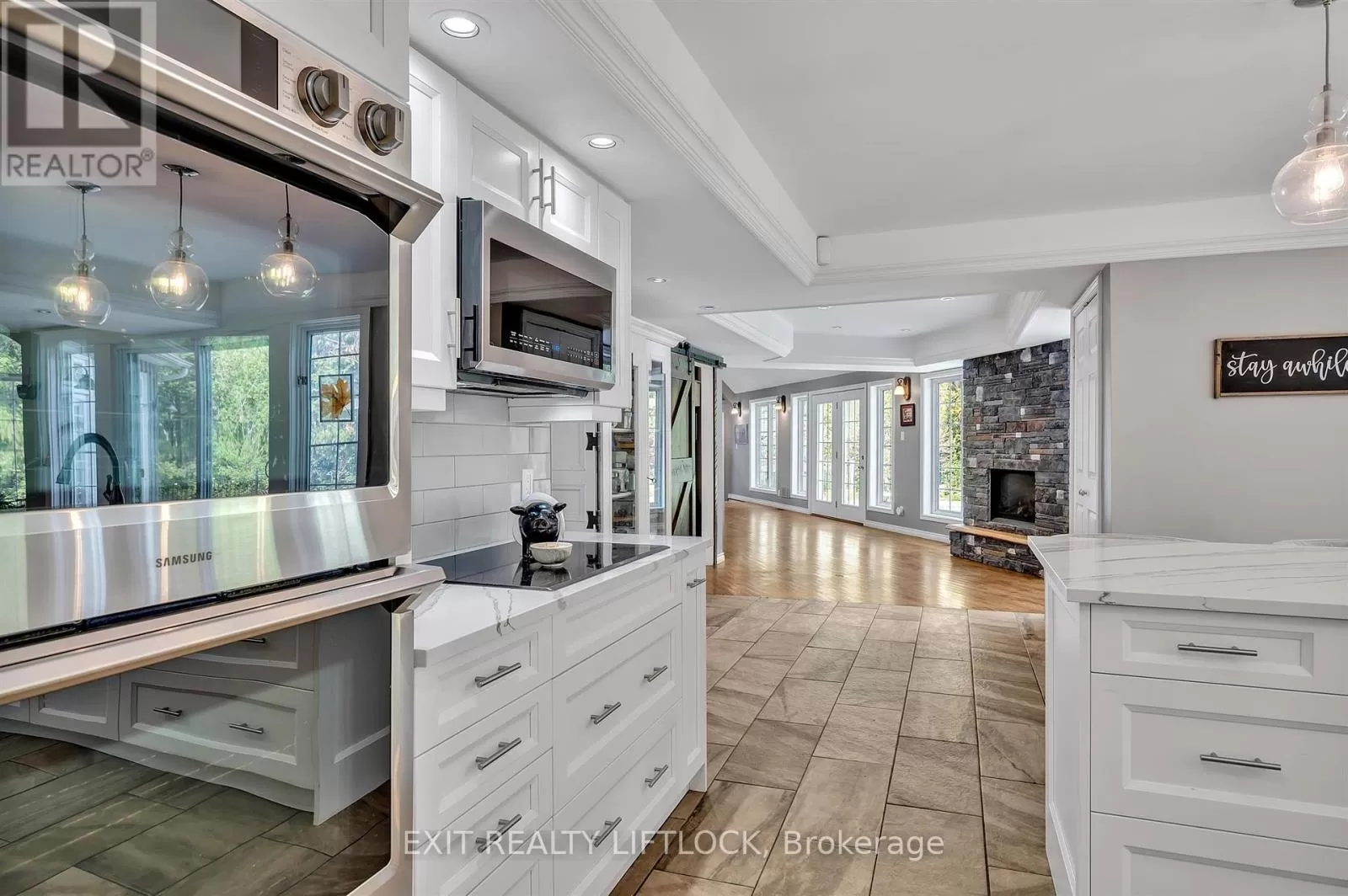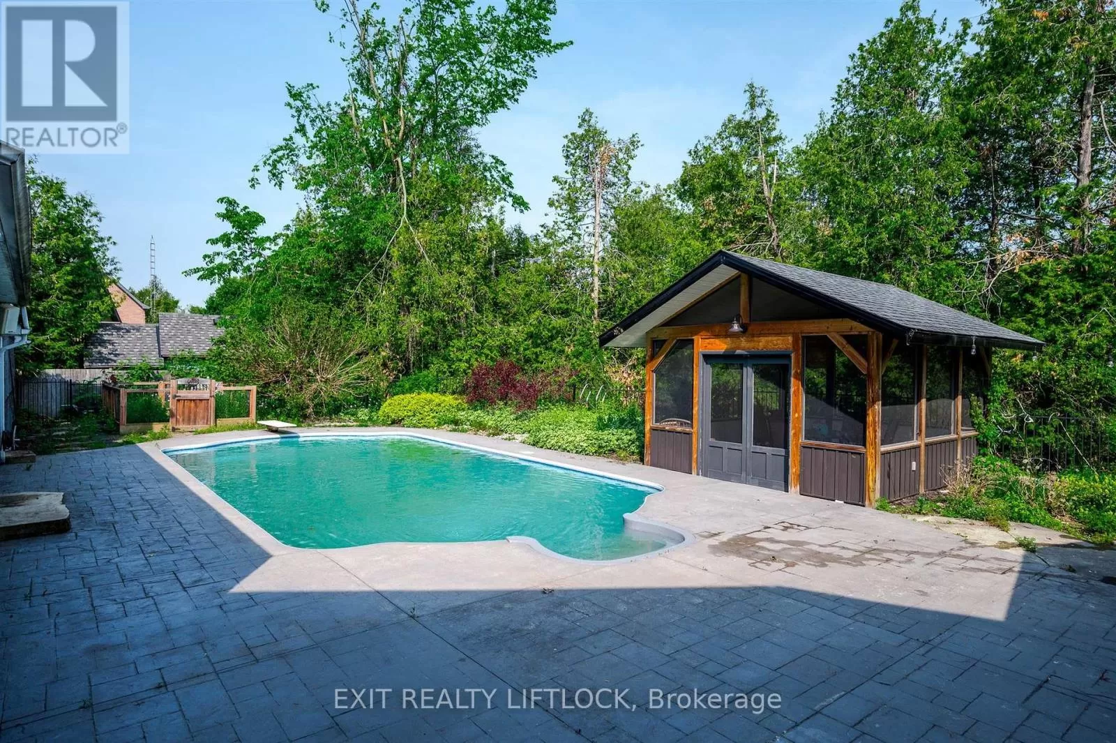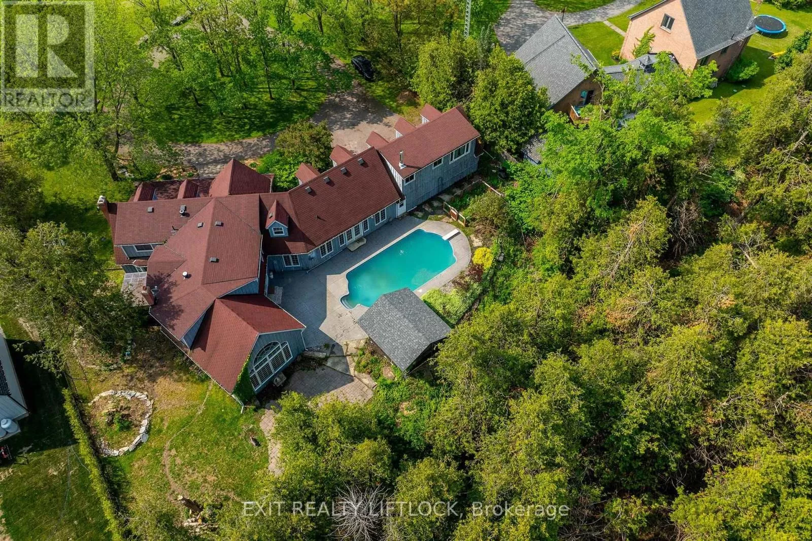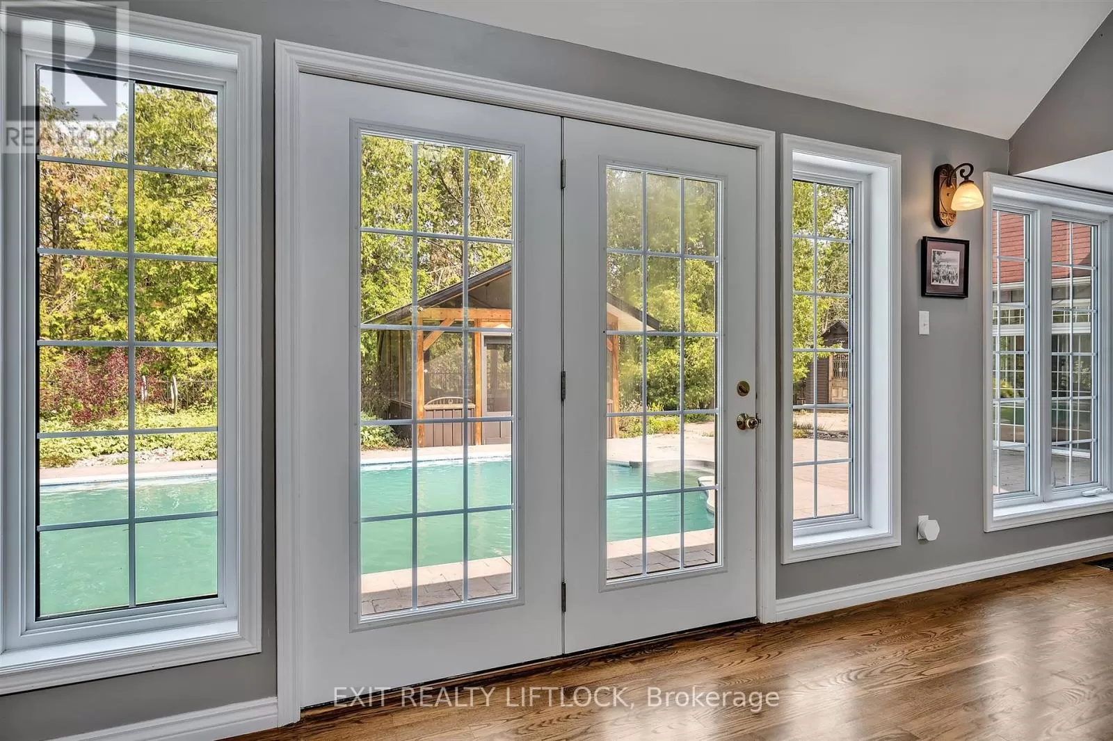 Highway 35 N and Kenrei Rd This home has many appealing features, such as an entertainers kitchen with island that overlooks the living room with a bank of windows, a family room with vaulted ceilings and could easily fit a pool table, large primary bedroom with a Juliet balcony. There are walkouts to the patio and pool area and a bonus screened in gazebo. The outside of the home has a fenced in front and back yards just in case you want to give your dogs a choice. The property is just under 4 acres with walking trails and is next to Crown land. Also a bonus detached 2 car garage/workshop. You have great privacy, but can get to town in minutes. Pre inspection available. (id:27476)