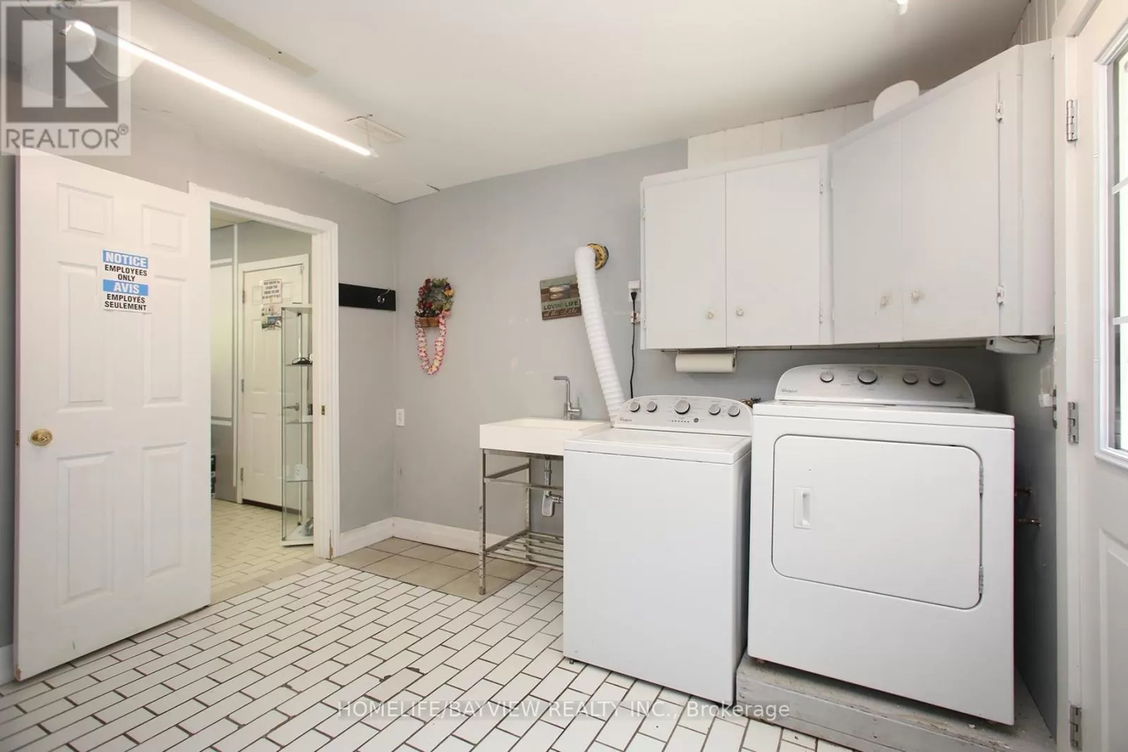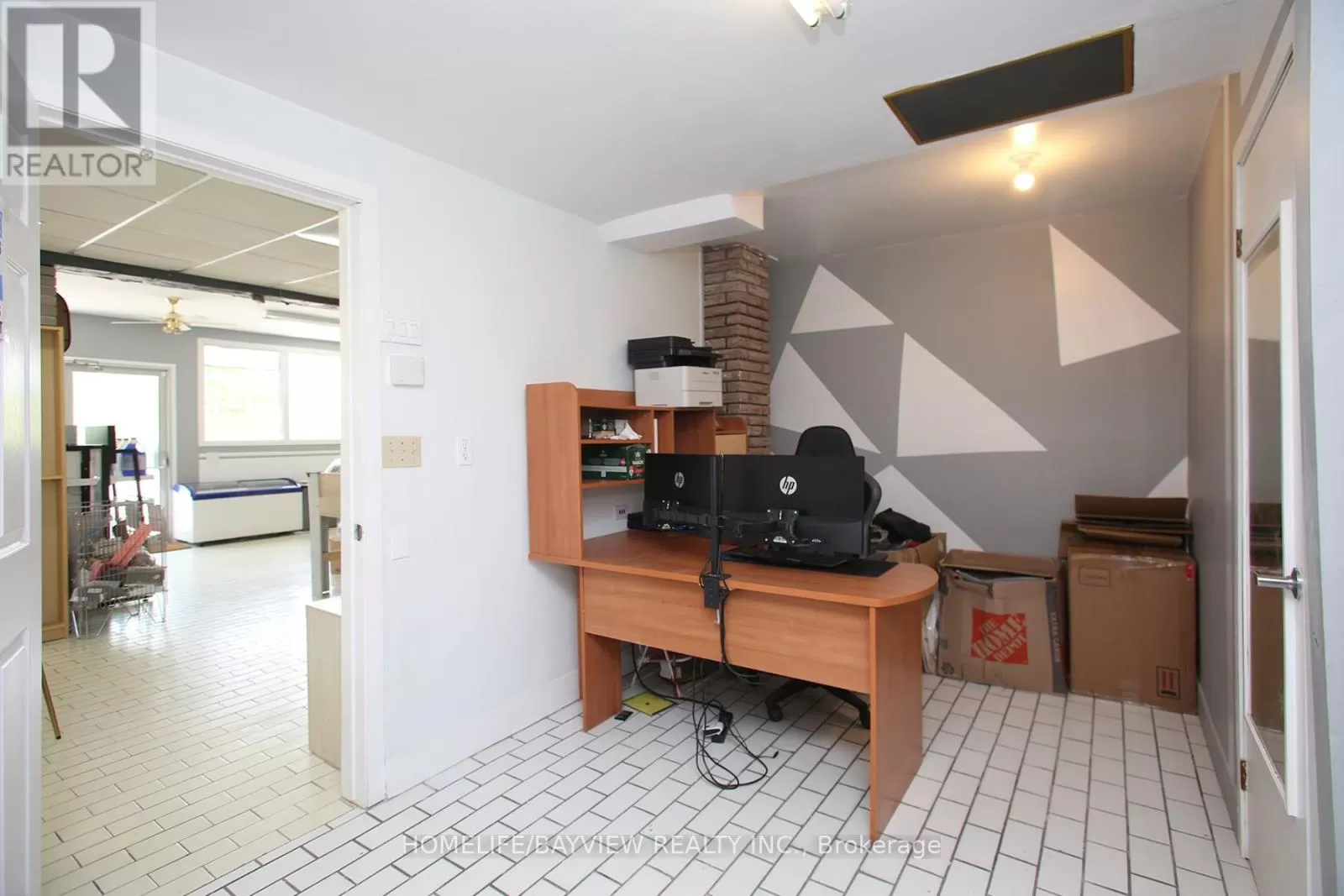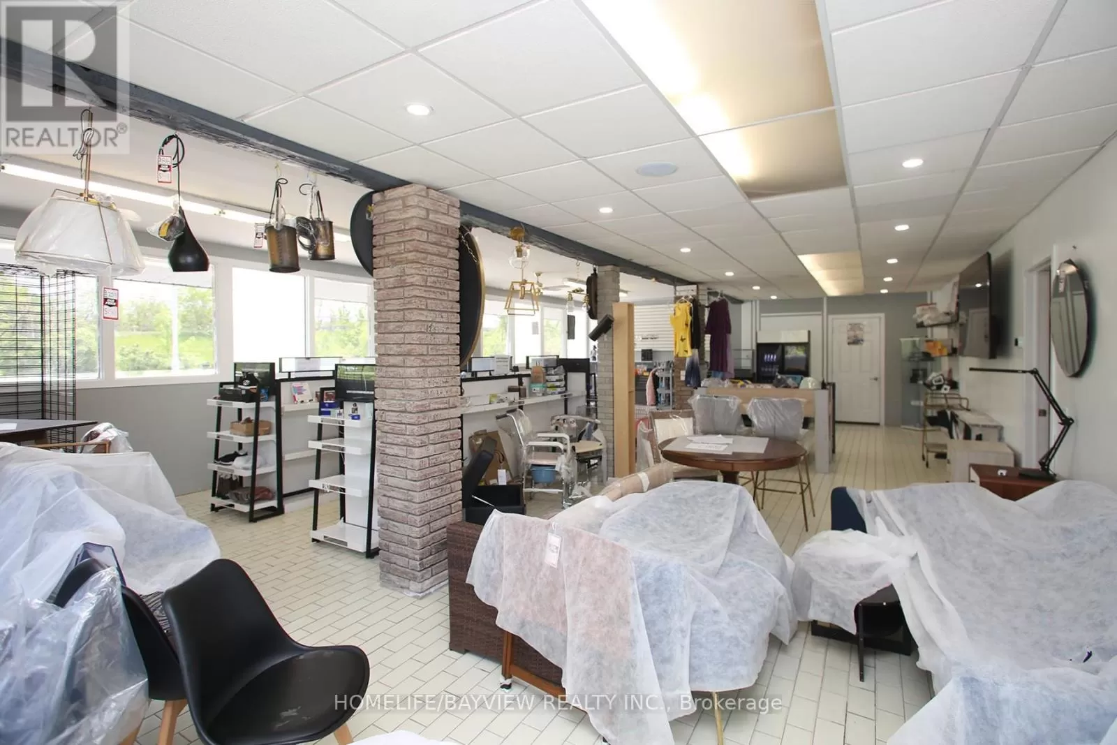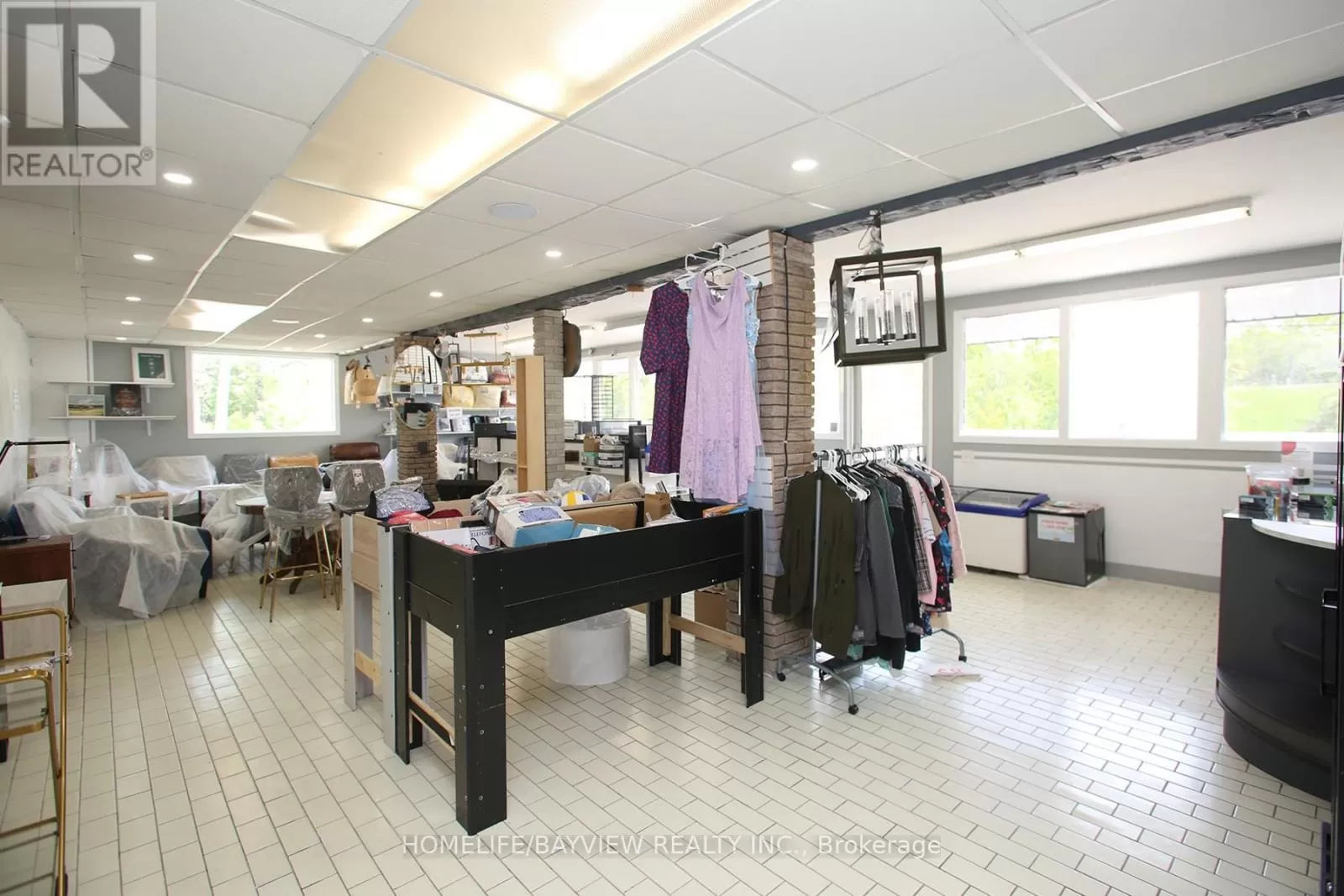 Cross Streets: Hwy 35/Bridge. ** Directions: Hwy 35 to Bridge St. Prime location: steps from Balsam Lake next to resorts & homes facing busy Hwy 35. Includes prime retail storefront location with 2 car garage, plus 3 bedroom fully-furnished renovated apartment with full bath. Excellent corner lot with lots of potential. Well water with iron remover, water softener, & water filtration unit. Holding tank for sewage. Public beach & boat launch is just up the road. Ideal for fishing shop, bait & tackle, cafe, general store, antiques, air bnb, etc. Recent updates include dual fuel system (heat pump (2022) + propane furnace, fully renovated store with pot lights, LED lights, wall lights, built-in ceiling speakers with bluetooth controls, kitchen water filtration system. Don't miss this amazing turn-key opportunity. Outdoor parking for 6 or more cars. Oversized attached 2 car garage. Zoning is C1 commercial-residential with many permitted uses. (id:27476)