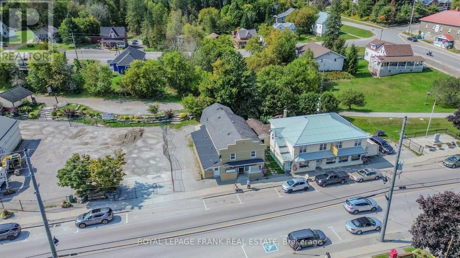 COUNTY ROAD 121/503 Current Fire Inspection complete everything is compliant. LIVE IN ONE UNIT, and let the Tenants pay your Mortgage. Investment opportunity in the Heart of Kinmount. This building has been well maintained and cared for. Offering 2 Commerical opportunites on the main floor, with long term Tenant in place in the one unit. The main floor also offers a well appointed studio apartment occupied by Tenant. The upper building has a 2 Bedroom apartment, occupied with long term Tenant, and a one bedroom apartment ready for occupancy. These units are a great source of income with the mix of Commercial and Residential uses. Kinmount thrives both Winter and Summer, being on the Rail trail for the adventure snow machines and atv's, and summer attracts a huge support from the Cottage Community. The holding tank is located for easy access and a pump out is approx.$360.00. Updated electrical includes 2-200 amp panels for the building. NOI approx. $55,000per year. (id:27476)