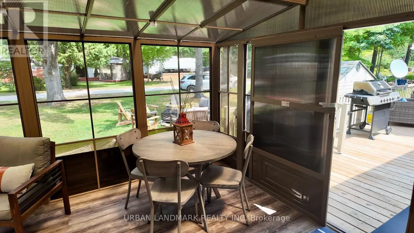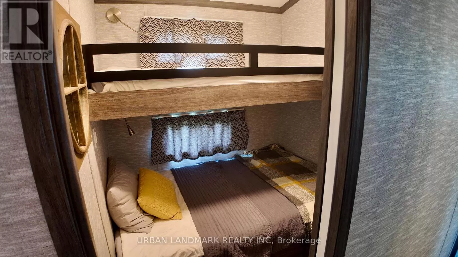 Cross Streets: Victoria Rd/Black Bear Rd. ** Directions: Duck Lake Resort. Welcome to your perfect getaway! Built in July 2021 and purchased brand new by its original owner, this immaculate General Coach McKellar is turn-key ready and located on a large, beautifully situated lot within Duck Lake Resort. Sports courts, multiple playgrounds, large swimming pool and sandy beach area ideal for swimming. Access to paddle boards, kayaks, and a large floating water castle. Great fishing spots and weekly community events including Saturday Bingo. Seasonal highlights such as Christmas in July and Halloween trick-or-treating. Coin-operated laundry and well-maintained washroom facilities on-site. Seasonal dock rentals available for boaters. Lot Fees: $4,959 + HST annually, includes weekly septic pump-out, water, and full access to all resort amenities. Hydro: metered and payable at seasons end. Transfer Fee: $5,000 (paid by purchaser) Insurance: Liability insurance is required for the lot. Located on a spacious lot featuring shared horseshoe pits and a welcoming mini-community atmosphere. 10' x 16' all-season solarium with polycarbonate roofing and full surround screening. 41' x 10' deck with sunspace railings and an upgraded double gate. Lifeproof luxury vinyl plank flooring 100% waterproof and durable. Full-size kitchen appliances including a propane stove, vented microwave, and fridge. Bunk rooms with a double bottom bunk, single top bunk, and built-in drawers. Primary bedroom with under-bed storage, full mirrored closet, and built-in dressers. Cozy living room with propane fireplace (remote controlled) and a pull-out couch. Bathroom with full-size toilet, half tub, and shower. Heated by forced air propane furnace and air conditioned for summer comfort. (id:27476)