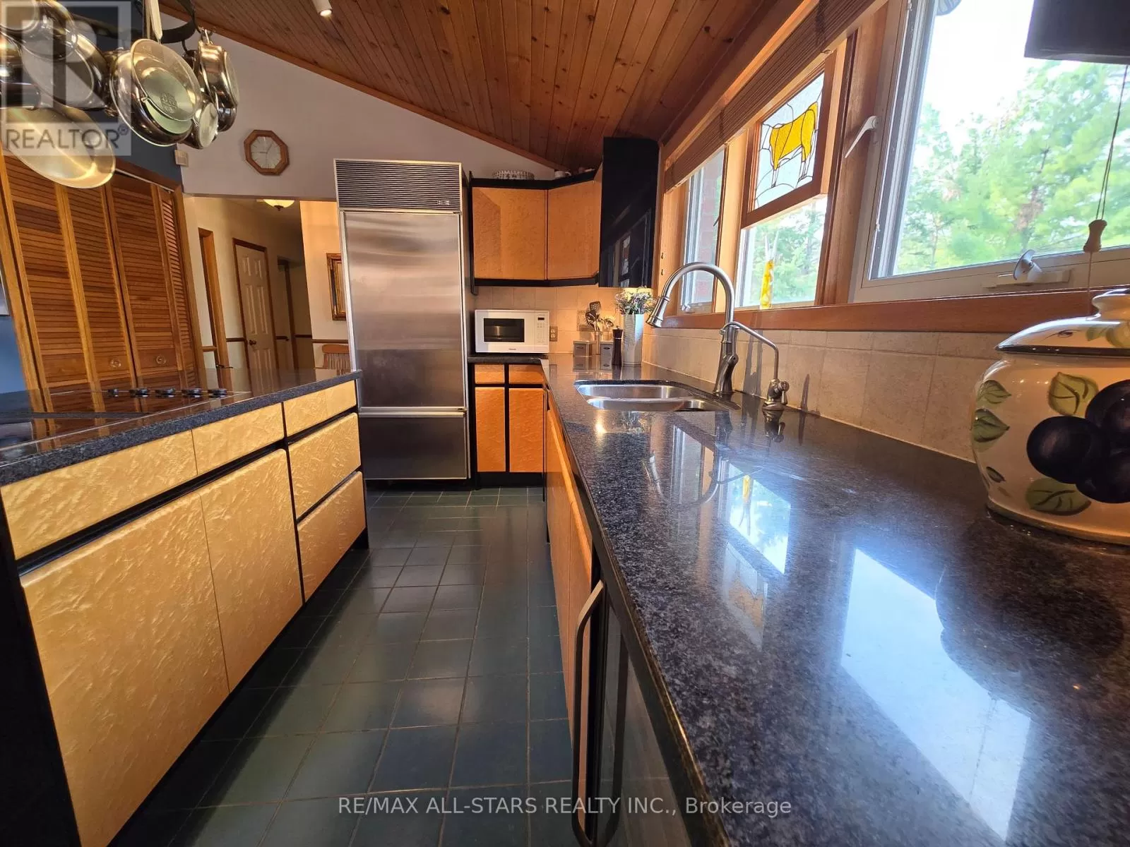 Cross Streets: West St/Wood St. ** Directions: West St S to wood St to Rabys Shore Dr. Sturgeon Lake waterfront home just minutes from Fenelon Falls. This well-maintained 4-bedroom, 2-bath bungalow offers a spacious and functional layout, featuring an updated kitchen with granite countertops, stainless steel appliances, and hardwood flooring throughout. Enjoy beautiful lake views from the large lakeside sunroom perfect for relaxing or entertaining. The property includes both an attached garage and a detached garage, a paved circular driveway, and landscaped grounds. Situated on a large, level lot with a cantilever dock, double boat slip, and direct access to the Trent-Severn Waterway. (id:27476)