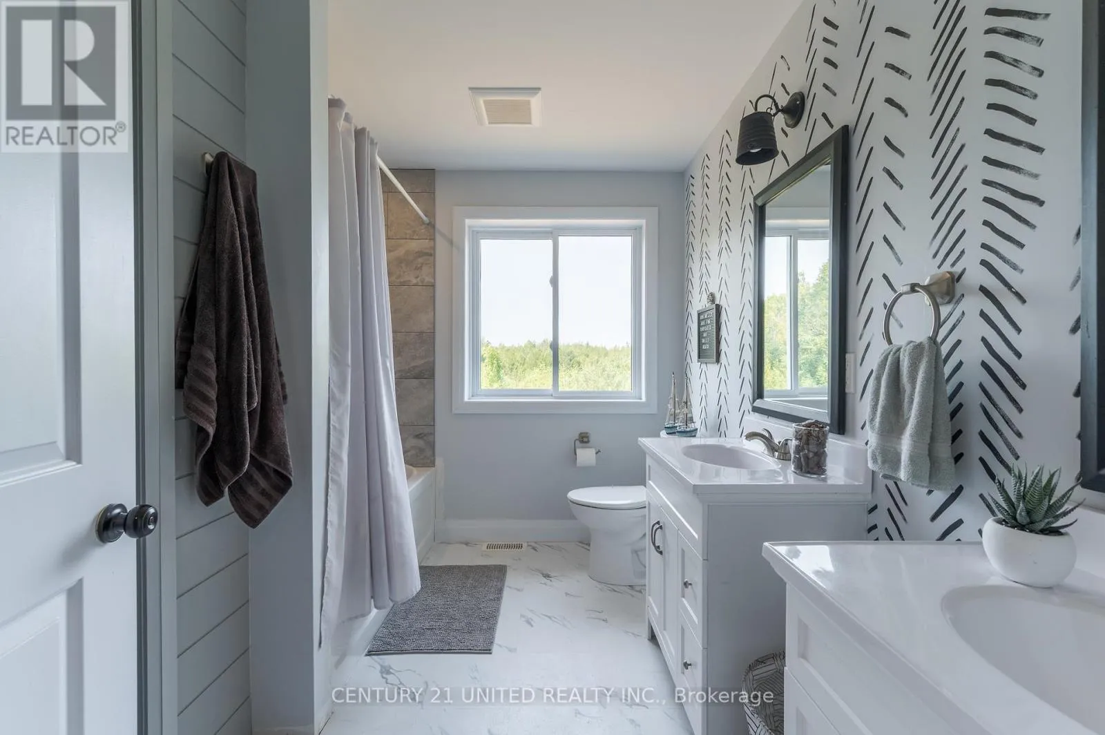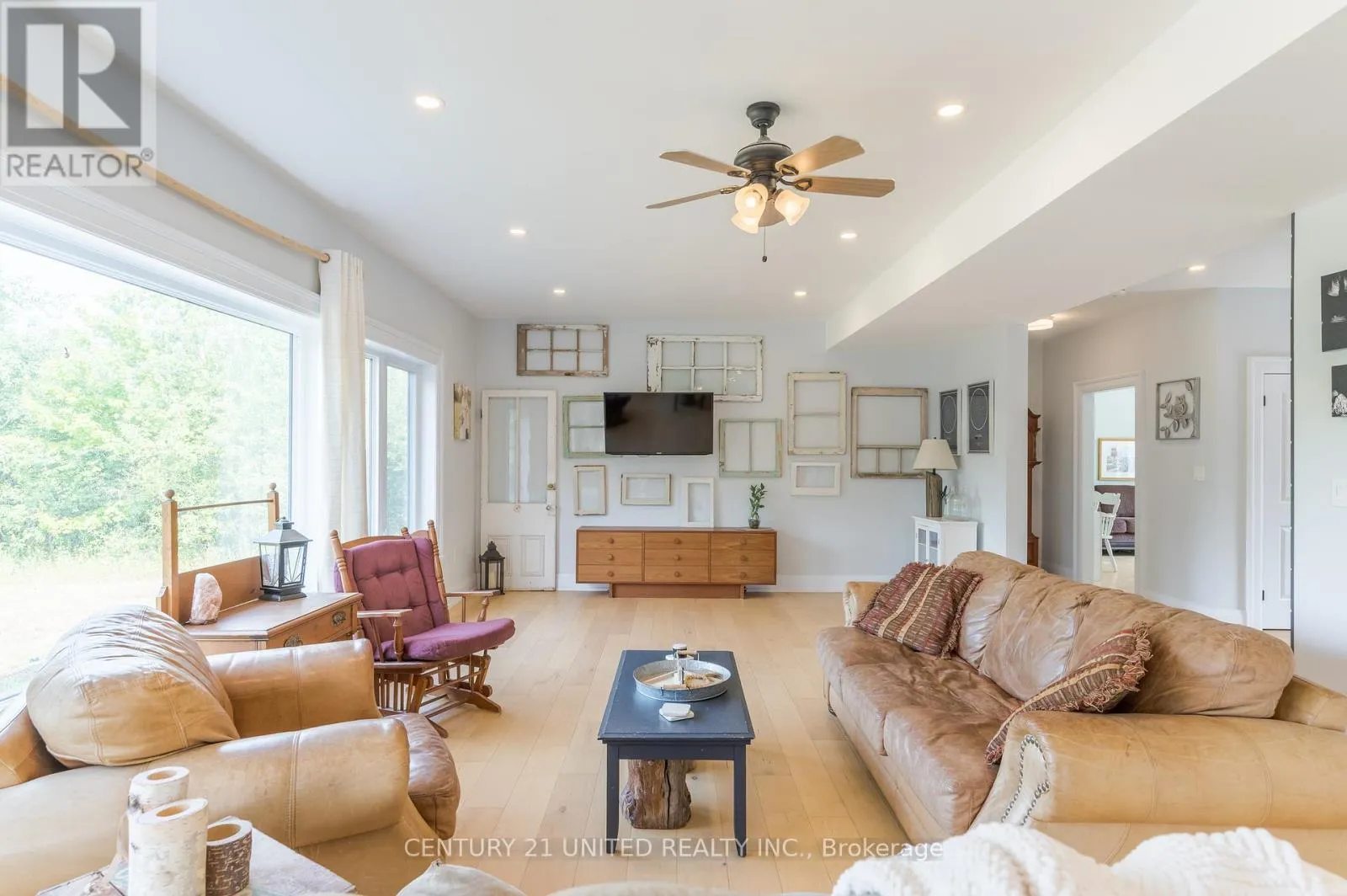 County Rd 8 Welcome to this stunning custom-built home completed in 2020 offering 4,546 sqft of finished living space on a private, level, 1-acre lot with endless potential to make it your own! You will fall in love from the moment you pull in - carefully constructed with tremendous curb appeal including wood exterior, soffit lighting, covered front porch + detailed finishes from the outside in! The expansive main floor offers over 3,000 sqft featuring maple hardwood flooring, a large foyer with staircase to 2nd level & a sprawling living /dining area with oversized windows overlooking the tree-lined backyard. This home was designed for entertaining featuring a massive kitchen, stainless steel appliances, 9 ft island with ample seating, custom, two toned, butcher block counters, convenient powder room & 2nd stairwell access to upper level. Main floor family room, den/office or 4th bed, 3-pc bath and an additional mudroom connected to the double + car garage complete the main floor. A partially developed bonus room accessible from the garage & mudroom provides endless possibilities to complete your future indoor pool room, convert into a workshop, gym or games room . Upstairs, the private primary suite includes a walk-in closet and oversized 2-pc ensuite with potential for a spa like bath. Two additional large bedrooms, a 5-pc main bath, and convenient upper-level laundry room. The unspoiled lower level offers 1,797 sqft with a walk-up to the garage perfect for future finishing or in-law potential. Soak up the sun on the east facing porch and south west facing yard! Located just minutes from Sturgeon Lake and the amenities of Fenelon Falls, this home combines modern comfort with space to grow. This is a rare opportunity to enjoy a large, well-built home with space to personalize inside and out. Don't miss your chance to create your dream retreat in the Kawarthas! (id:27476)
