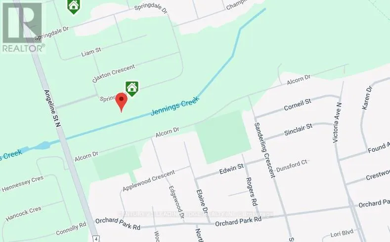 Angeline St N / Springdale Dr Welcome to this Charming Bungalow Backing onto Jennings Creek!Nestled in one of the area's most sought-after neighbourhoods, this beautifully maintained bungalow offers the perfect blend of comfort, convenience, and natural beauty.Step inside to discover a bright, open-concept layout featuring rich hardwood floors and soaring ceilings in the living and dining area. Large scenic windows and a glass sliding door flood the space with natural light and provide easy access to a private balcony overlooking the lush greenery of Jennings Creekan ideal spot for morning coffee or peaceful evening relaxation.This home offers two spacious bedrooms, a full bathroom, a convenient powder room, and main floor laundry for easy, stylish living all on one level. The thoughtfully designed kitchen combines timeless appeal with practical functionality, making everyday living and entertaining a breeze.The unfinished walk-out basement holds incredible potentialcreate your dream space or add a secondary suite for income potential.Outside, enjoy your own private backyard oasis backing onto serene creekside nature. Plus, youre just minutes from top-rated schools, shopping plazas, a short walk to the hospital, and all essential amenities.Whether you're a first-time buyer, downsizer, or someone seeking a low-maintenance lifestyle in a high-demand location, this is the one you've been waiting for. Dont miss out schedule your private viewing today! (id:27476)