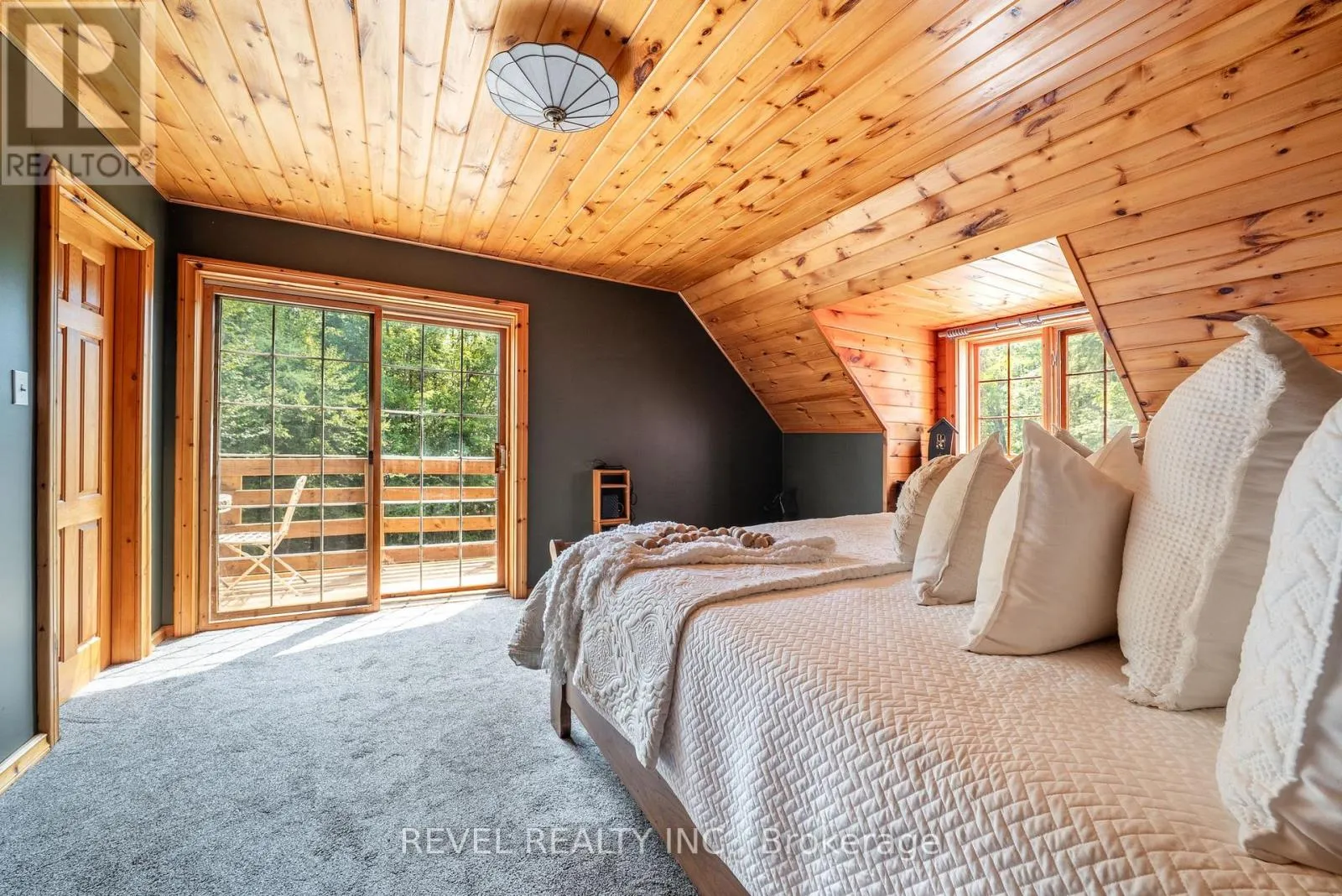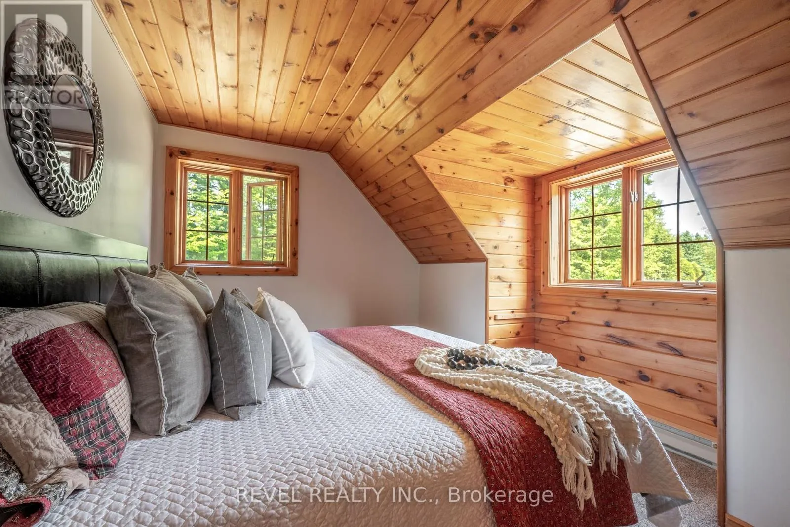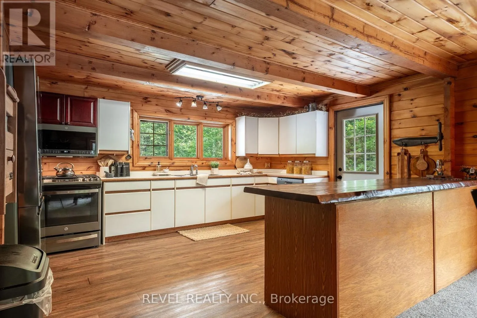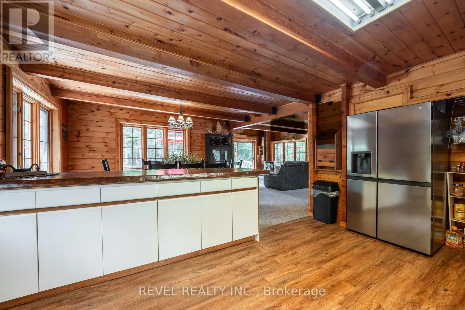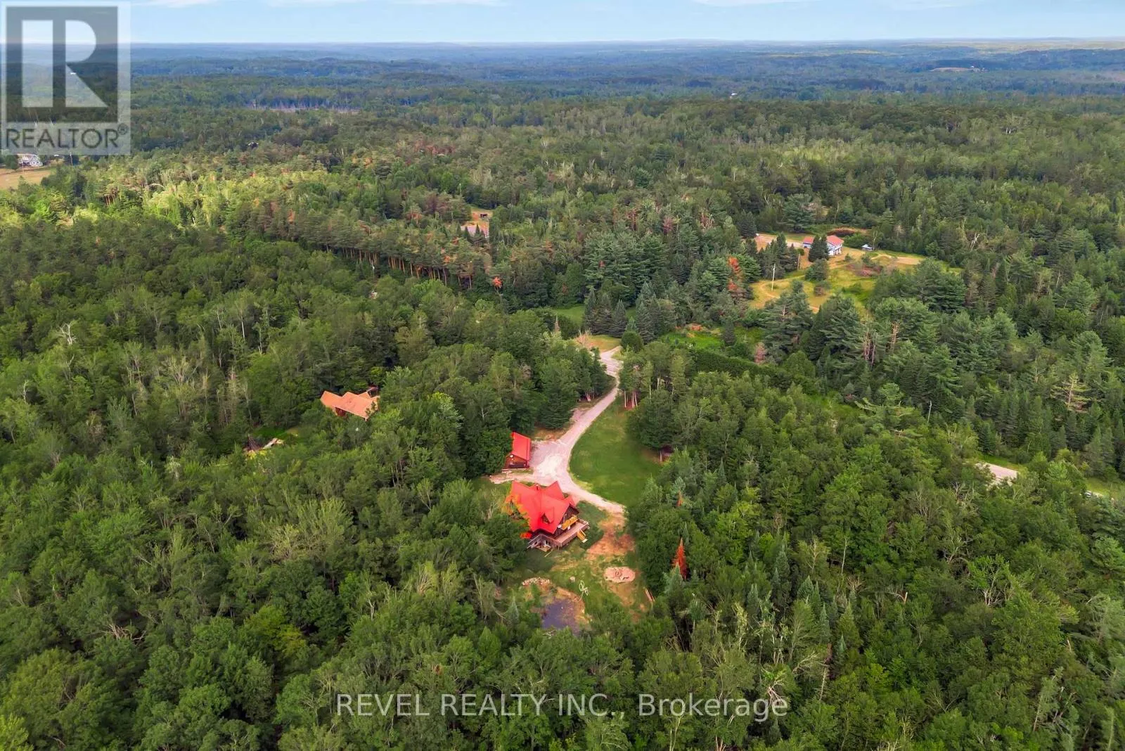 Galway/County Rd 121 Welcome to 3515 County Rd 121, this stunning 4+1 bedroom 3 bathroom log home with metal roof, offers the perfect balance of rustic charm and modern comfort. Walk in and be mesmerized by the grand foyer & living area, cathedral wood ceilings, cozy fireplace and abundant natural light from picturesque windows creating a warm and inviting atmosphere.The kitchen/dining combo is a cooking paradise, featuring newer appliances, propane stove, OTR microwave, pantry and ideal for both daily living and entertaining. Gorgeous spiral natural wood staircase leading you to the upper level of the home with additional bedrooms, full bathroom and sitting area loft. Primary Suite with walk out Juliet Deck. Lower level with full recreational room, laundry area, sauna, work out area, bathroom and walk out to yard. Perfect in law suite potential with separate entrance.Step outside to the expansive wraparound deck with breathtaking views of the pond and surrounding 1.89 acres of forest. Whether you're enjoying a quiet morning coffee watching the wildlife or hosting family and friends in the evening watching the fire flies having a bonfire, this outdoor space is sure to impress.This property has several uses, perfect as a year-round residence, seasonal retreat, multi family or income opportunity, this property offers a lifestyle of peace, beauty, and versatility. Bonus three car detached garage with hydro. Do not miss this opportunity to make this your next home. (id:27476)