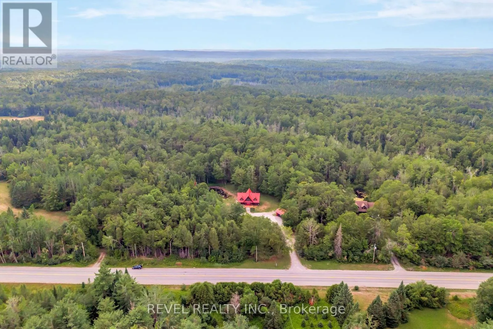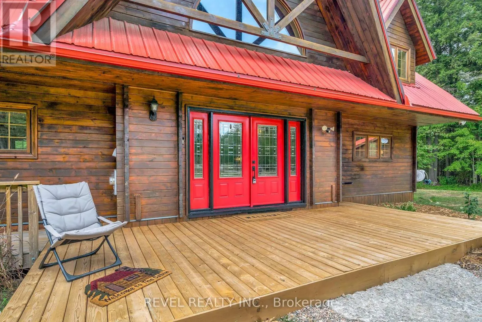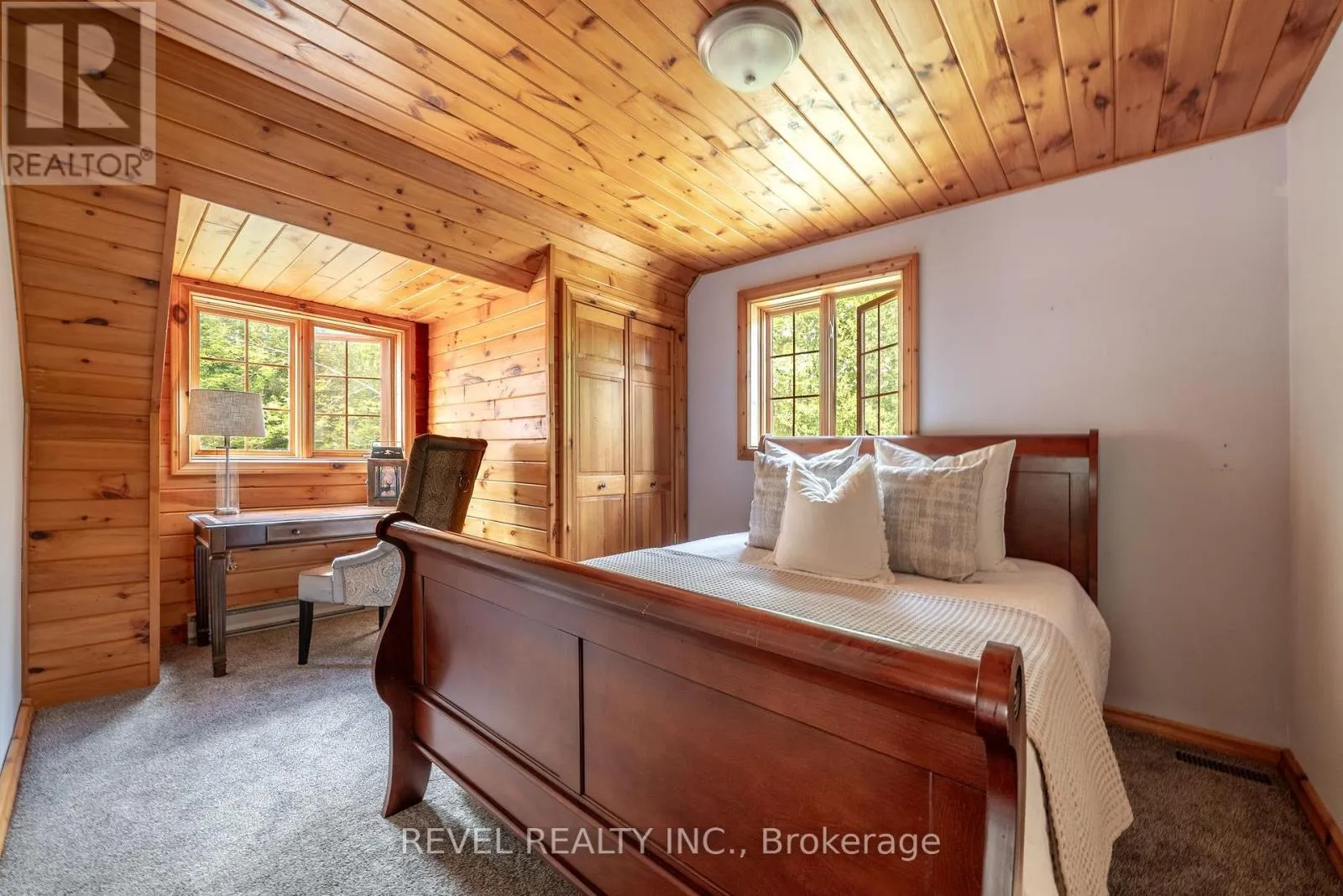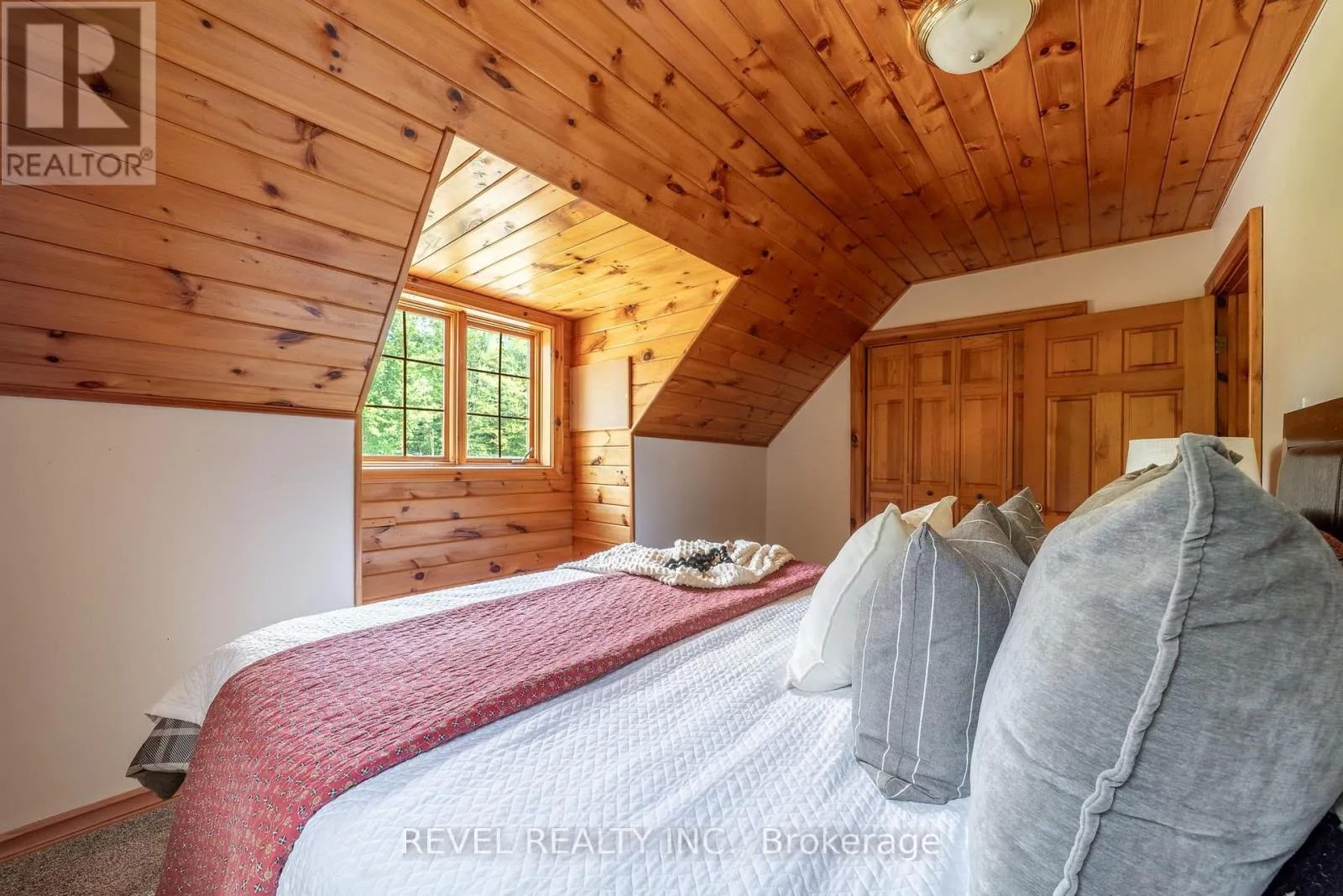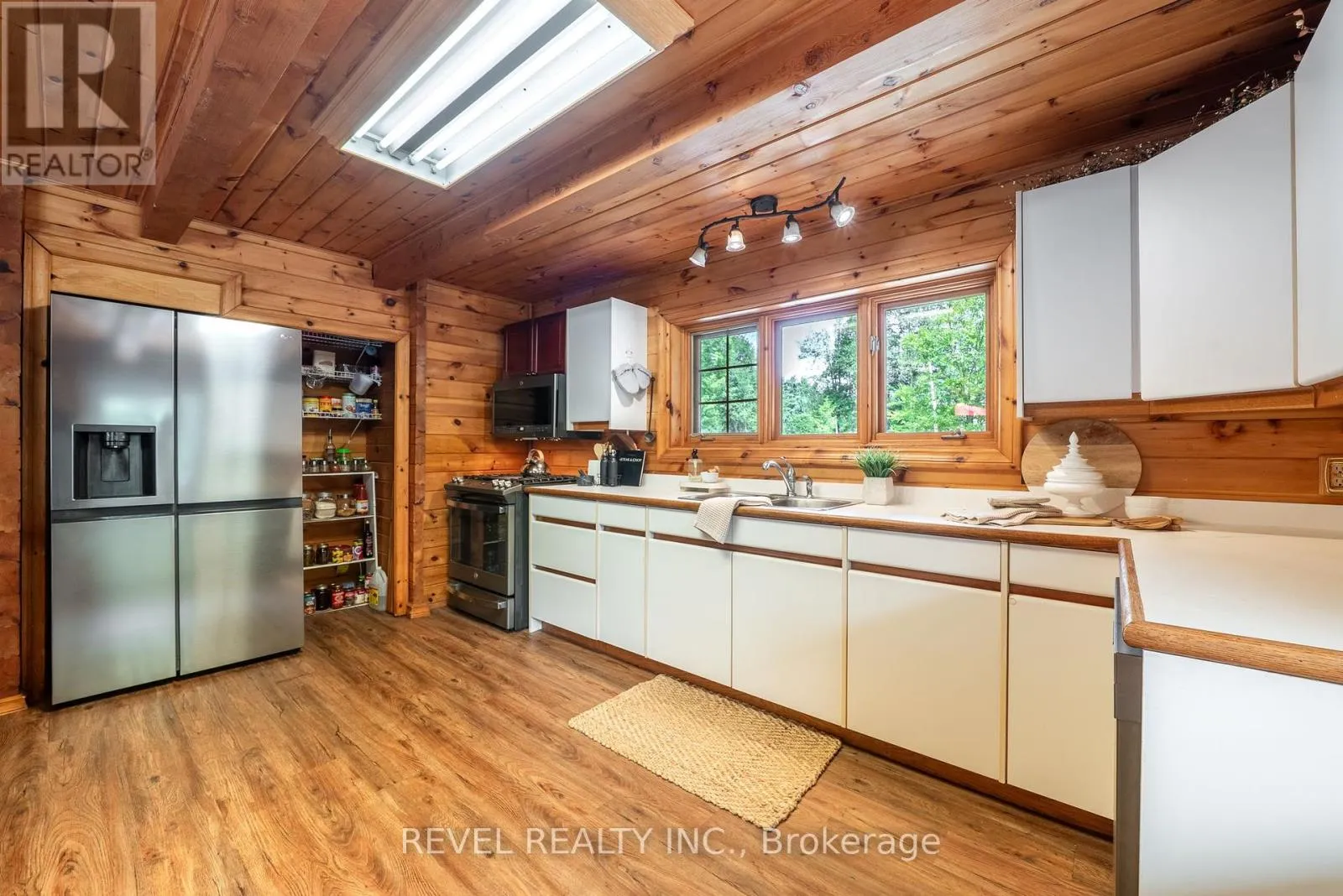 Galway/County Rd 121 Welcome to 3515 County Rd 121, this stunning 4+1 bedroom 3 bathroom log home with metal roof, offers the perfect balance of rustic charm and modern comfort. Walk in and be mesmerized by the grand foyer & living area, cathedral wood ceilings, cozy fireplace and abundant natural light from picturesque windows creating a warm and inviting atmosphere.The kitchen/dining combo is a cooking paradise, featuring newer appliances, propane stove, OTR microwave, pantry and ideal for both daily living and entertaining. Gorgeous spiral natural wood staircase leading you to the upper level of the home with additional bedrooms, full bathroom and sitting area loft. Primary Suite with walk out Juliet Deck. Lower level with full recreational room, laundry area, sauna, work out area, bathroom and walk out to yard. Perfect in law suite potential with separate entrance.Step outside to the expansive wraparound deck with breathtaking views of the pond and surrounding 1.89 acres of forest. Whether you're enjoying a quiet morning coffee watching the wildlife or hosting family and friends in the evening watching the fire flies having a bonfire, this outdoor space is sure to impress.This property has several uses, perfect as a year-round residence, seasonal retreat, multi family or income opportunity, this property offers a lifestyle of peace, beauty, and versatility. Bonus three car detached garage with hydro. Do not miss this opportunity to make this your next home. (id:27476)