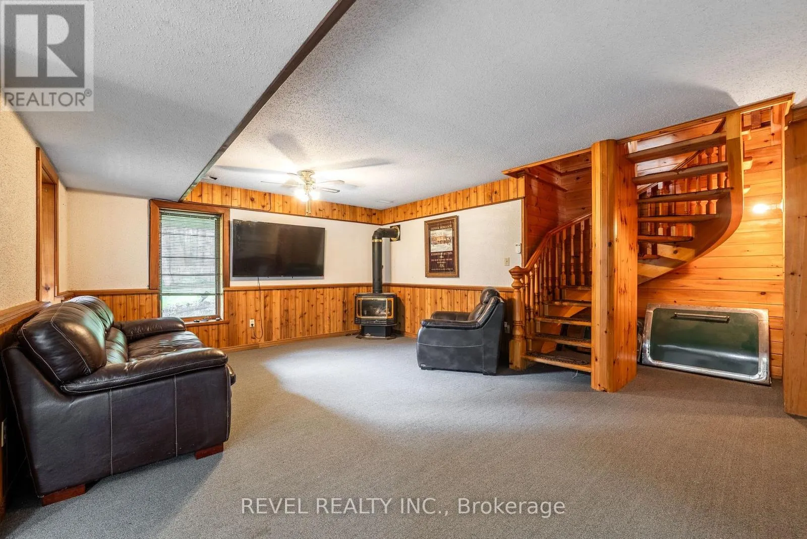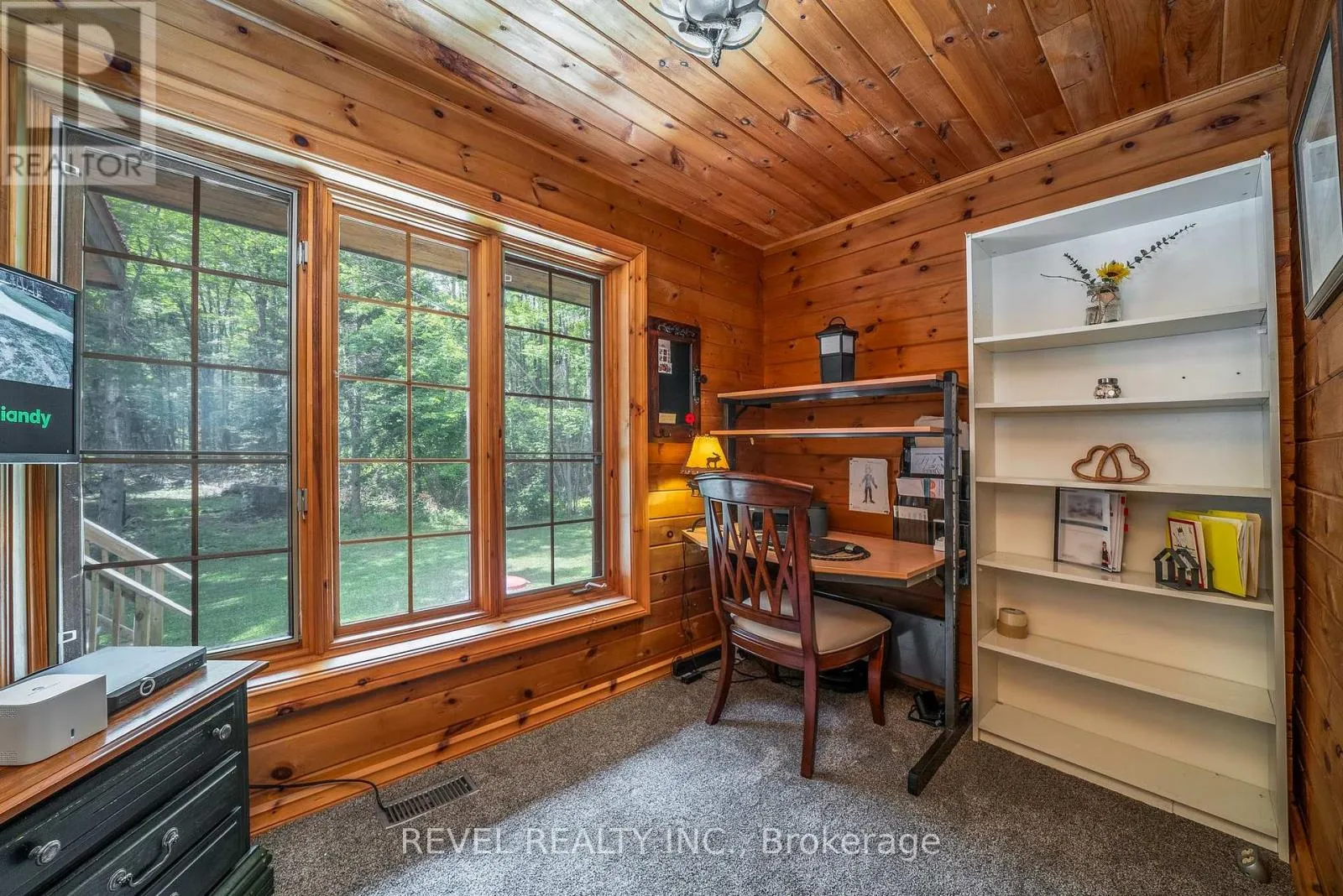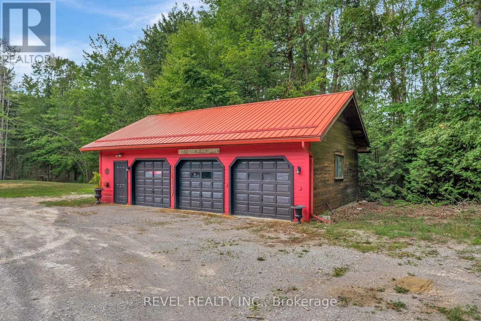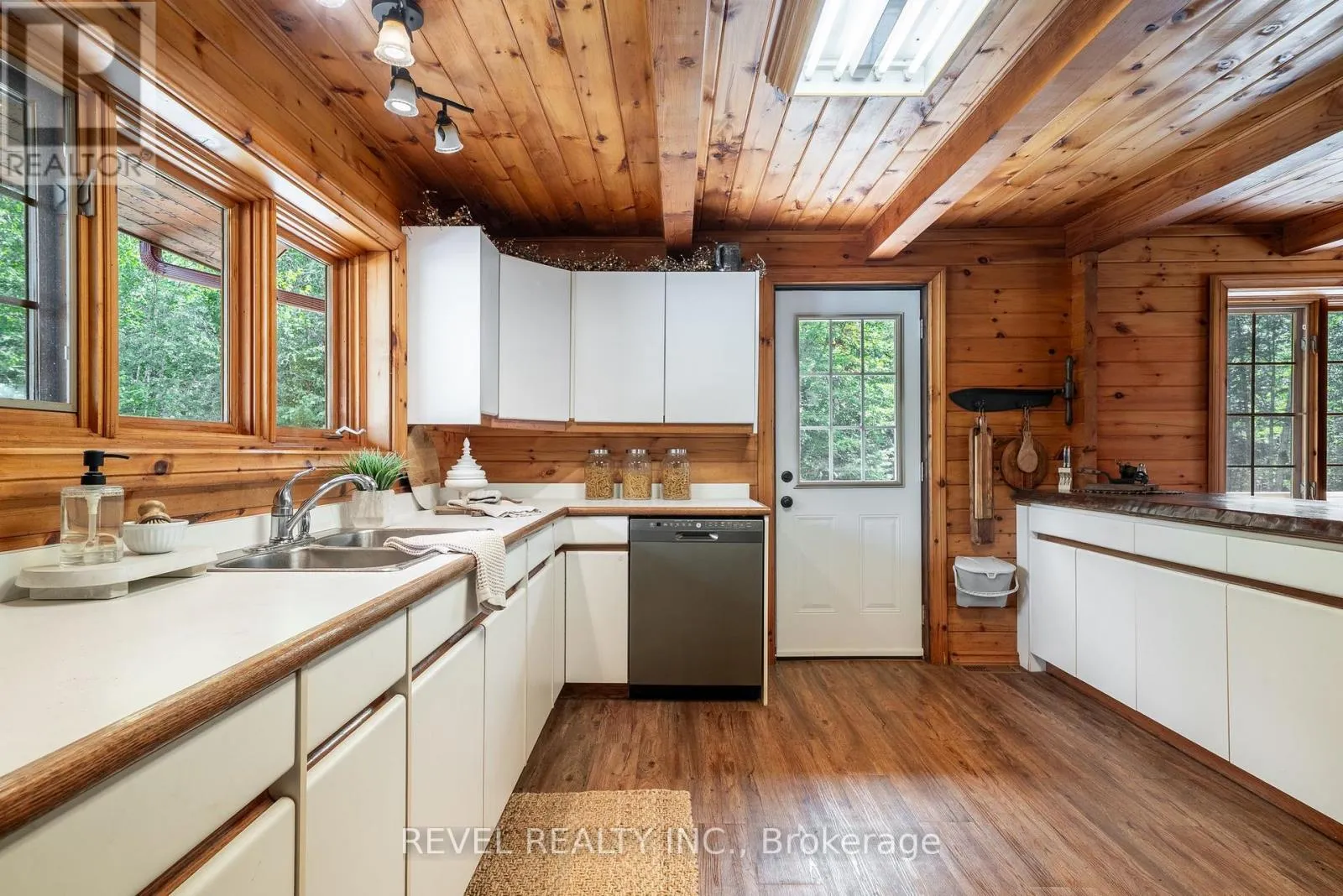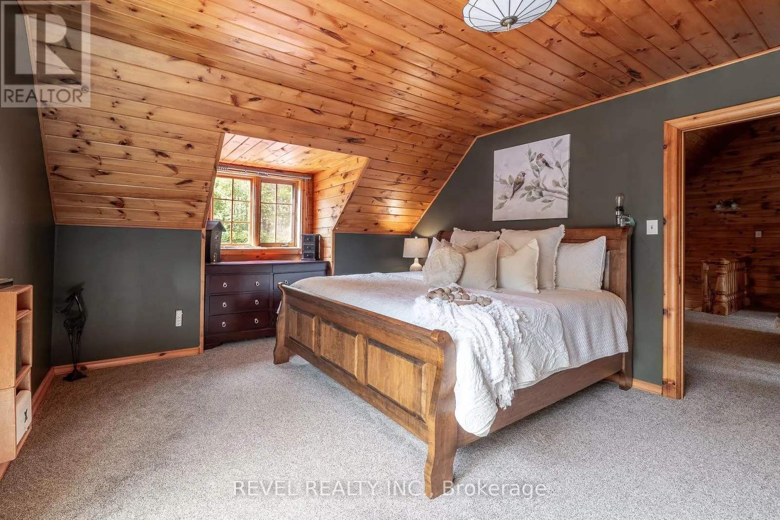 Galway/County Rd 121 Welcome to 3515 County Rd 121, this stunning 4+1 bedroom 3 bathroom log home with metal roof, offers the perfect balance of rustic charm and modern comfort. Walk in and be mesmerized by the grand foyer & living area, cathedral wood ceilings, cozy fireplace and abundant natural light from picturesque windows creating a warm and inviting atmosphere.The kitchen/dining combo is a cooking paradise, featuring newer appliances, propane stove, OTR microwave, pantry and ideal for both daily living and entertaining. Gorgeous spiral natural wood staircase leading you to the upper level of the home with additional bedrooms, full bathroom and sitting area loft. Primary Suite with walk out Juliet Deck. Lower level with full recreational room, laundry area, sauna, work out area, bathroom and walk out to yard. Perfect in law suite potential with separate entrance.Step outside to the expansive wraparound deck with breathtaking views of the pond and surrounding 1.89 acres of forest. Whether you're enjoying a quiet morning coffee watching the wildlife or hosting family and friends in the evening watching the fire flies having a bonfire, this outdoor space is sure to impress.This property has several uses, perfect as a year-round residence, seasonal retreat, multi family or income opportunity, this property offers a lifestyle of peace, beauty, and versatility. Bonus three car detached garage with hydro. Do not miss this opportunity to make this your next home. (id:27476)