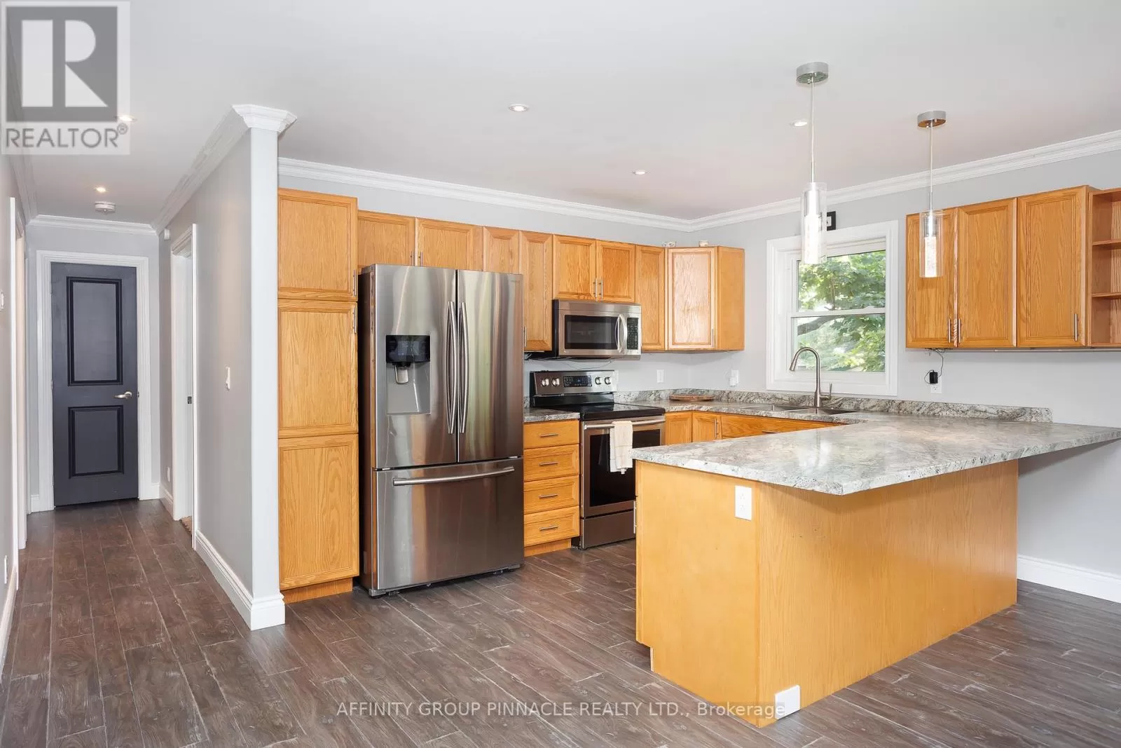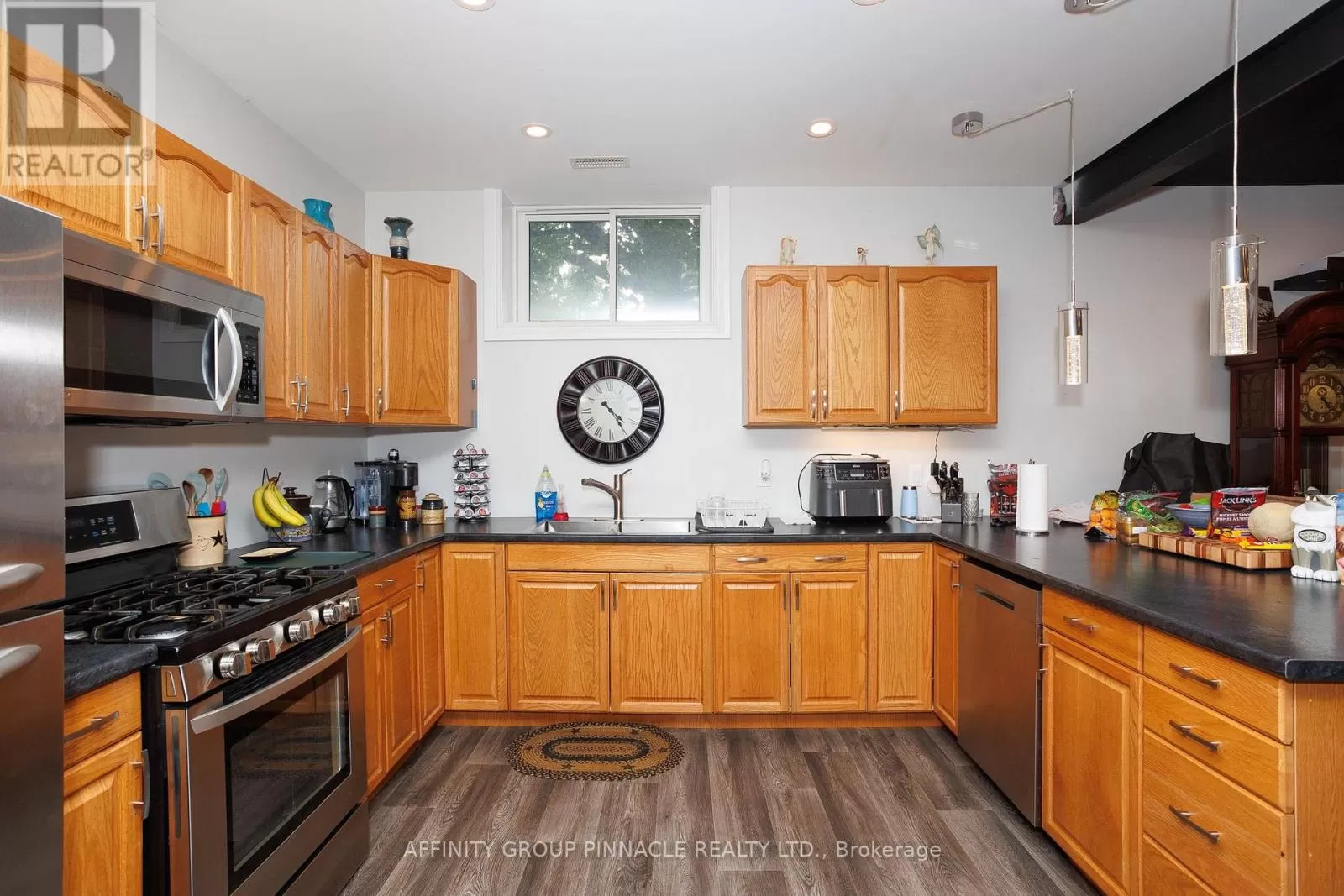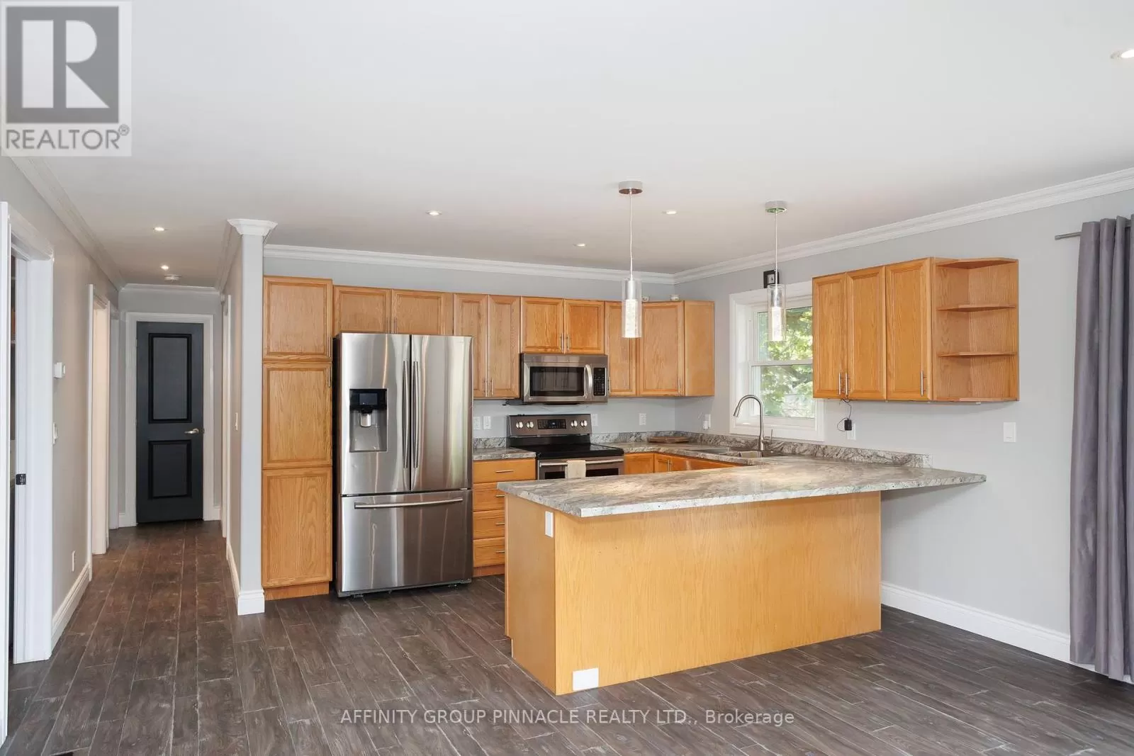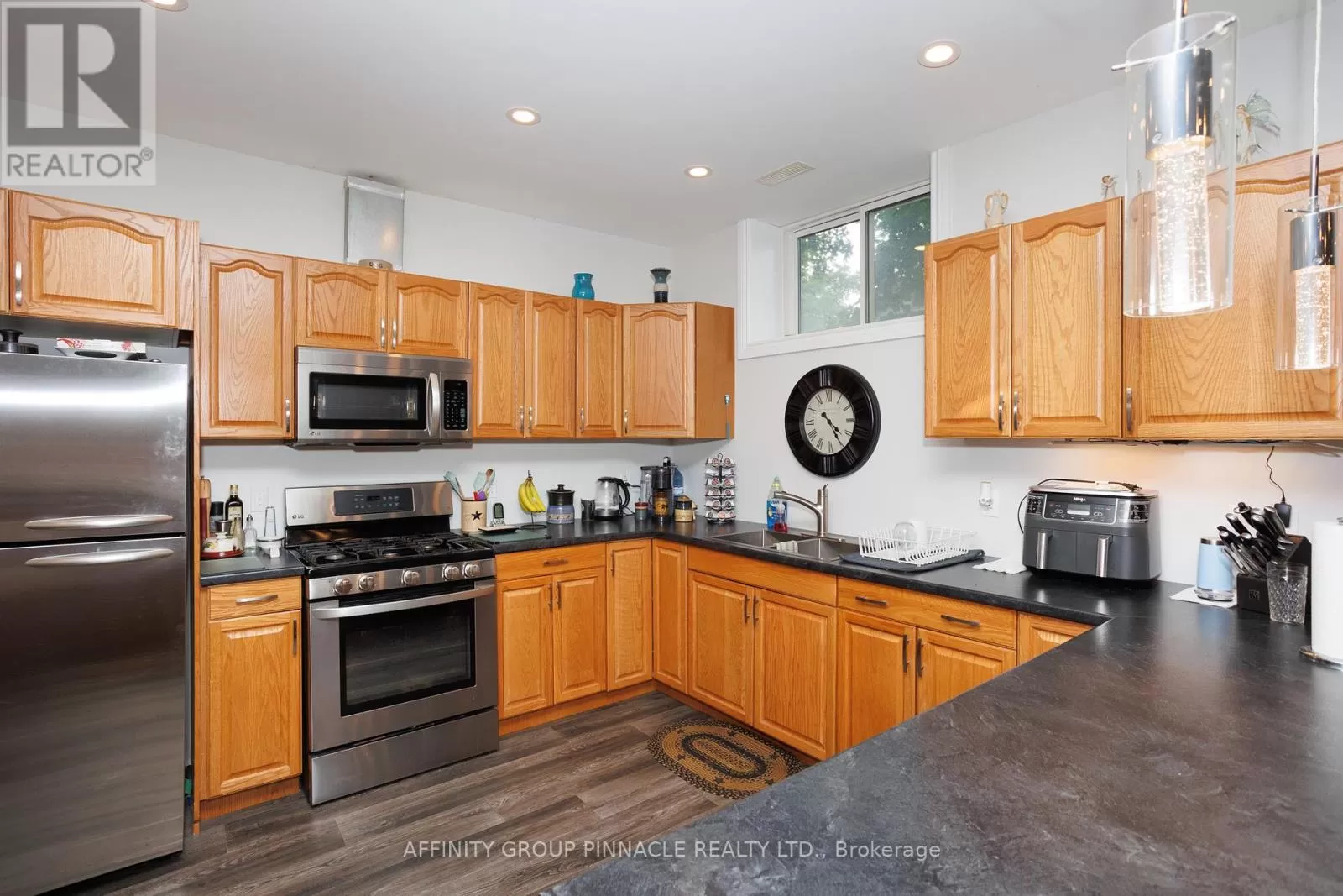 Durham St E/Duke St Welcome to 3 Duke St in Lindsay - a rare and exceptional opportunity to own a property featuring three self-contained residential units, each with its own laundry facilities, on a nearly half-acre lot just steps from downtown. Perfect for investors, multi-generational families, or those seeking income potential, this property blends character, comfort and versatility. The original home features three bedrooms plus an office, along with a spacious eat-in kitchen ideal for family living. It connects to the newer structure through a large, beautiful mudroom that provides practical separation and added convenience between the original home and the 2017 addition. The second, main floor bungalow unit - part of the 2017 addition - offers an open-concept layout with a sit-up breakfast bar, an eight-foot patio door, and a walkout to a private deck overlooking the sprawling backyard. This unit also features a beautiful covered front porch with pot lighting. The bright and impressive lower-level third unit features two spacious bedrooms, large egress windows that flood the space with natural light, soaring nine-foot ceilings and a well-appointed kitchen with a sit-up breakfast bar. Outside, you'll find a charming bunkie with a covered front porch, perfect for guests, a studio or extra storage. There's also a detached garage, offering ample room for parking, a workshop, or hobby space, plus tons of parking to accommodate tenants, visitors or multiple vehicles. Additional highlights include a steel roof and multiple gas lines installed for the potential addition of a gas stove, fireplace, dryer, or BBQ. All of this is in an unbeatable location within walking distance to all that downtown Lindsay has to offer. This is a true turnkey property with outstanding potential that you don't want to miss. (id:27476)