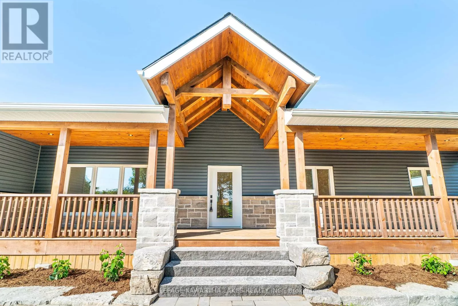 Cross Streets: Coshs Road & County Road 8. ** Directions: Follow County Rd 8 East, Turn Right Onto Cosh's Rd. Property On Left. See Sign. Discover The Perfect Blend Of Modern Comfort And Rural Tranquility Just Minutes Outside Of Bobcaygeon. This Stunning New Build Offers 3+1 Bedrooms And 3 Full Baths, Offering Nearly 3,000sqft Of Total Finished Living Space, Nestled On A Spacious 1-Acre Lot With Serene Views Of A Pond And Surrounding Farmland. Step Inside The Open-Concept Kitchen, Living & Dining Area, Where Vaulted Ceilings Create An Airy, Inviting Atmosphere. A Propane Fireplace, Featuring Aspen Cream Ledgestone And A Locally Sourced Timber Mantle, Serves As The Centerpiece Of This Elegant Space. The Main Level Boasts Engineered Hardwood Flooring Throughout, Adding Warmth & Durability. The Kitchen Is An Entertainers Dream, Equipped With Matching High-End Bespoke Line Samsung Appliances, Solid Surface Countertops & Backsplash, And Quality Cabinetry. Enjoy A Coffee Or Dinner With Friends From Your Raised Deck Off The Kitchen Overlooking The Neighbouring Pond. The Homes Thoughtful Design Continues In The Finished Walk-Out Basement, Complete With A 4-Piece Bath, Additional Bedroom, & A Convenient Walk-Up To The Oversized 26x37 Double Car Garage. Enjoy The Efficiency & Comfort Of A High-Efficiency Propane Forced Air Furnace, Central Air Conditioning, Propane Hot Water Tank, HRV, And Water Treatment UV System, All Supported By An ICF Foundation. Additional Features Include Main Floor Laundry, TV Cable Wiring In The Living Room, And Rough-In For A Central Vacuum System. This Property Comes With Full Tarion Warranty, Ensuring Peace Of Mind As You Settle Into Your New Countryside Haven. Don't Miss This Opportunity To Own A Beautifully Crafted Home In A Prime Location. (id:27476)