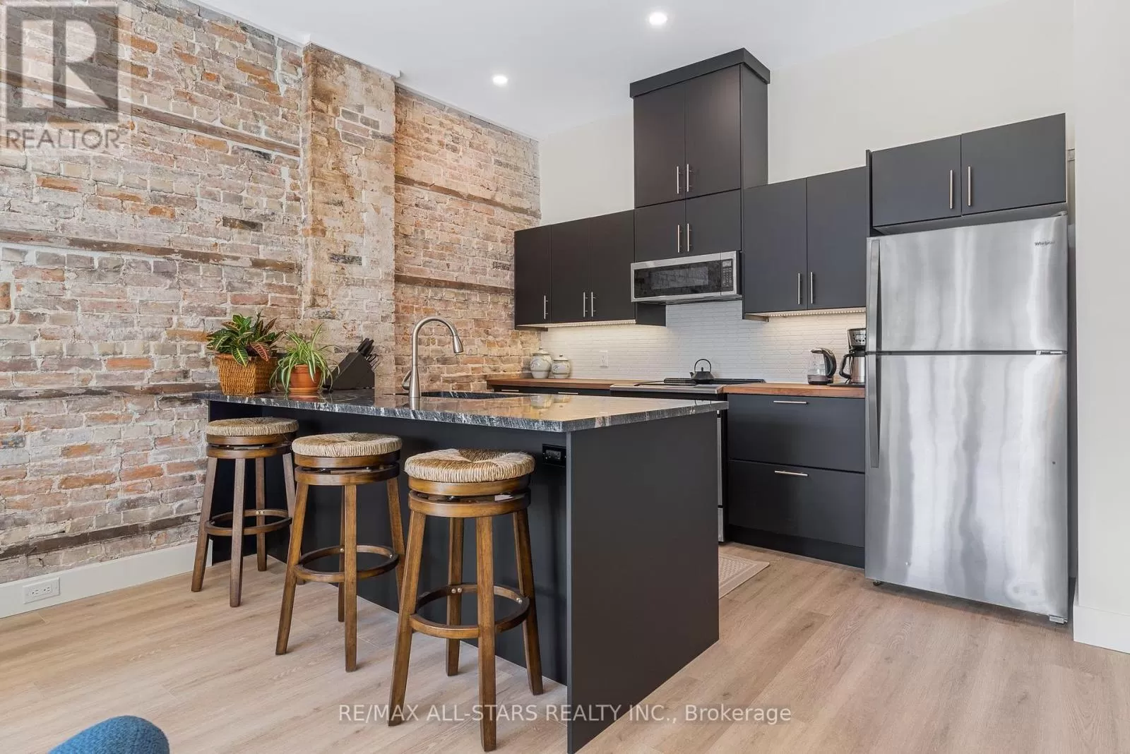 Cross Streets: main/colborne. ** Directions: Colborne St Downtown. Discover modern living in this fully renovated 1-bedroom, 1-bathroom apartment located right on the main street of Fenelon falls. Perfectly situated within walking distance to restaurants, shopping, and beaches, this home offers both convenience and charm. Inside, you'll find a stylish open-concept layout featuring a stunning exposer brick wall in the kitchen and living room, quartz countertops, and durable laminate flooring throughout. The kitchen flows seamlessly into the living space, crating a warm and inviting atmosphere. Enjoy the comfort of your own reserved single parking space located at the back of the building. This apartment is ideal for those looking for a low-maintenance, modern lifestyle right in the heart of town. (id:27476)