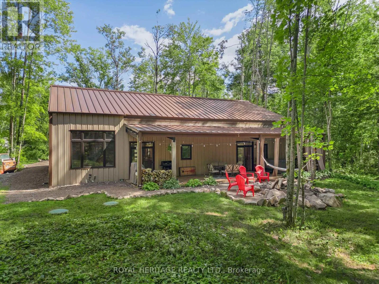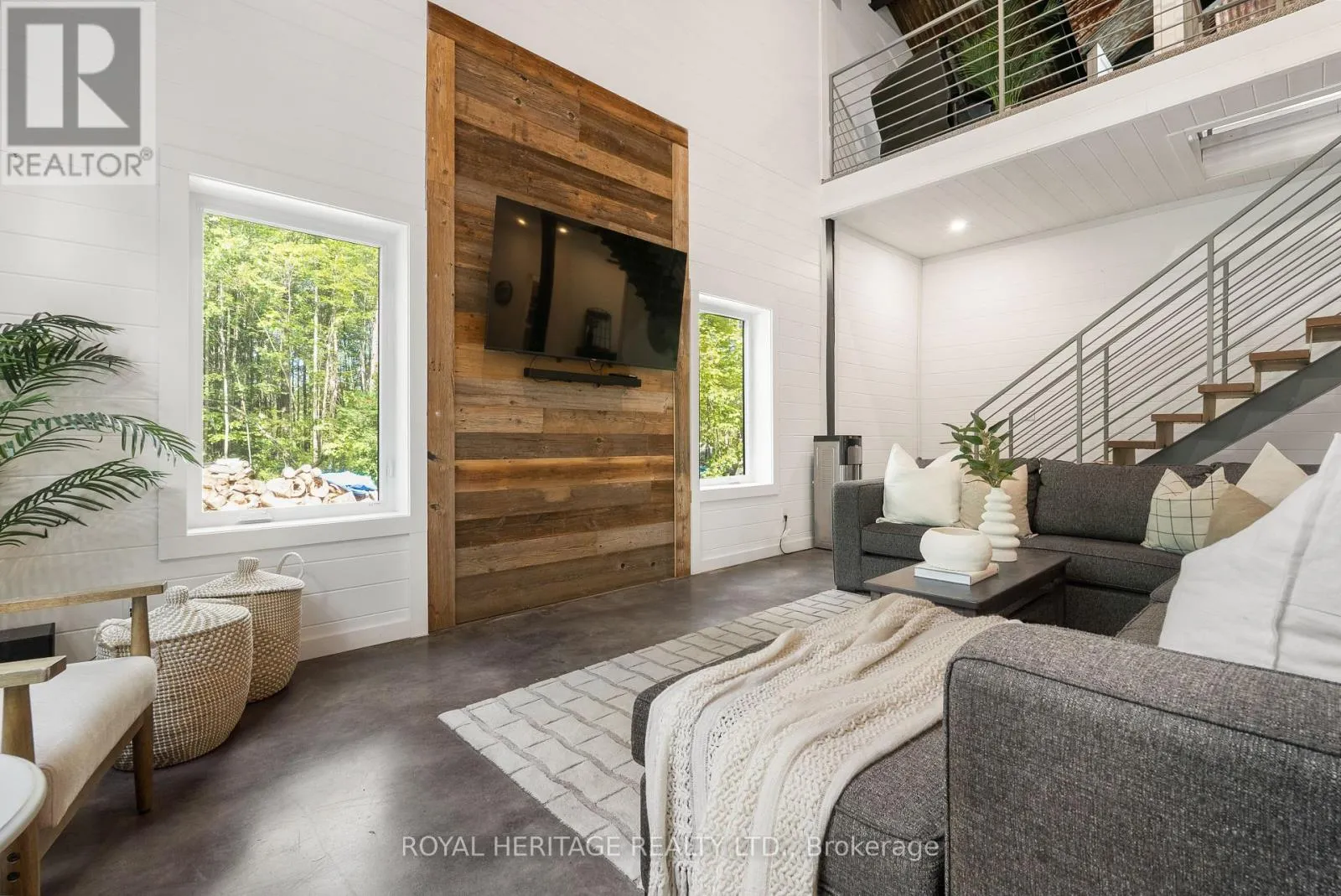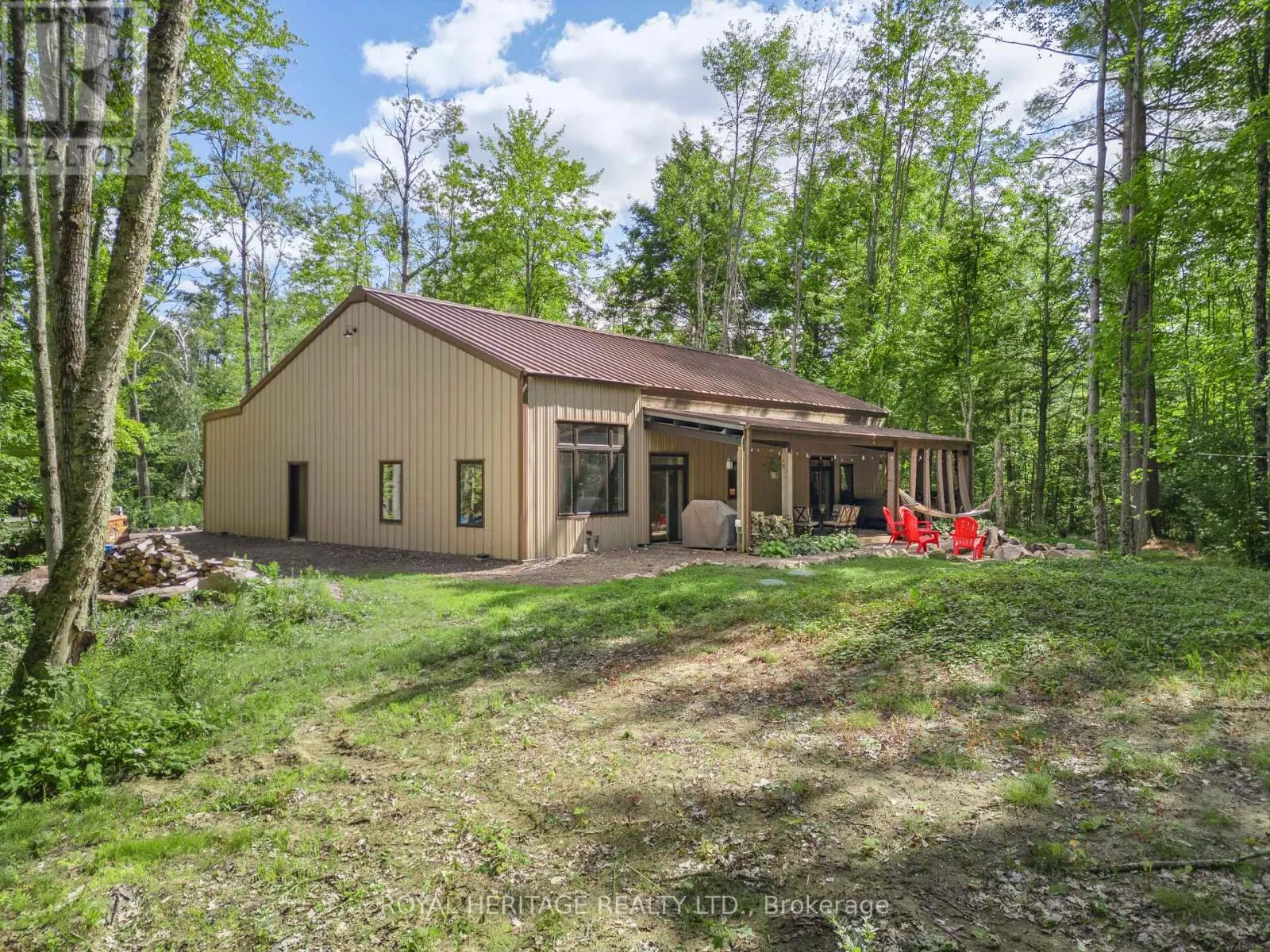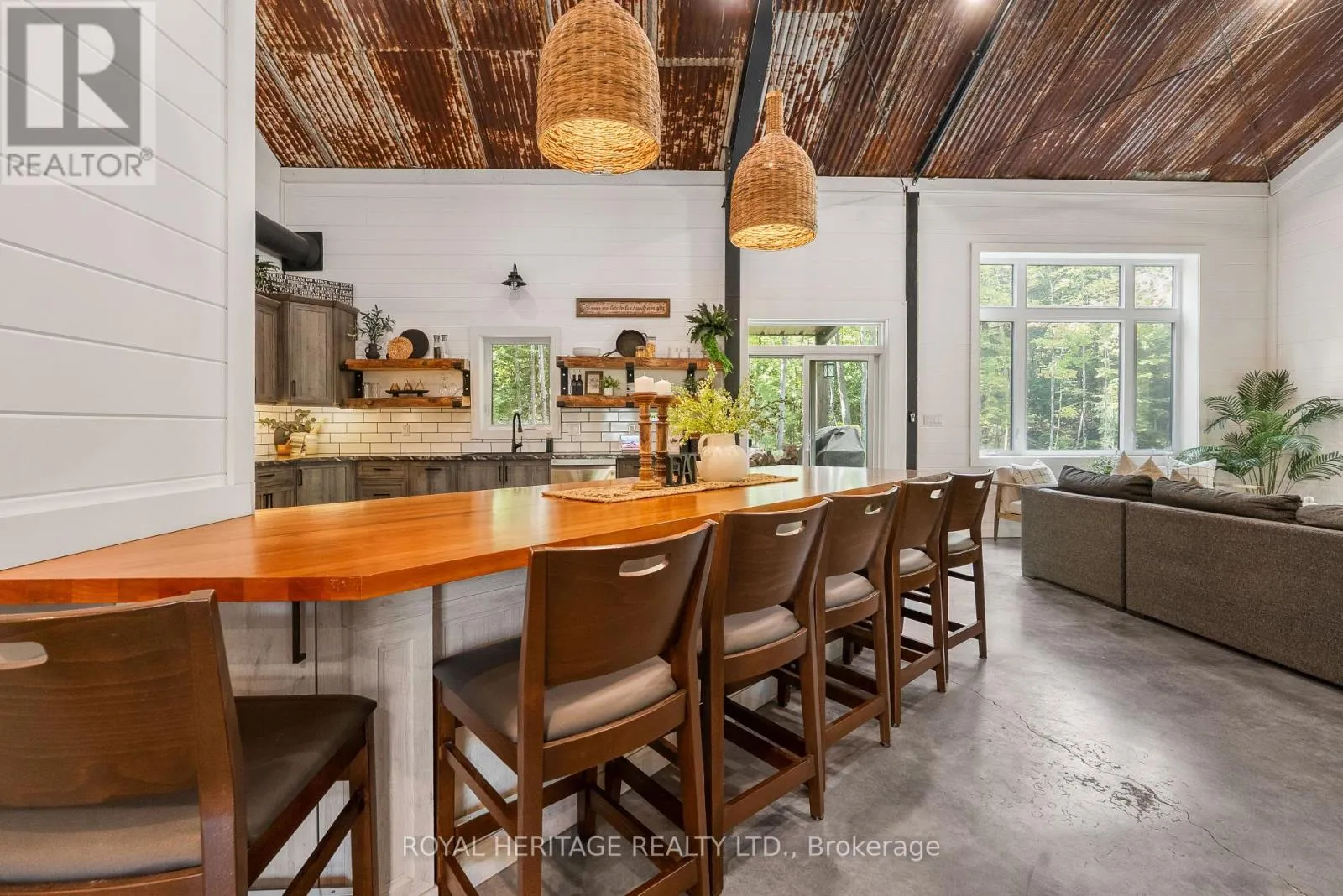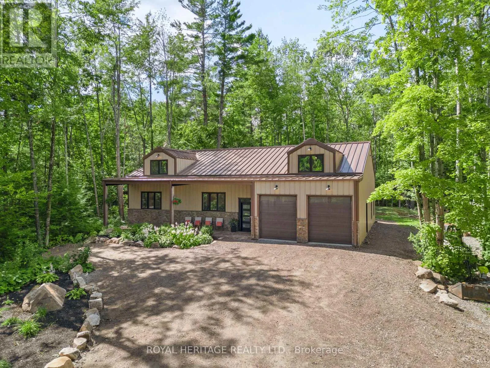 Cross Streets: Hwy 35. ** Directions: Hwy 35 N past Monk Rd, turn left on King St. Experience Modern Country Living in Style! Discover this custom steel-built Barndominium, completed in 2022 and perfectly set on a private 1-acre lot. Located In Norland In the Heart of cottage country. This home Blends durability with high-end design, this 4 potential 5 bedroom home offers a lifestyle that is as practical as it is luxurious. As you enter the grand entrance you're greeted with soaring ceilings, expansive windows, and a sleek modern aesthetic filled with natural light. At the heart of the home, the massive chefs kitchen features premium cabinetry, walk -in pantry with coffee bar, a large built-in island overlooking the spacious dining and living areasperfect for entertaining or family gatherings. The backyard contains a large covered patio with a brand new hot tub, and a fire pit area to truly enjoy privacy and nature. The primary suite is a private retreat with a spa-inspired ensuite and walk-in closet, while three additional bedrooms provide flexibility for family, guests, or a home office. The second floor mezzanine overlooks the great room. It hosts a bedroom with a large closet, a bonus room, office area and sitting lounge. Comfort is elevated with radiant in-floor heating, ductless heat pumps, while modern conveniences include a GenerLink generator hook-up, EV charger. Built with solid steel construction, this residence ensures unmatched strength, energy efficiency, and low maintenance, an investment built to last. Outside, enjoy the peace of rural living with space to relax, entertain, or simply take in the beauty of the Kawartha countryside. This is more than a home its the Kawartha Lifestyle, redefined. (id:27476)