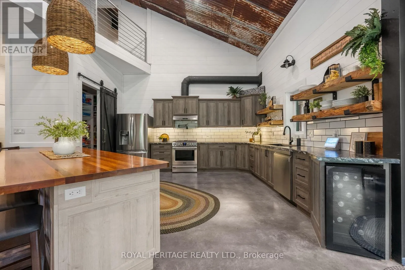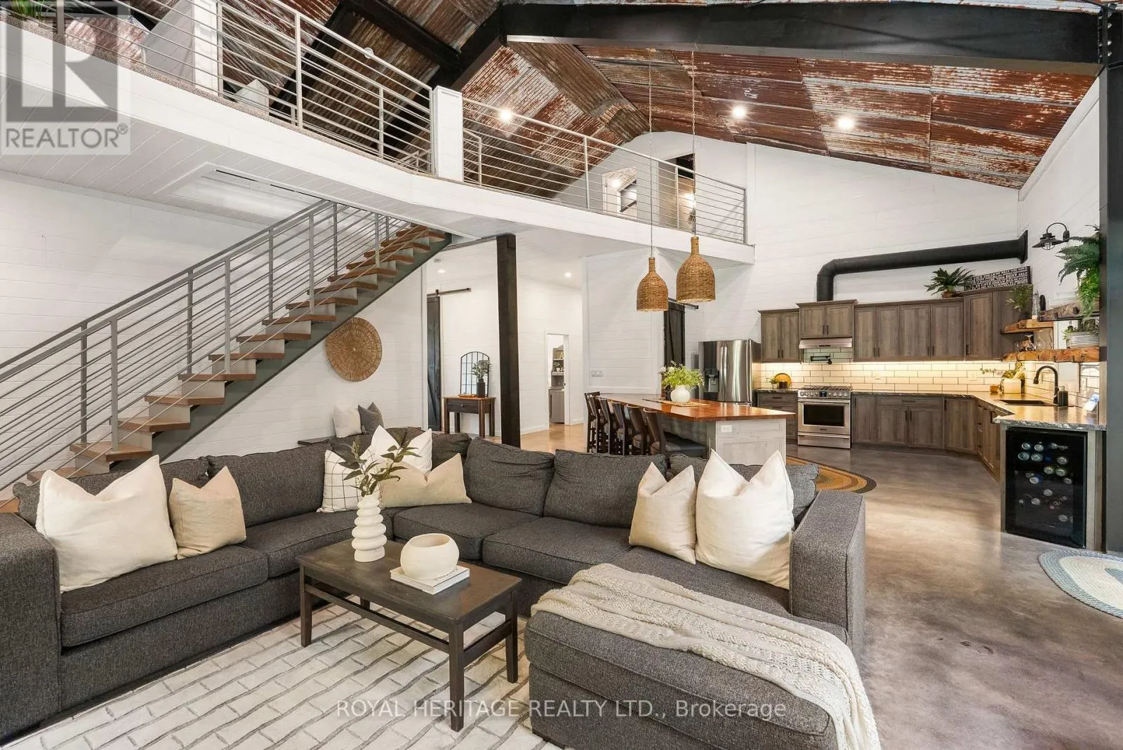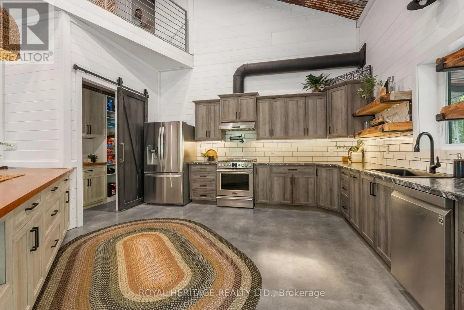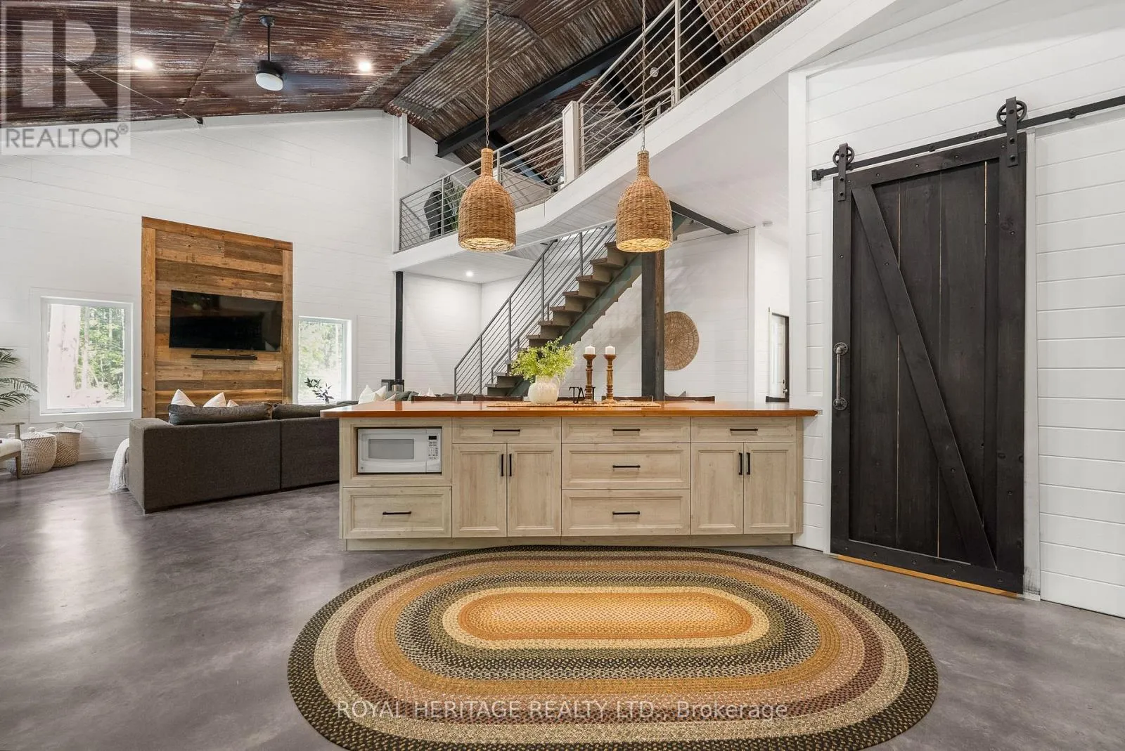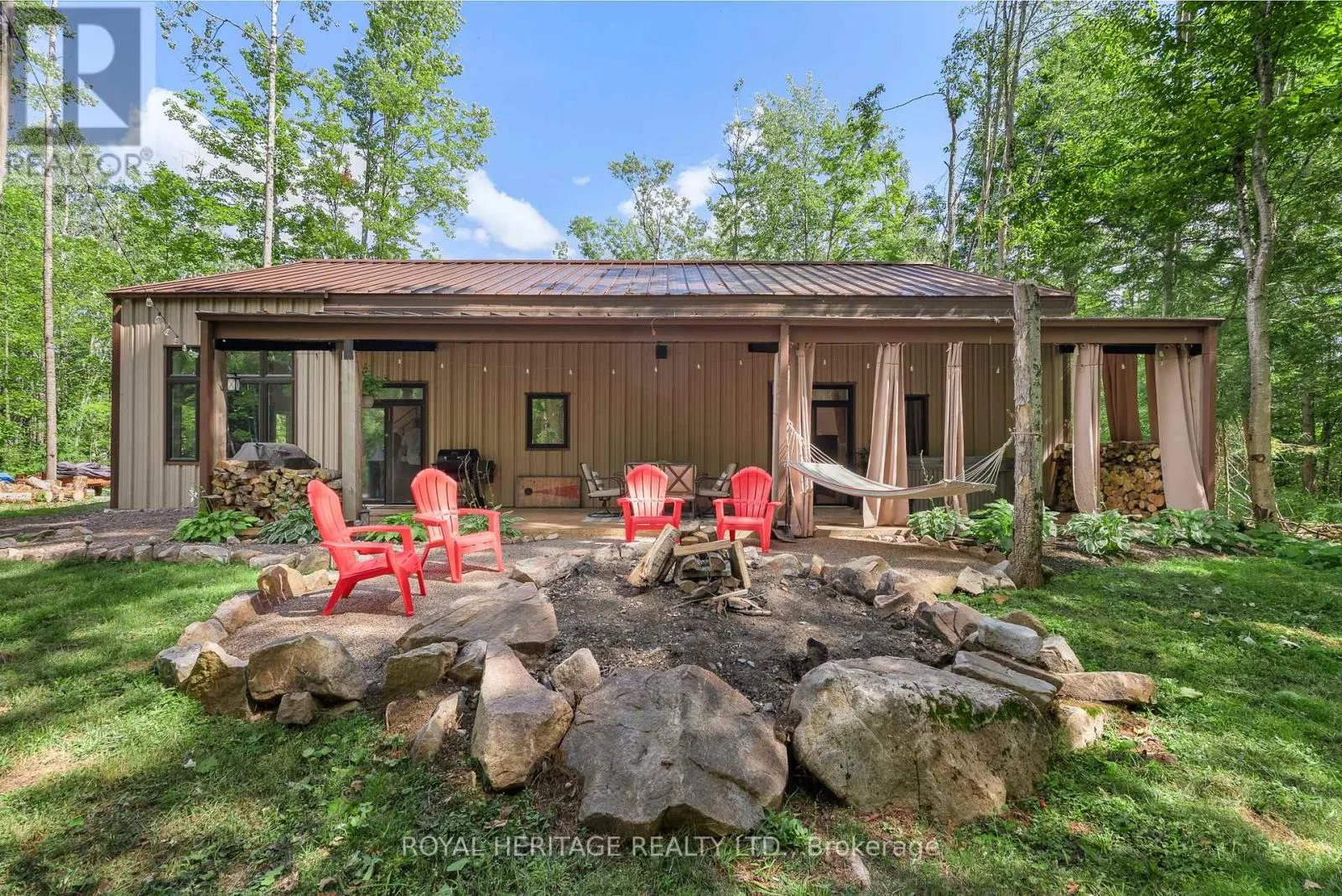 Cross Streets: Hwy 35. ** Directions: Hwy 35 N past Monk Rd, turn left on King St. Experience Modern Country Living in Style! Discover this custom steel-built Barndominium, completed in 2022 and perfectly set on a private 1-acre lot. Located In Norland In the Heart of cottage country. This home Blends durability with high-end design, this 4 potential 5 bedroom home offers a lifestyle that is as practical as it is luxurious. As you enter the grand entrance you're greeted with soaring ceilings, expansive windows, and a sleek modern aesthetic filled with natural light. At the heart of the home, the massive chefs kitchen features premium cabinetry, walk -in pantry with coffee bar, a large built-in island overlooking the spacious dining and living areasperfect for entertaining or family gatherings. The backyard contains a large covered patio with a brand new hot tub, and a fire pit area to truly enjoy privacy and nature. The primary suite is a private retreat with a spa-inspired ensuite and walk-in closet, while three additional bedrooms provide flexibility for family, guests, or a home office. The second floor mezzanine overlooks the great room. It hosts a bedroom with a large closet, a bonus room, office area and sitting lounge. Comfort is elevated with radiant in-floor heating, ductless heat pumps, while modern conveniences include a GenerLink generator hook-up, EV charger. Built with solid steel construction, this residence ensures unmatched strength, energy efficiency, and low maintenance, an investment built to last. Outside, enjoy the peace of rural living with space to relax, entertain, or simply take in the beauty of the Kawartha countryside. This is more than a home its the Kawartha Lifestyle, redefined. (id:27476)
