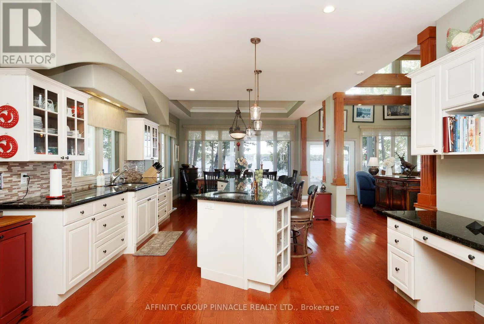 Cross Streets: Hickory & Edgewater. ** Directions: Hickory Beach to Edgewater to property. Stunning Sturgeon Lake Waterfront Home! This gorgeous custom-built residence combines luxury, space, and function with breathtaking lake views. Offering 7 spacious bedrooms and 3.5 baths, this home is ideal for large families or those who love to entertain. The gourmet kitchen is thoughtfully designed with high-end finishes and flows seamlessly into the open living and dining areas, all showcasing panoramic views of Sturgeon Lake. The primary suite is a true retreat, featuring a walkout to the expansive wrap-around deck where you can enjoy morning coffee or evening sunsets over the water. The fully finished basement provides even more living space, perfect for gatherings, games, or quiet relaxation. Outdoors, the property is equally impressive. A paved circular driveway leads to a triple car garage plus a secondary triple garage--offering incredible storage for vehicles, boats, and recreational toys. The wrap-around deck and beautifully landscaped grounds make this home a year-round haven for entertaining and relaxation. Whether you're seeking a full-time residence or a luxury lakeside retreat, this Sturgeon Lake gem delivers it all--space, comfort, and a lifestyle second to none. (id:27476)