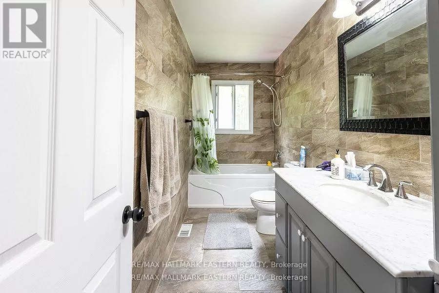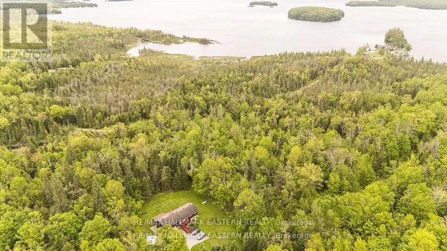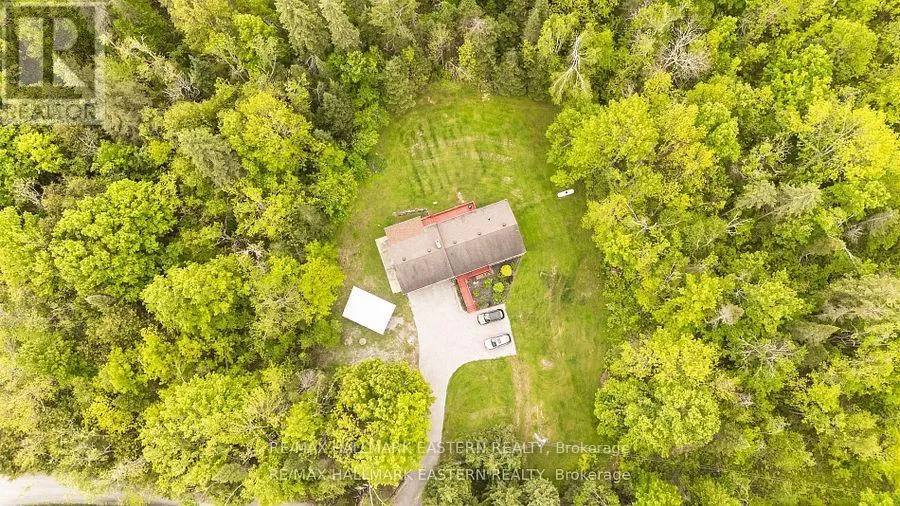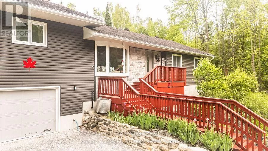 Cross Streets: Highway 35 N & Concession Road 3. ** Directions: Hwy 35 North /Concession Rd 3. Welcome to your private retreat! Tucked away on a serene 1.85 acre lot along a quiet, secluded lane, this beautifully maintained bungalow is surrounded by mature trees, walking trails, and nearby lakes, offering a peaceful, forest-like escape just minutes from the city. The move-in ready home features 4 spacious bedrooms, 3 updated bathrooms, and a 2 car garage. The inviting living room is anchored by a stunning stone fireplace, while the open-concept dining area flows seamlessly onto a large rear deck, perfect for entertaining or relaxing in nature. The stylish kitchen boasts granite countertops and modern finishes, complemented by rich hardwood flooring throughout the main level. Significant upgrades add to the value and comfort of this home, including a new carport (2023), freshly paved driveway (2022), owned hot water heater (2023), water purification system (2022), garage door opener (2023), and updated sump pumps (2022-2025). The property also features generator access (2023) for peace of mind, and a current WETT certificate (2024) is available. Don't miss the opportunity to own this tranquil oasis with modern upgrades in a picture-perfect natural setting. (id:27476)