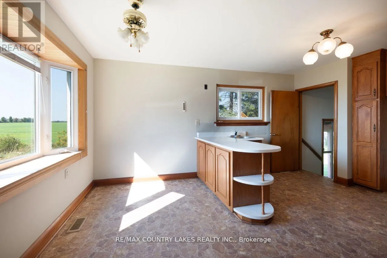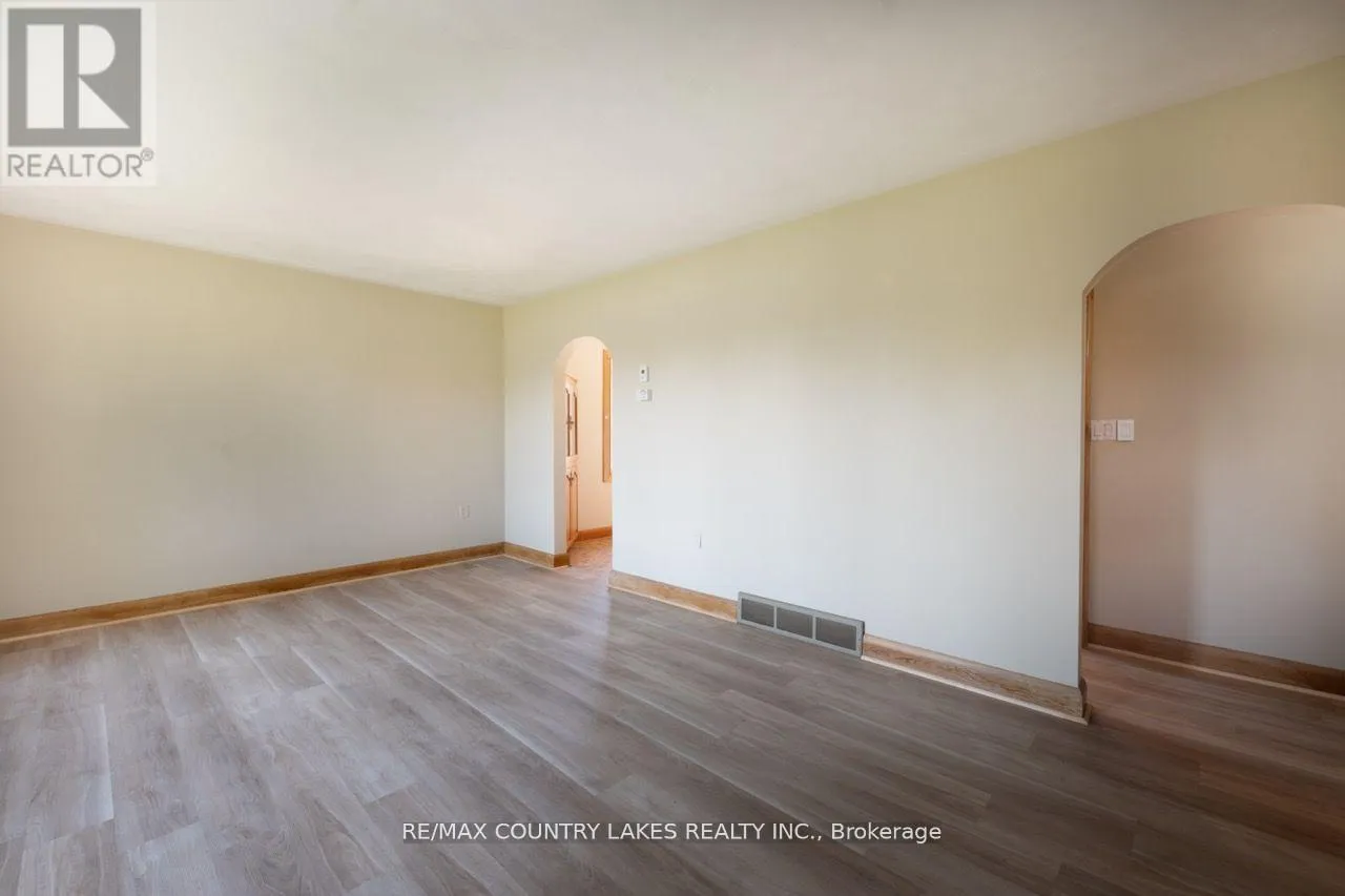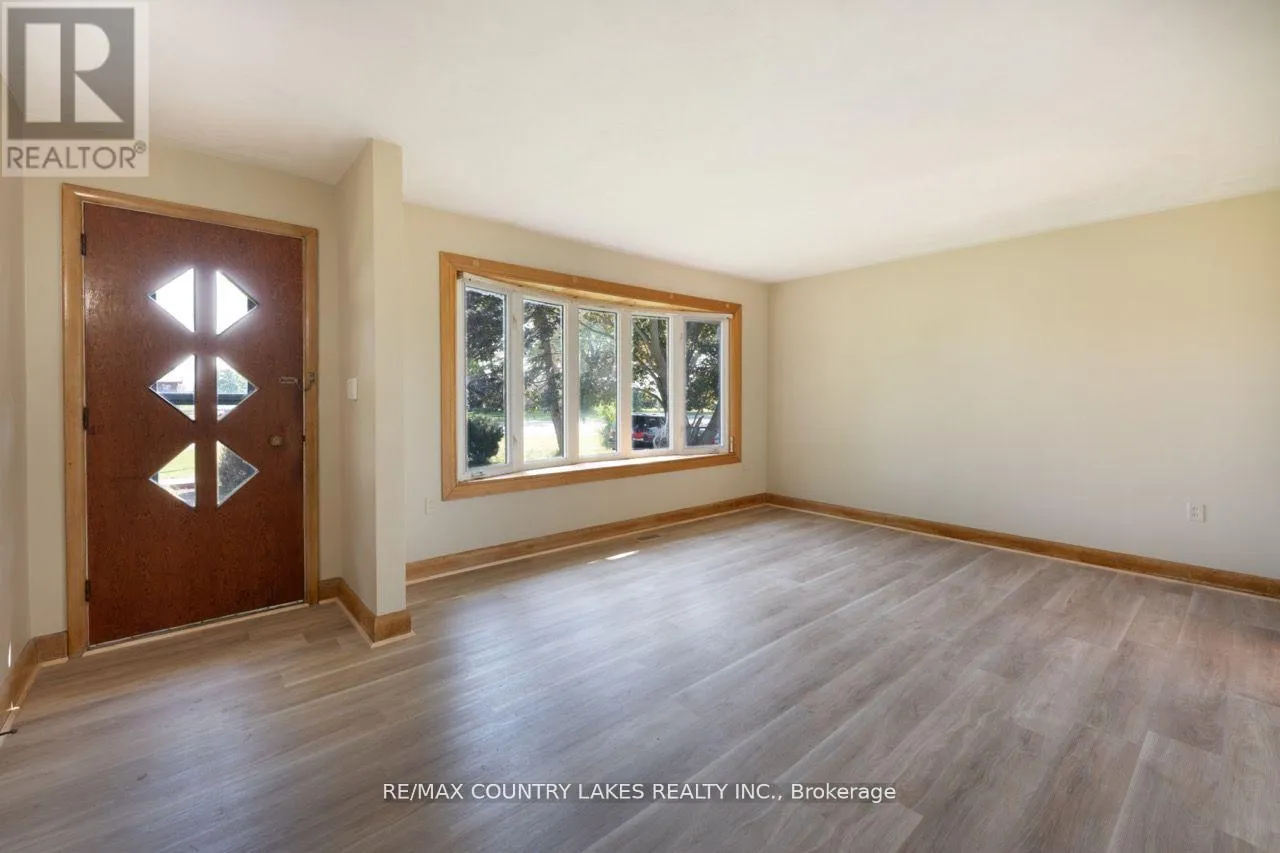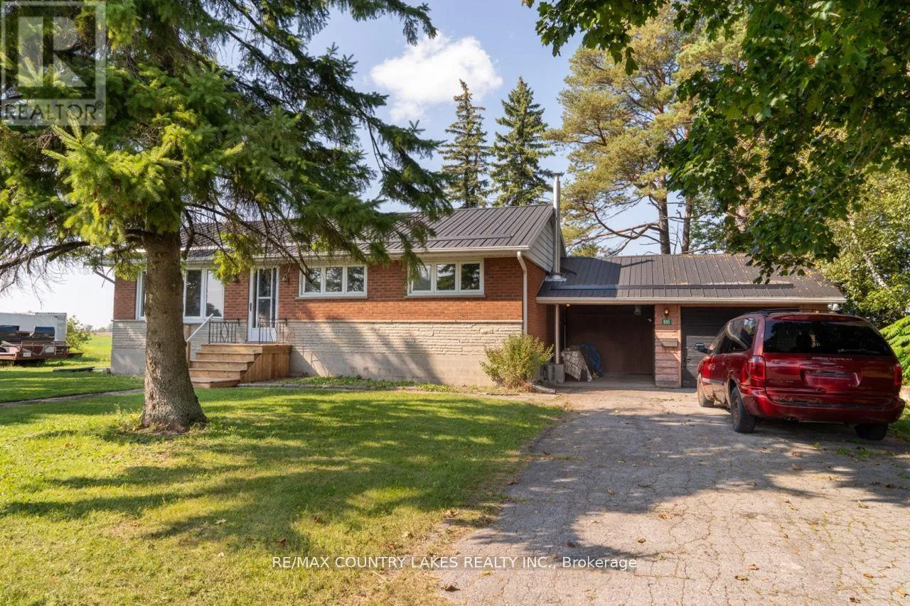Highway 7 Oakwood Welcome to this three-bedroom brick bungalow situated on a large mature lot just minutes West of Lindsay. The interior of the home offers a pleasing layout that features a large eat-in kitchen with a bow window and lots of cupboard space. The bright living room also has a bow window that allows for ample natural light, a walk-out to front deck and walkway and a conveniently located coat closet. Down the hall you will find three nicely sized bedrooms and a four-piece bath. The basement is partially finished and offers a large recreation room with propane fireplace, large utility room with laundry hook up, plus a storage room. Most rooms have been freshly painted (2024), and the living room and hallway have new laminate flooring. There is a carport / breezeway attached to the home that leads directly into the single car garage. Enjoy the lovely mature side yard for all your outdoor activities and gatherings. The home is serviced with municipal water and septic system, has a paved drive and sidewalk in front. Come have a look. Hot water heater is "As is" has not been turned on recently. (id:27476)