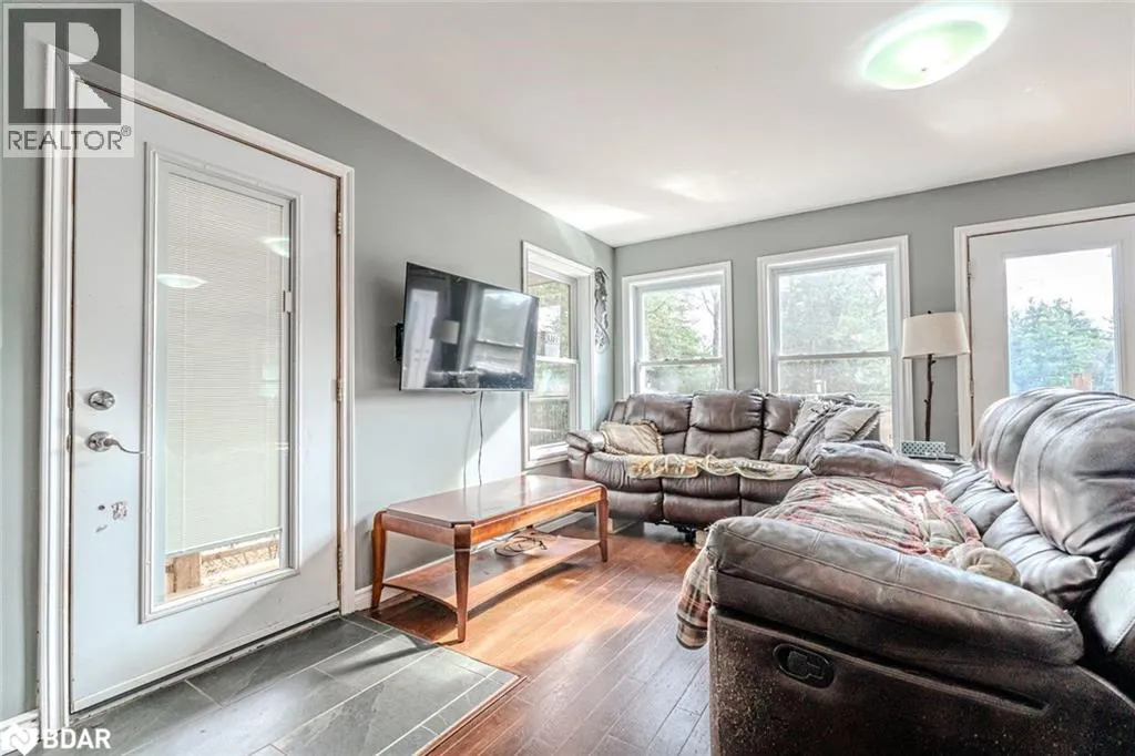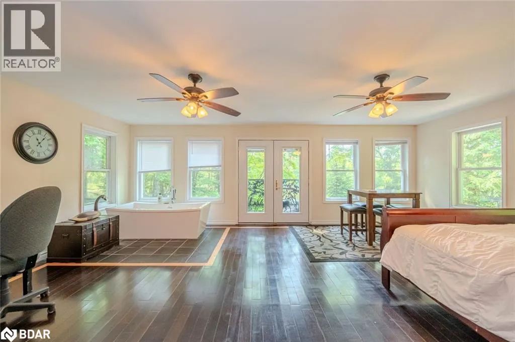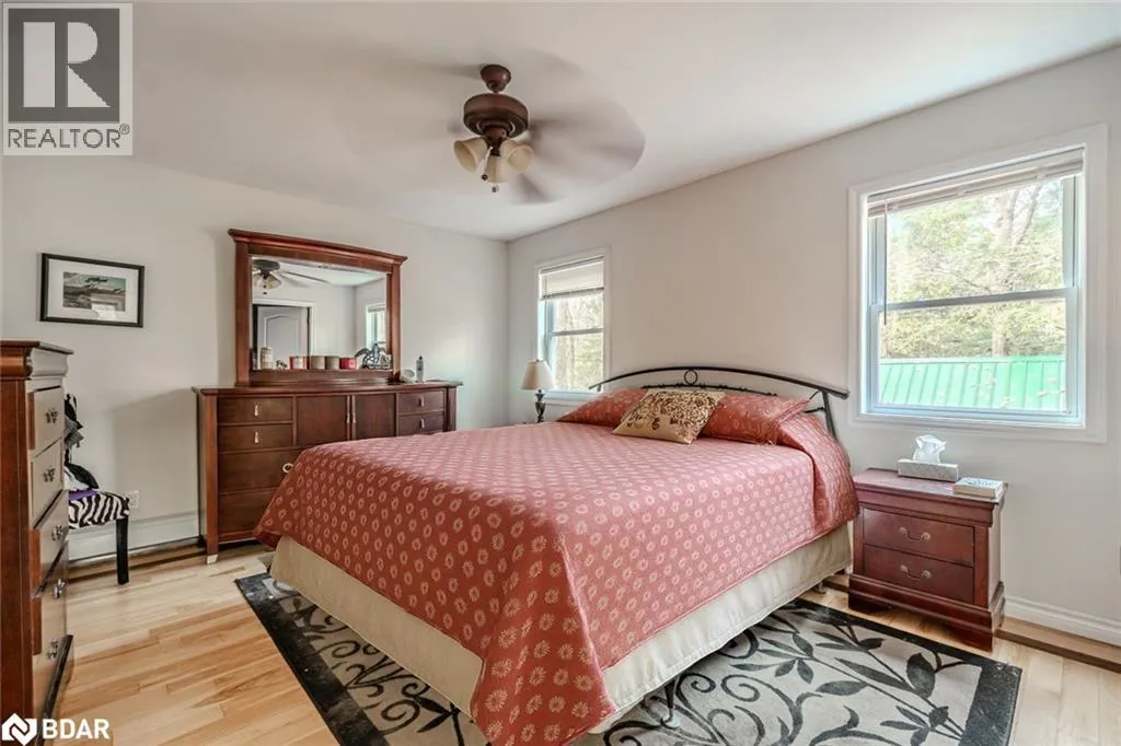 From Kinmount: South CR 45 to Crego Lake Road - left or right at Fork to Address YOUR FOUR-SEASON TICKET TO LAKE LIFE WITH 140 FT OF SHORELINE ON 1.61 ACRES! Imagine mornings with coffee on your balcony as loons call across the water, afternoons spent reeling in smallmouth bass or cruising the lake by pontoon, and evenings gathered around the fire pit beneath a canopy of stars. This incredible year-round home or cottage on Crego Lake offers 140 ft of private sandy shoreline, a lush forest backdrop, and access to 600 acres of nearby wilderness trails for hiking and cross-country skiing. Set on a 1.61-acre lot along a privately maintained road, this four-season retreat is surrounded by moose, deer, and total peace, yet just 10 minutes from daily essentials in Kinmount and under 25 minutes to shopping and a hospital in Minden. Over 3,500 finished sq ft are filled with natural light, five skylights, expansive windows, two wood stoves, pot lights, and a bright open layout. The functional kitchen features dark-toned cabinetry with some glass fronts, stainless steel appliances, subway tile backsplash, and a breakfast bar ledge, while the lakeview living and dining area offers two walkouts to a balcony. A three-season sunroom with wraparound windows adds a quiet spot to soak in the views. With seven bedrooms in total, including a spacious primary suite with a walk-in closet, private balcony, and 3-piece ensuite, plus a main floor bedroom with a 4-piece ensuite and another second-floor suite with its own ensuite and walk-in closet, there's room for everyone! The partially finished walkout basement includes a rec room with a bar area, wood stove, ample games space, and two sets of double garden doors. Two laundry areas are conveniently located on the main and second levels. A 10x16 workshop, 6x8 shed, oversized two-car garage, and parking for 8+ vehicles add functionality to the fun. Whether it's your weekend escape or your forever #HomeToStay, this is where cannonballs, campfires, and cozy nights set the stage for a lifetime of memories made by the lake! (id:27476)