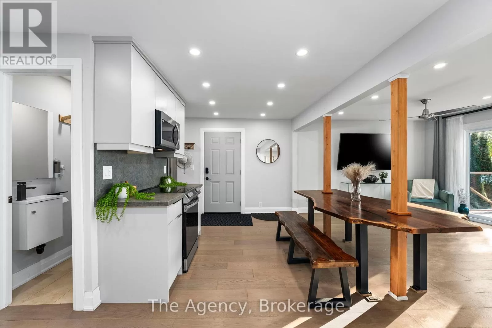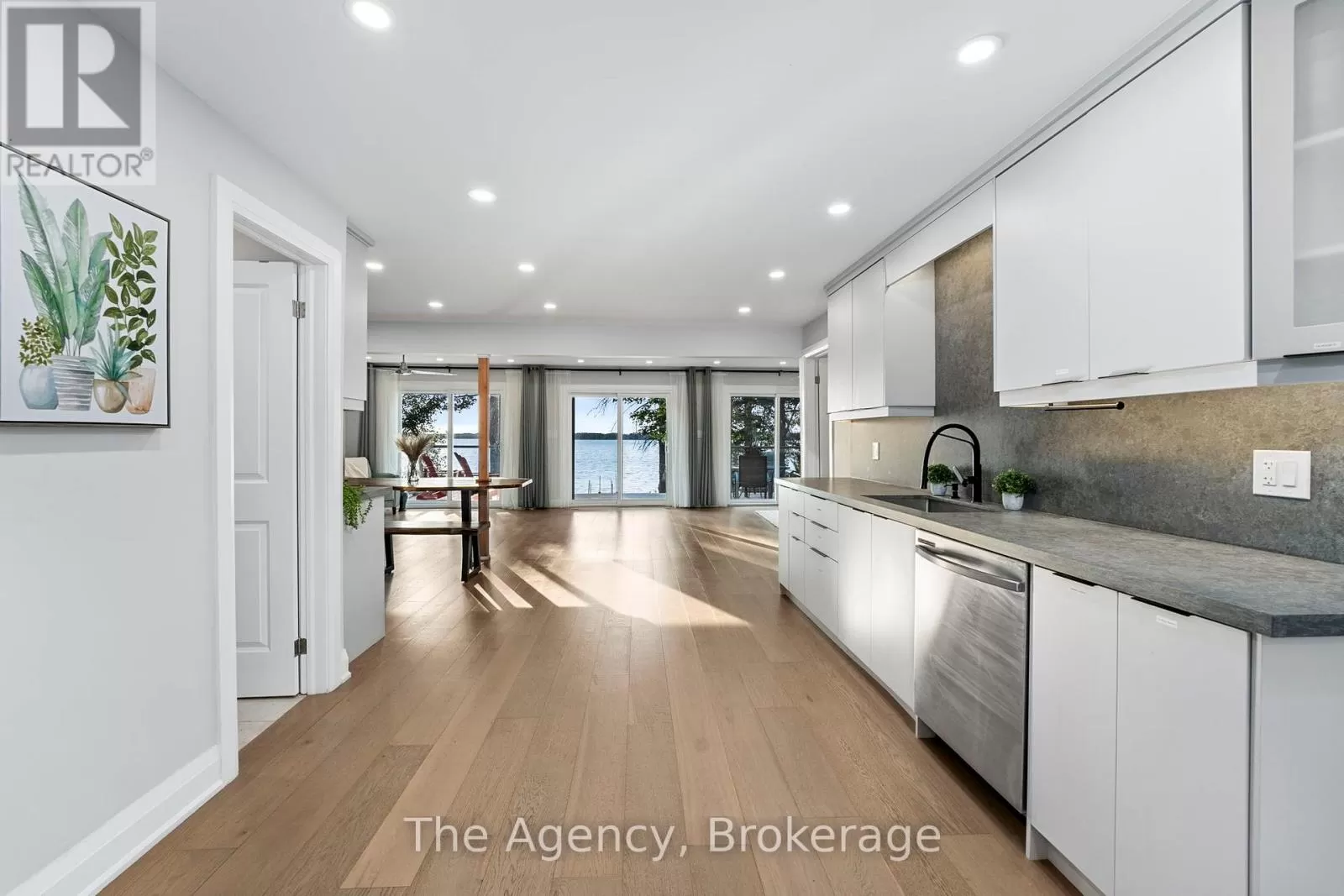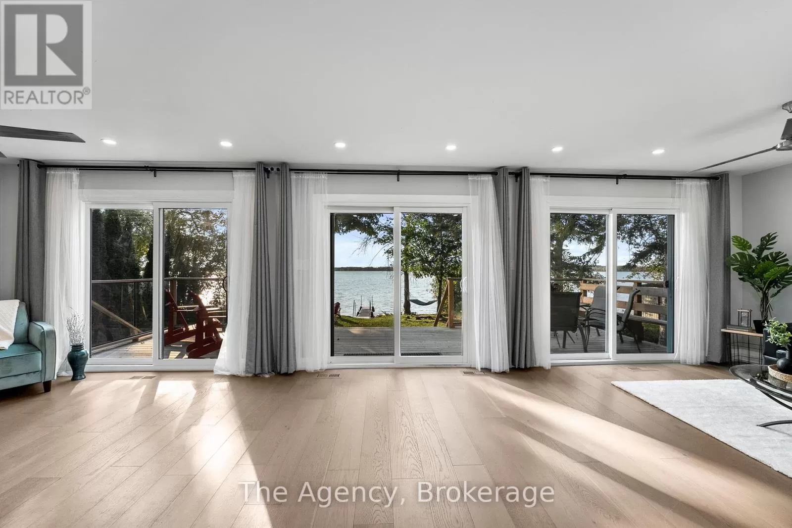 Cross Streets: Brechin Road. ** Directions: Brechin road to campbell beach road SOP. Lakeside Luxury Meets Beach House Bliss on Lake Dalrymple. Step into a fully renovated 4-bedroom, 2-bath retreat where contemporary design blends seamlessly with beach house vibes. The open-concept kitchen and living area flow effortlessly through 3 large glass sliding doors onto a brand-new wraparound deck with sleek glass panels. Picture-perfect west-facing views offer the most unforgettable sunsets over pristine waters. Relax on your private sandy beach, or take in the breathtaking scenery from inside this light-filled home. The oversized heated garage, complete with a cozy corner fireplace, is perfect for storage or an additional entertainment space. Every inch of this property has been thoughtfully upgraded, providing modern comforts with an idyllic lakefront lifestyle. (id:27476)