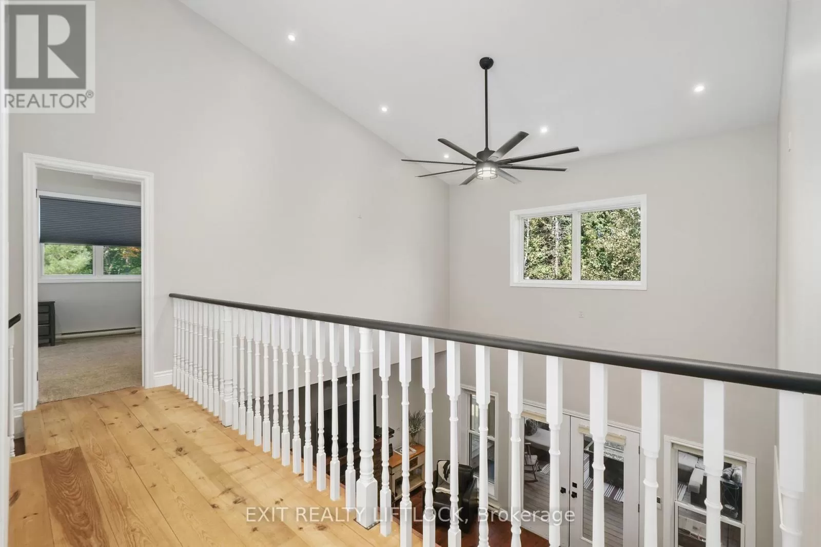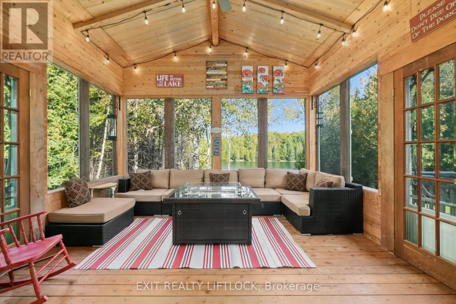 Hwy 121 and Dutch Line Rd W. Your Family's Private Lakeside Oasis. Welcome to Shadow Lake, a hidden gem just north of Bobcaygeon where only a handful of families call the shoreline home. Tucked away on 10.37 wooded acres, this retreat offers peace, safety, and space for children to roam and explore, all on a quiet, motor-free lake. Across the water, an additional 33.37 acres with walking and hiking trails provide endless adventures for nature lovers of all ages. Inside, you'll find room for everyone with a bright, open eat-in kitchen perfect for family meals, a cozy screened room for evening board games and story time, and a private guest suite above the garage for visiting relatives or teens who want their own space. A Generac backup system and electric car charger add modern convenience, while sweeping lake views from nearly every room remind you that you've truly escaped. Best of all, it comes fully furnished and ready to enjoy just bring your family and start making memories in this rare lakeside haven. (id:27476)
